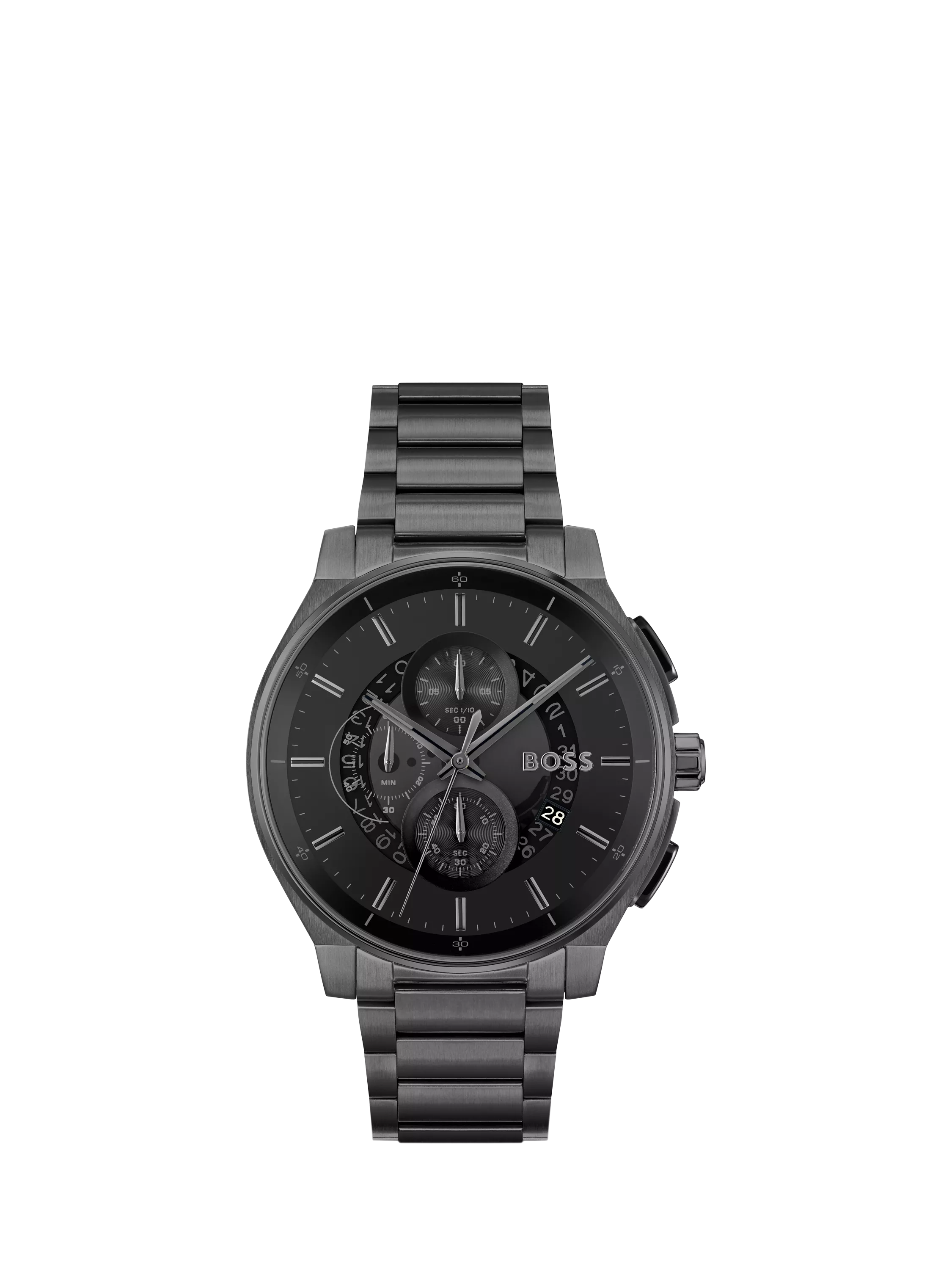 From BOSS's Peak family, this watch boasts a 44mm case with chronograph and date detailing for a sleek but sporty look. It is secured with a bracelet strap and is water resistant up to 50m.