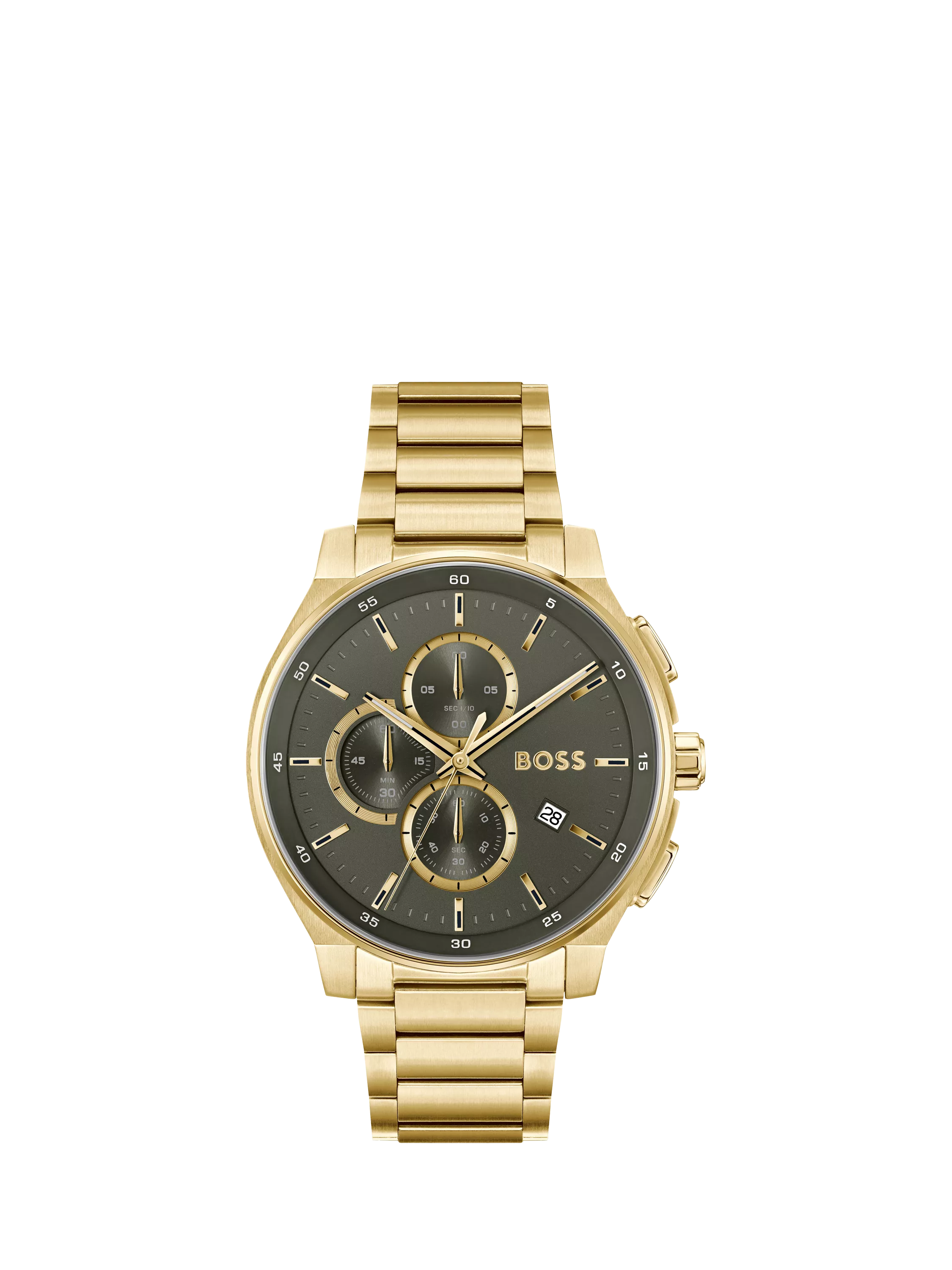 From BOSS's Peak family, this watch boasts a 44mm case with chronograph and date detailing for a sleek but sporty look. It is secured with a bracelet strap and is water resistant up to 50m.