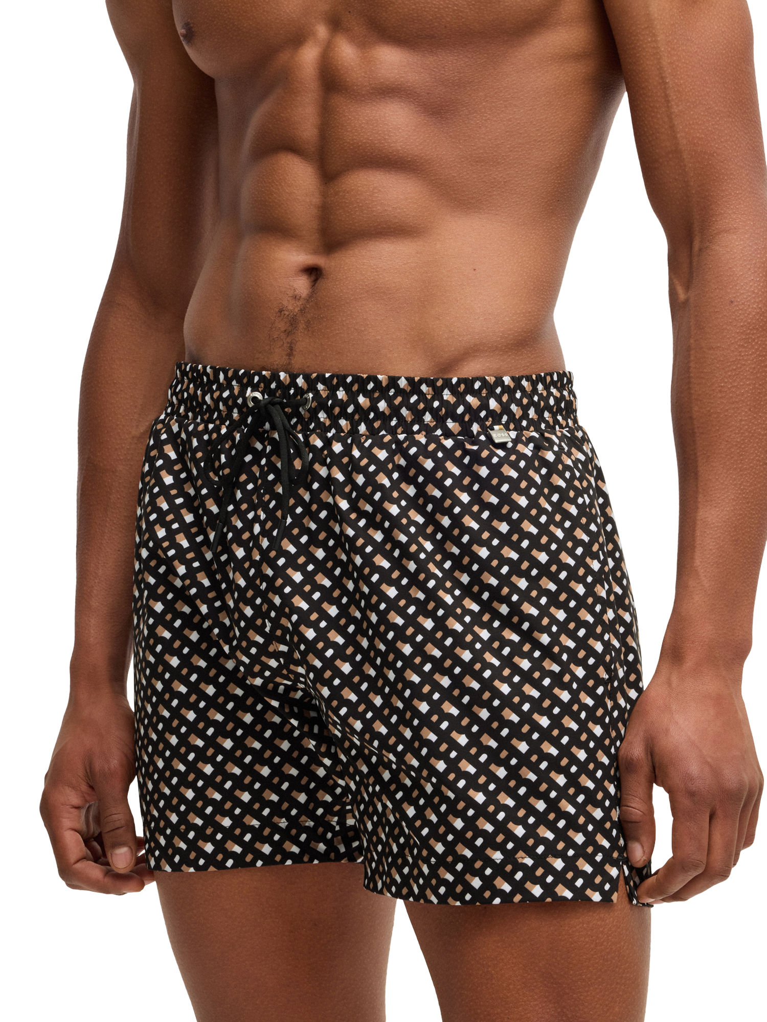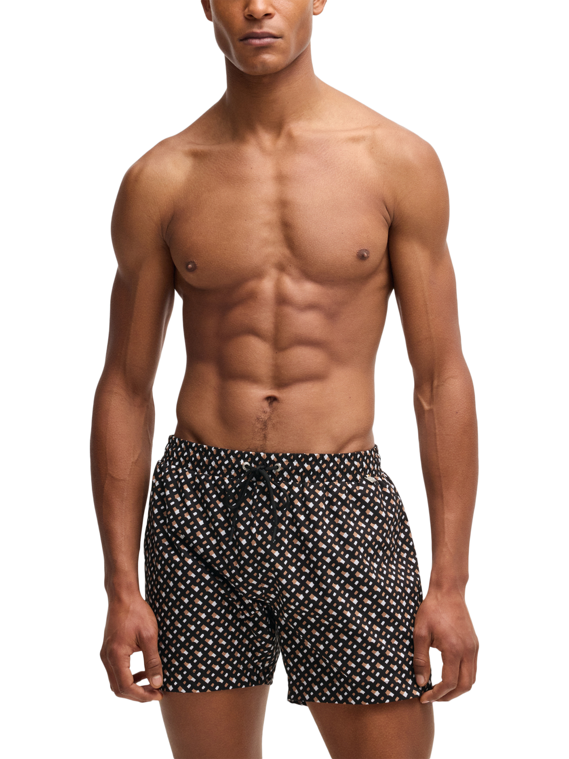 Splashed with a iconic monogram print that’s sure to stand out, this pair of swim shorts from BOSS is complemented with a comfortable composition.