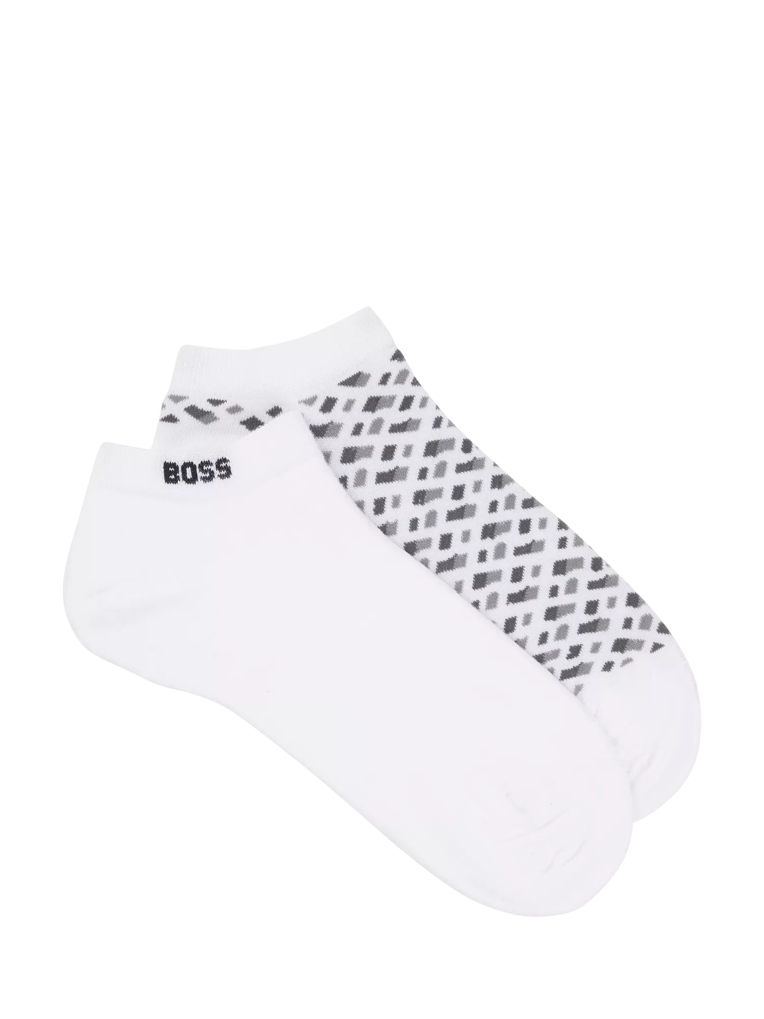 HUGO BOSSBOSS Monogram Trainers Socks, Pack of 2, White/Grey