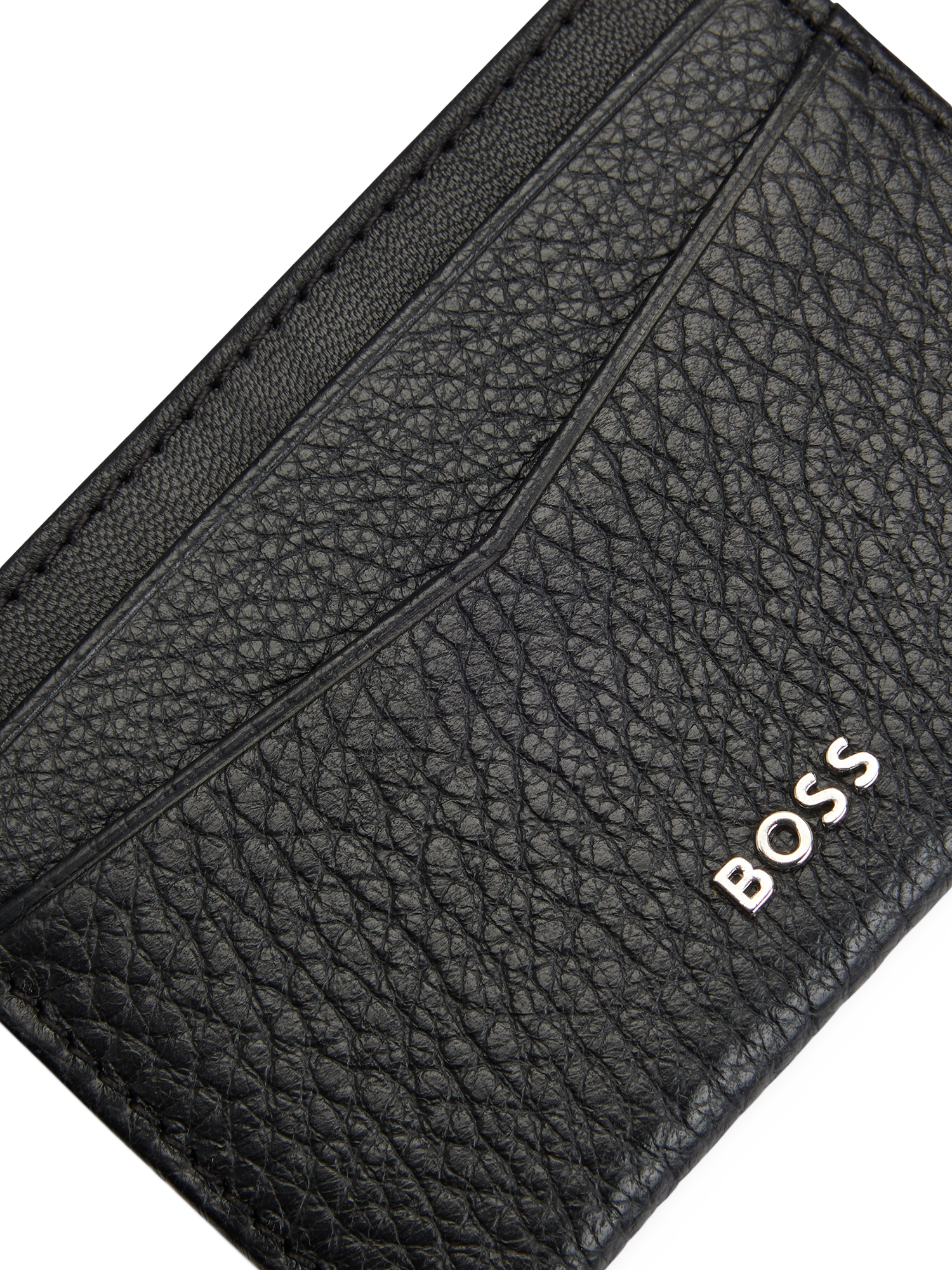 Crafted from rich quality leather, this card holder from BOSS Menswear features the brand's metal lettering logo, and an open pocket.