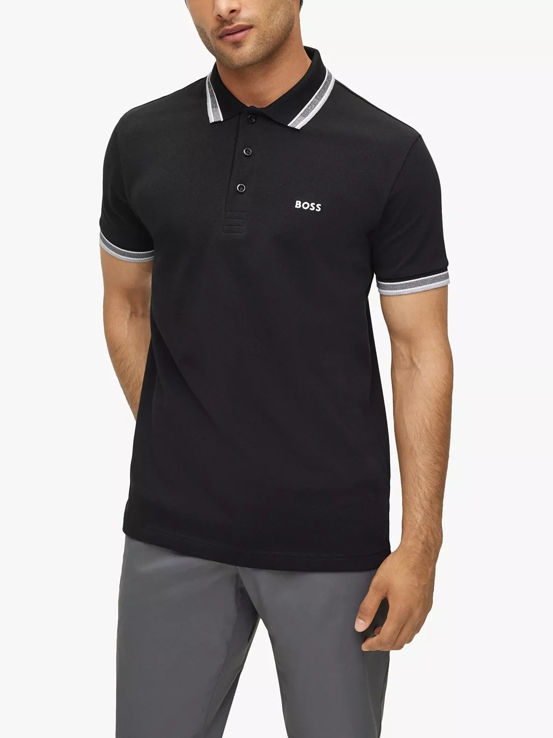 An iconic staple and an essential to any gentleman's wardrobe, the polo shirt has a modern update with the Paddy from BOSS. Made from soft cotton, it's cut in a relaxed fit and features the iconic Hugo Boss logo upon the chest - the collar and sleeves are tipped with ribbed contrast colouring.