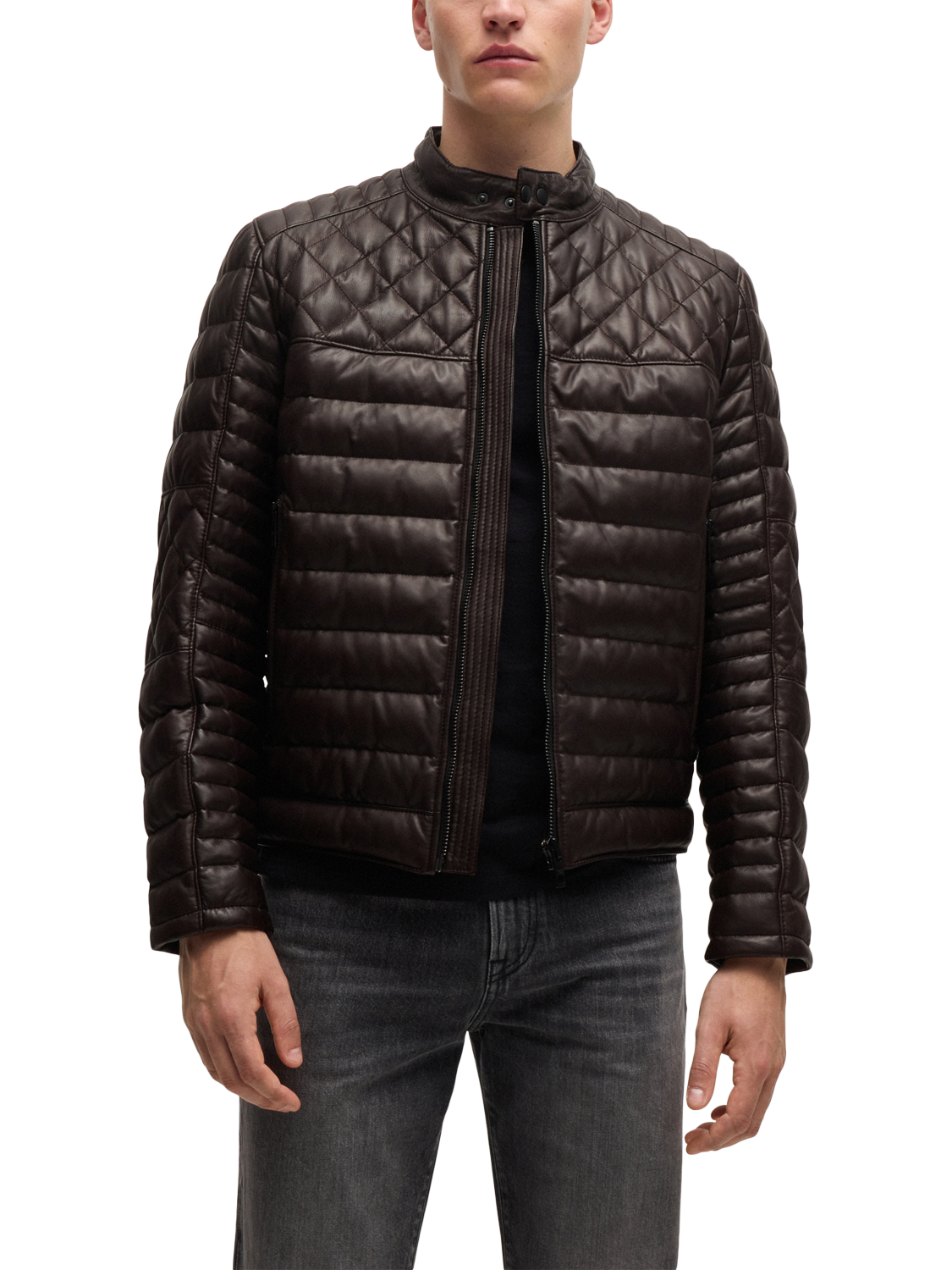 With all the features of your classic aviator, this style from BOSS is crafted from butter-soft leather with diamond-quilting and padding.