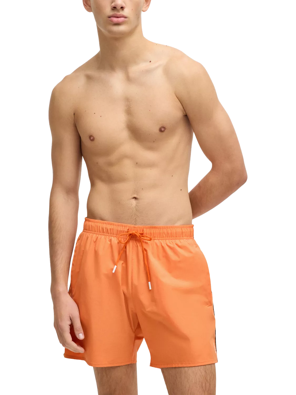 These modern swim shorts from BOSS are fully lined, and detailed with the BOSS logo and signature-stripe trims. They're finished with both handy side pockets, and a rear pocket.