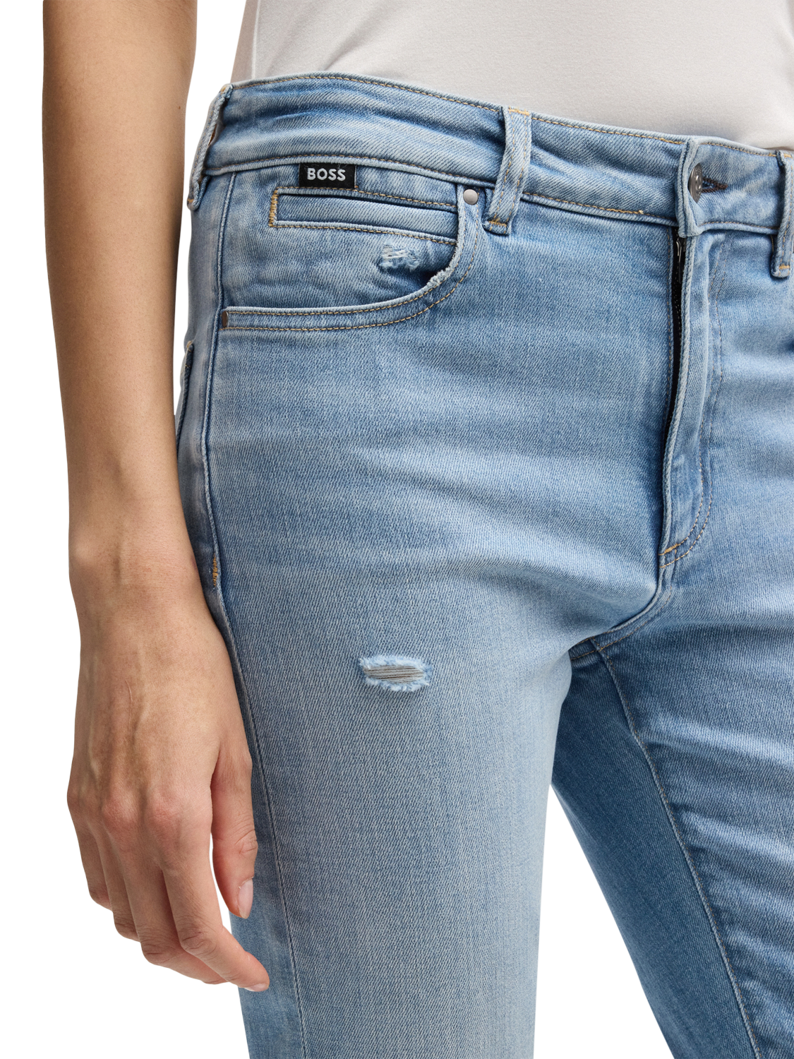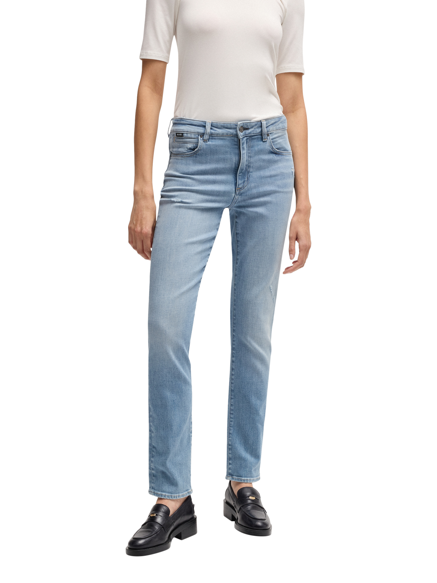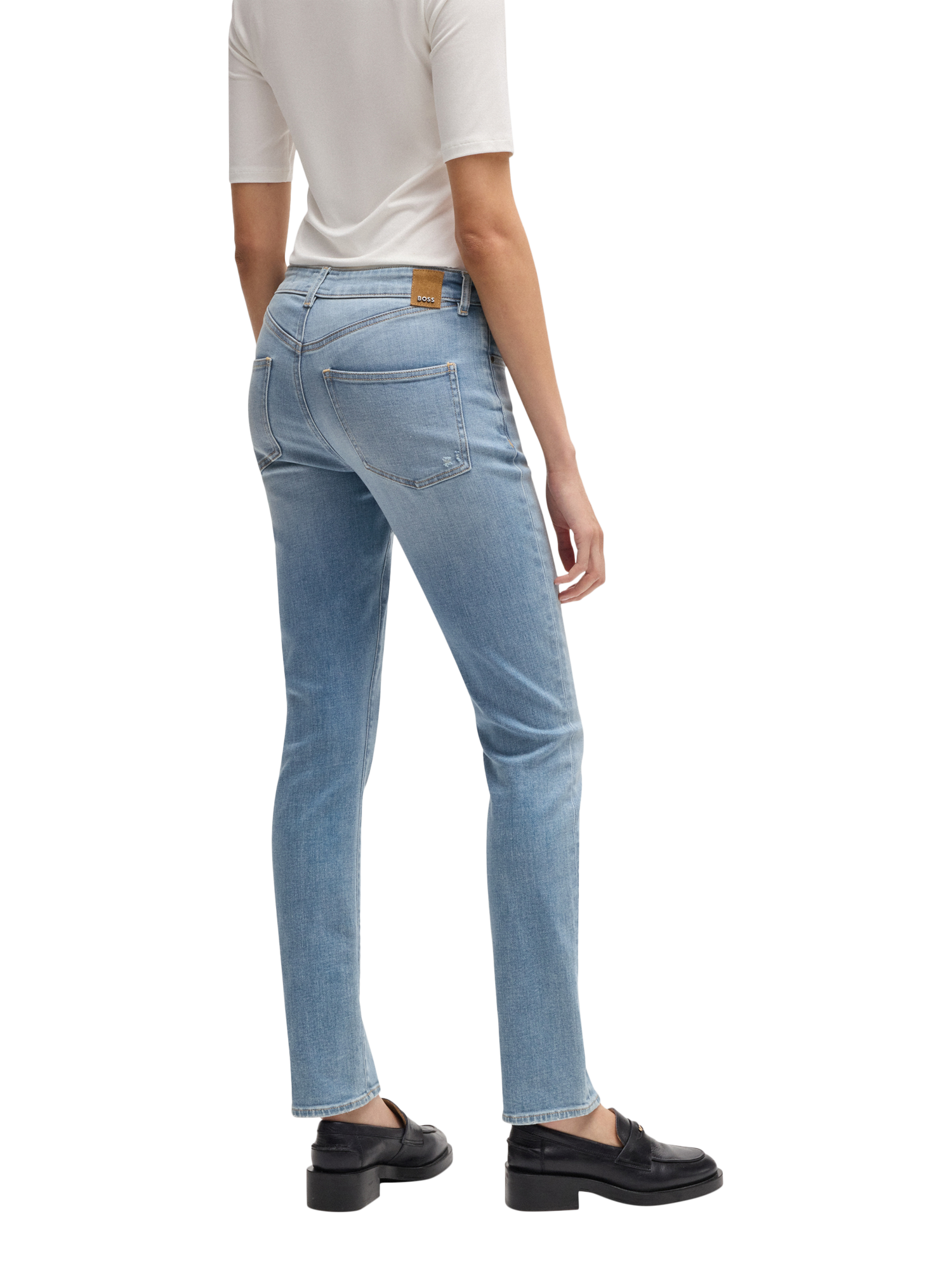 Cut to a timeless slim fit, these mid rise jeans by BOSS have a timeless denim finish and feature a regular length hem.
