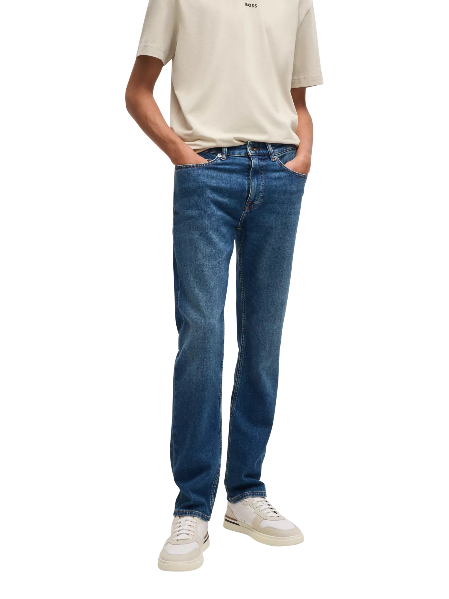 Staying true to tradition, these slim-cut, mid-rise jeans from HUGO BOSS are a staple in any wardrobe – work or weekend.