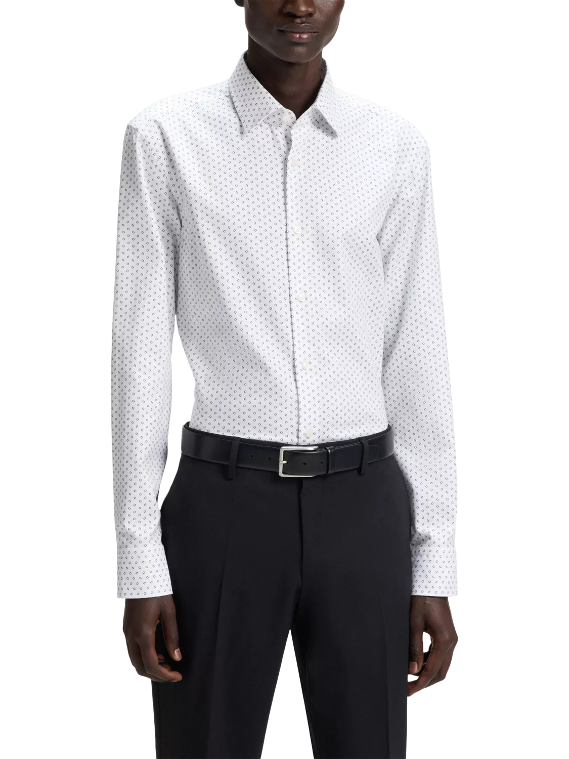 Laying a handsome foundation to your casual staples, this cotton-blend shirt from BOSS owns the latest trend with its simple spot print and comes in a neat, slim fit for a flattering shape through the waist.
