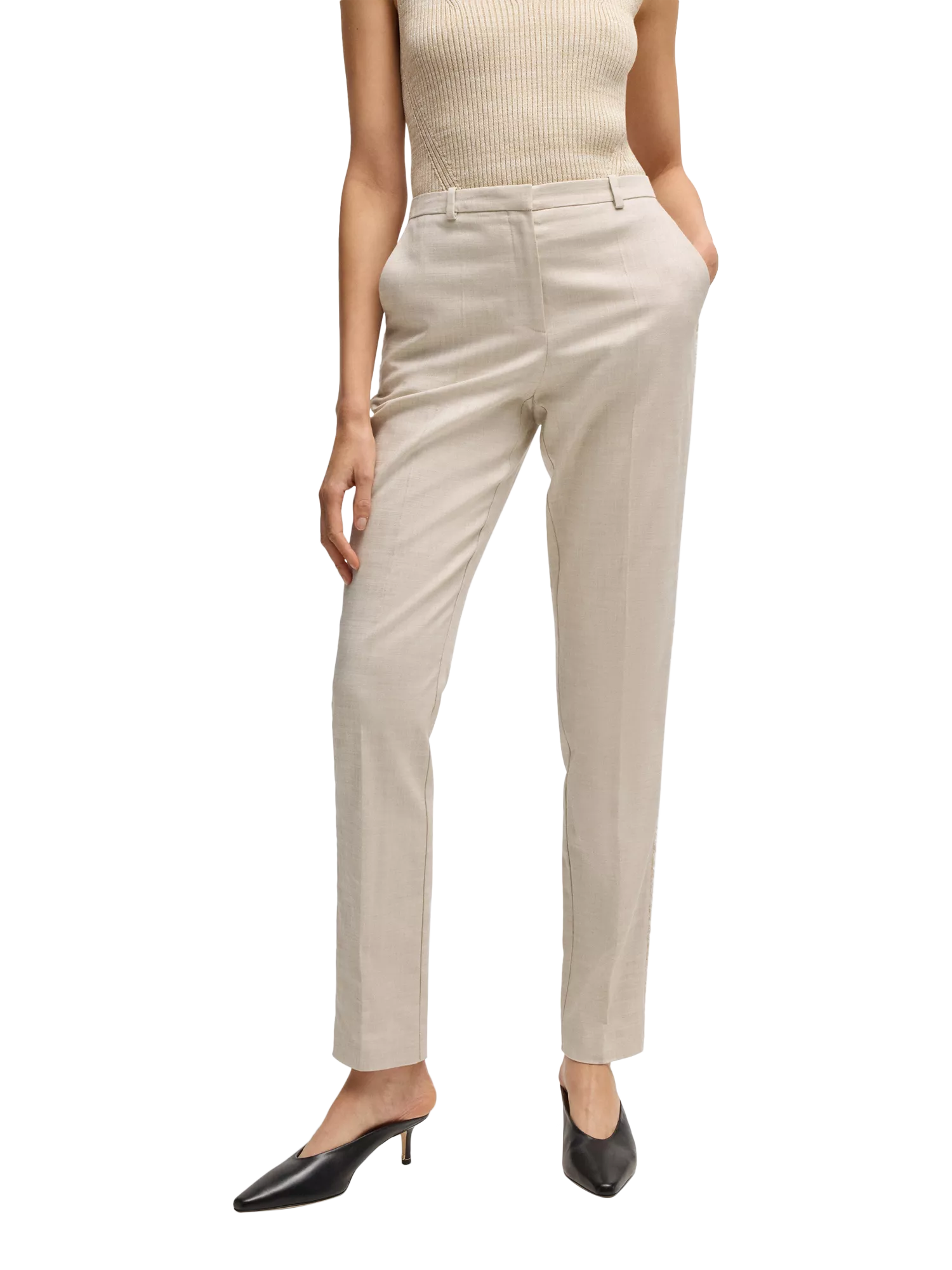 Perfectly tailored to a streamlined brief, this pair of slim fit trousers by BOSS sit naturally on the hips.