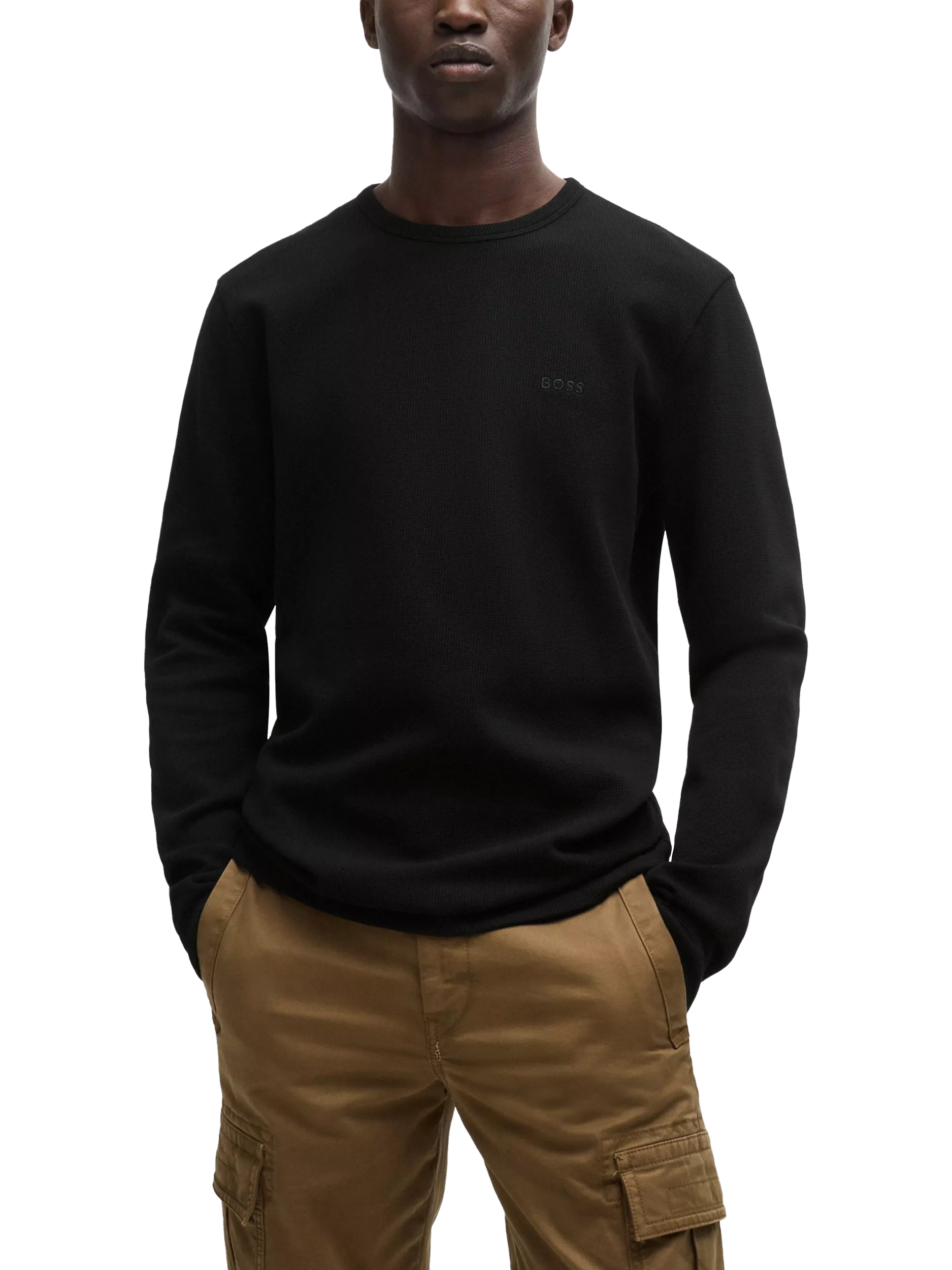 An easy-wear long-sleeved top in a cotton blend waffle fabric by HUGO BOSS. Cut to a regular fit, this top is embroidered with branding at the chest.