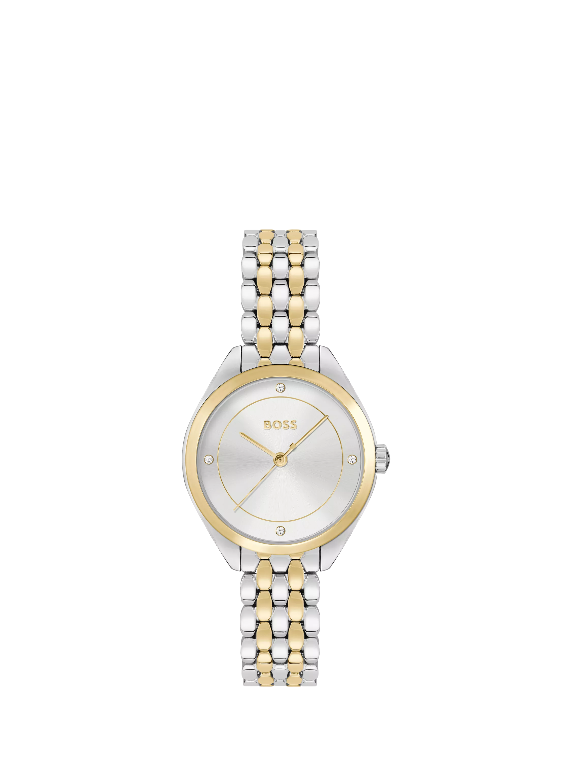 A luxurious addition to add to your timepiece collection, this watch from BOSS is set in a beautifully curved round casing.