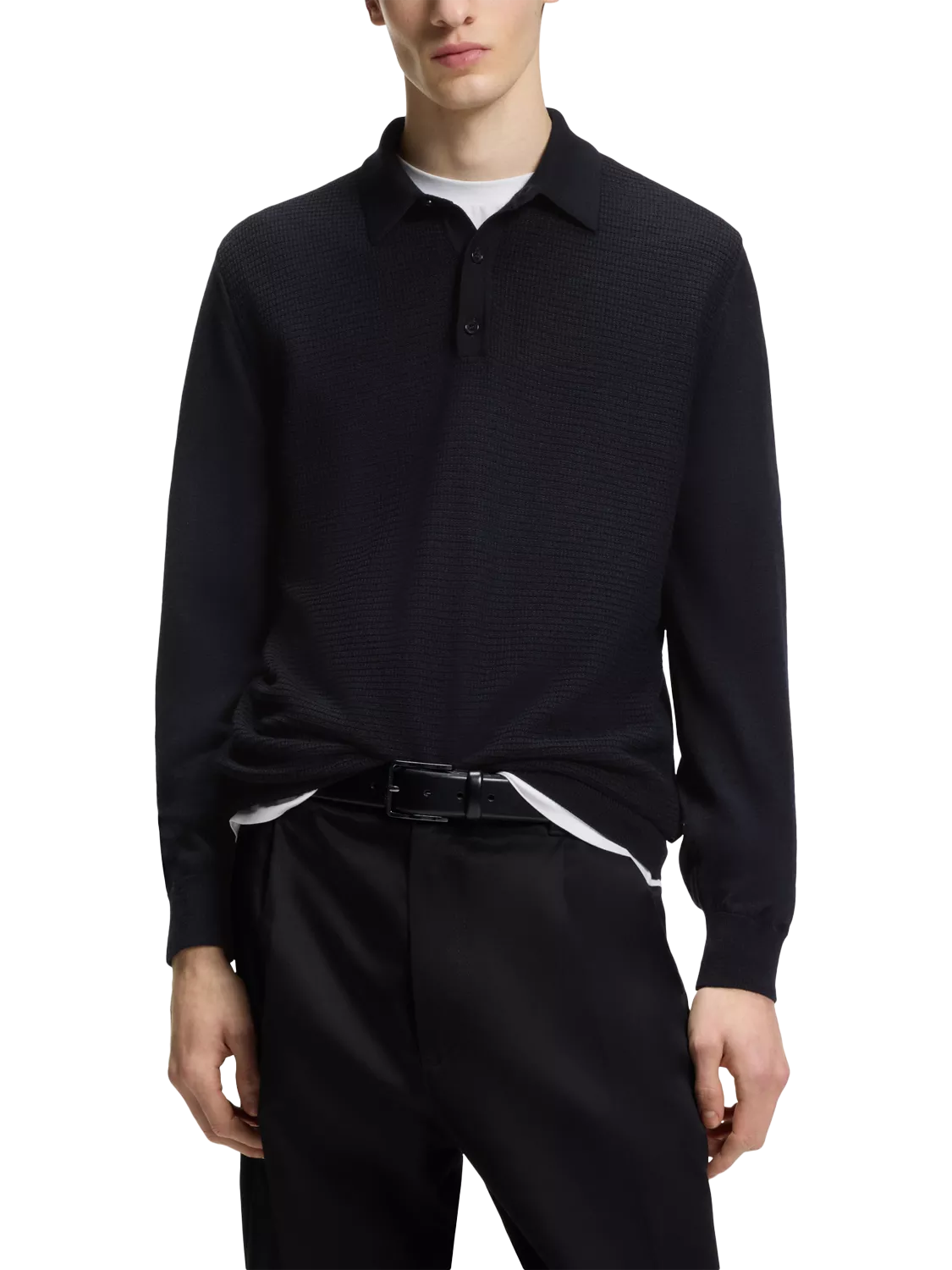 The ideal choice when temperatures start to drop, this collar neck polo shirt from BOSS is blended with wool for quality comfort.