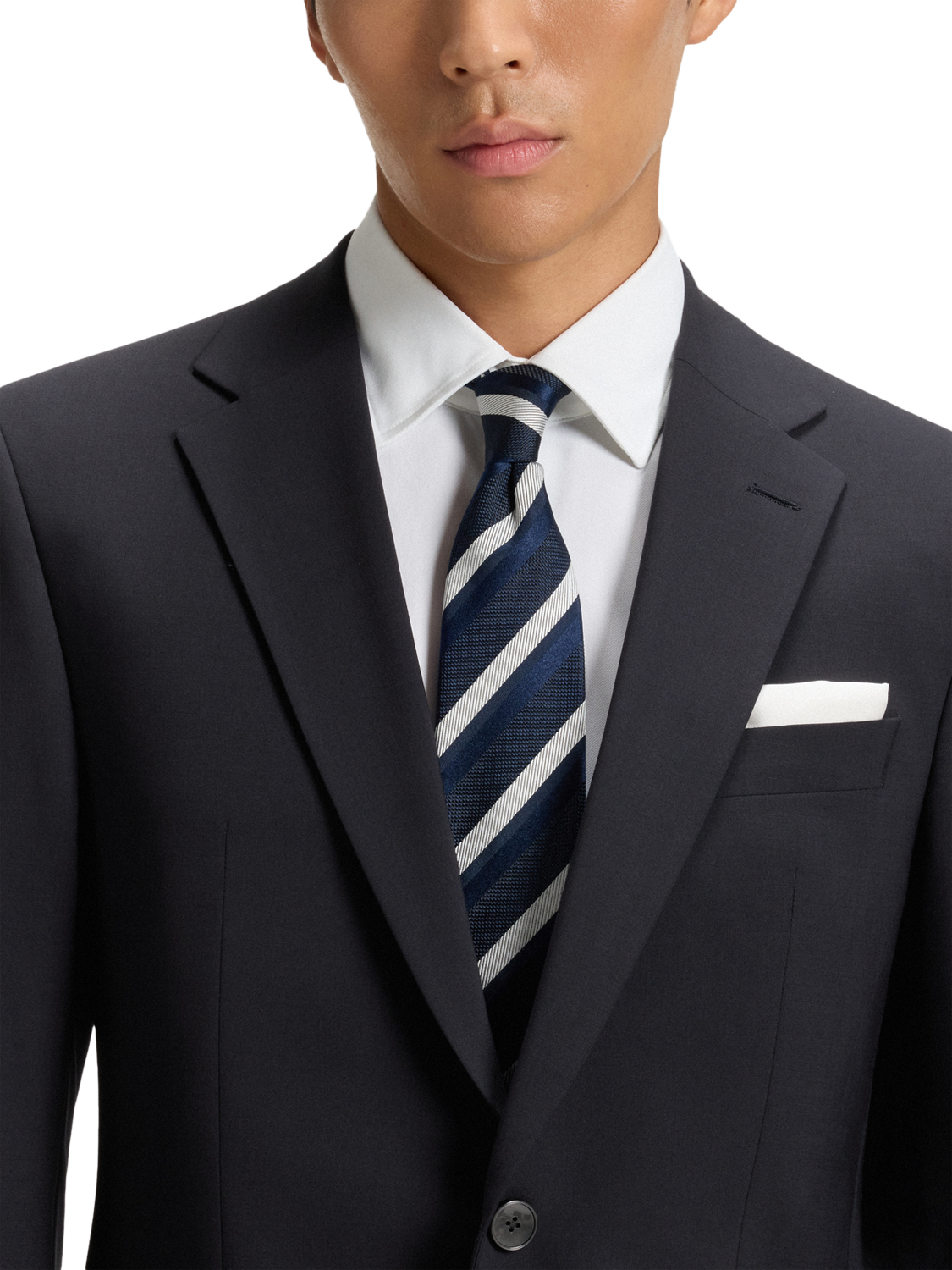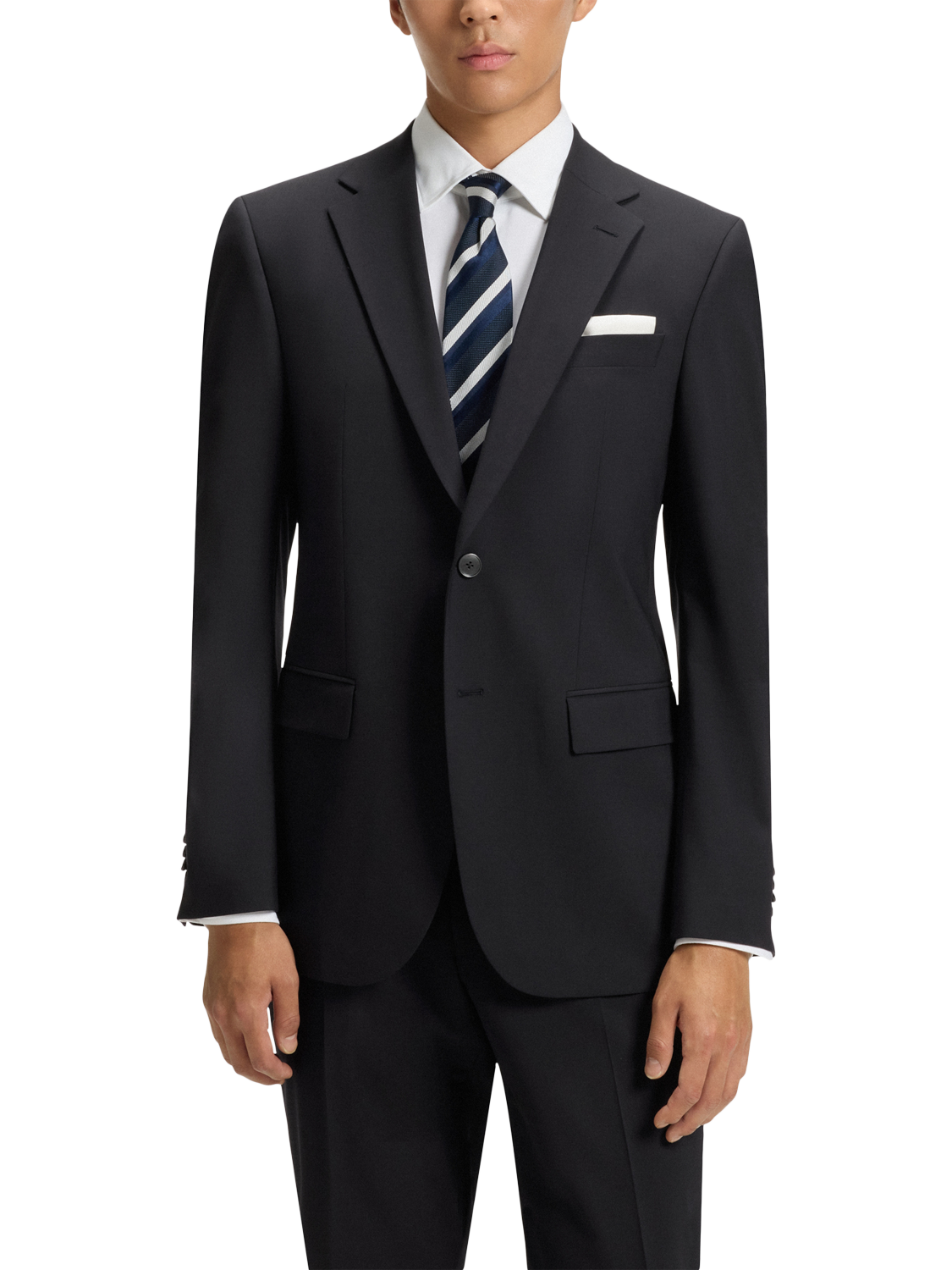 Define your formal wardrobe with this structured suit jacket, distinguished by its single-breasted design and sharp notched lapels. The virgin wool blend provides a soft, luxurious handle, while the high-performance weave ensures the garment is exceptionally hardwearing and resistant to creasing. Plenty of stretch in the fabric makes it easy to wear. Classic flap pockets and a refined two-button fastening complete this versatile piece.