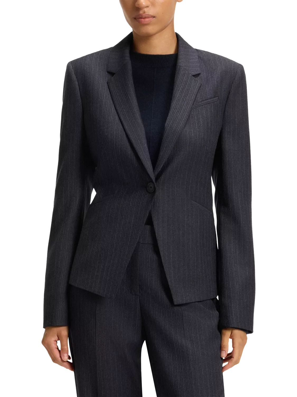 Tailored for a sharp, modern silhouette, this wool blazer is made from a striped stretch suiting fabric that allows for effortless movement without compromising on style. It features classic notch lapels, a standard length, and subtle slit cuffs for a refined finish, complete with welt pockets and full lining.