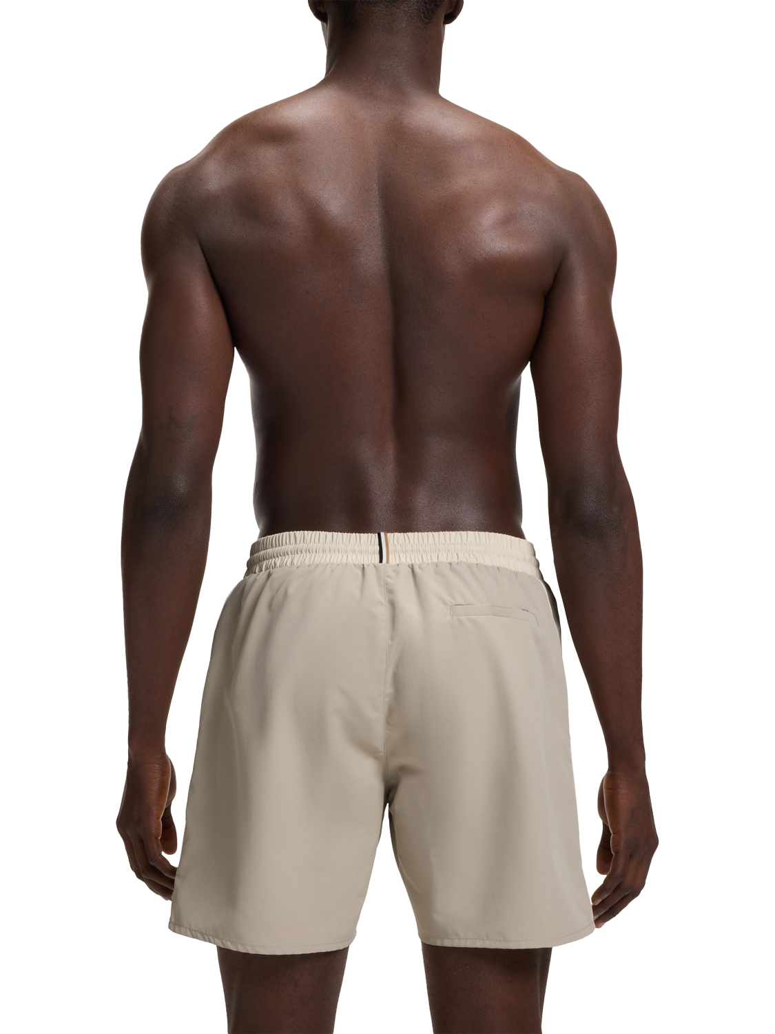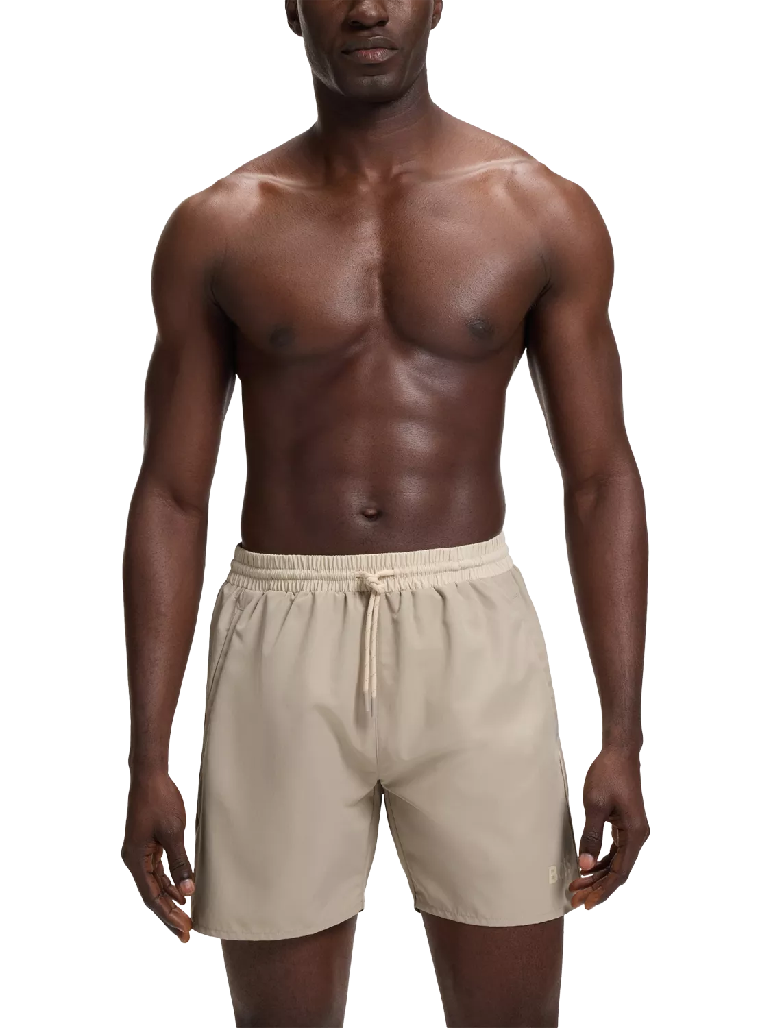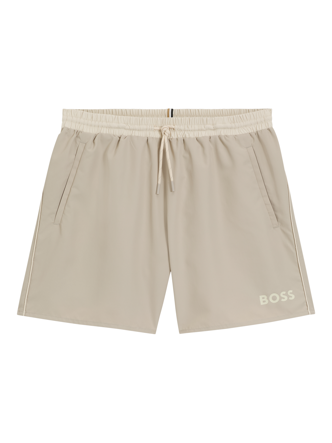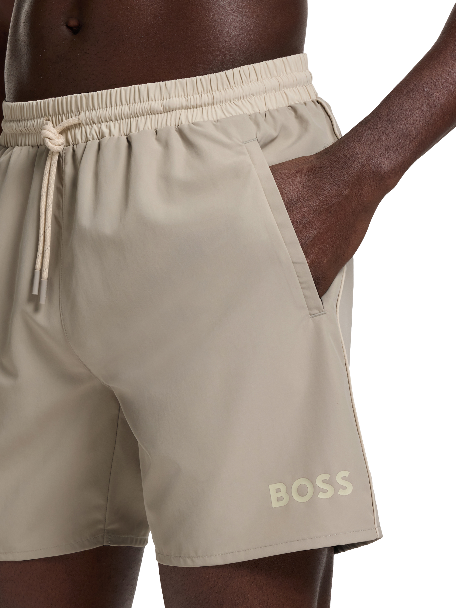 BOSS woven swim shorts featuring an elasticated drawstring waist and pockets.