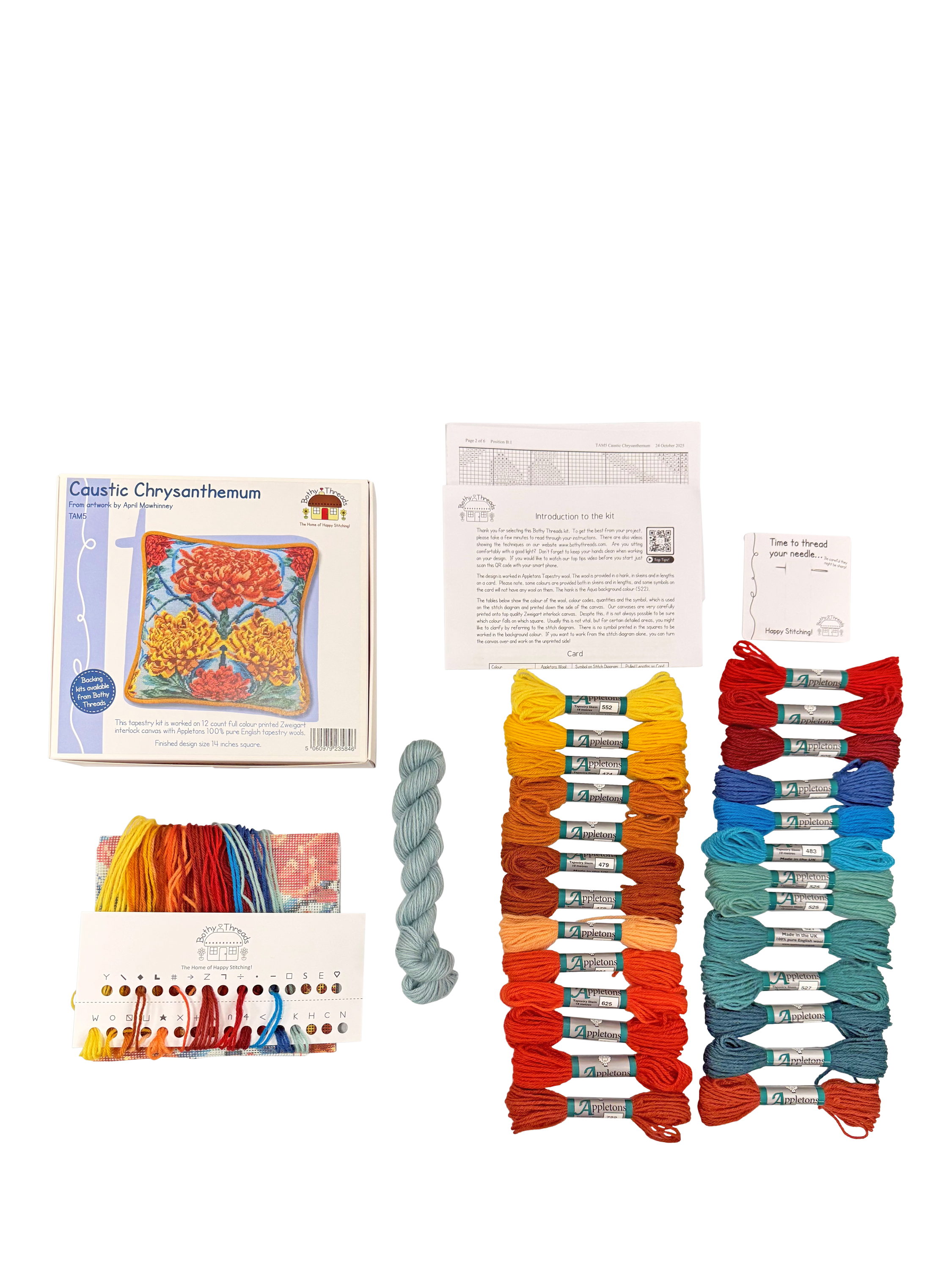 This kit is based on original artwork by April Mawhinney and is worked on 12 count full colour printed Zweigart interlock canvas with Appleton's 100% pure English tapestry wools.