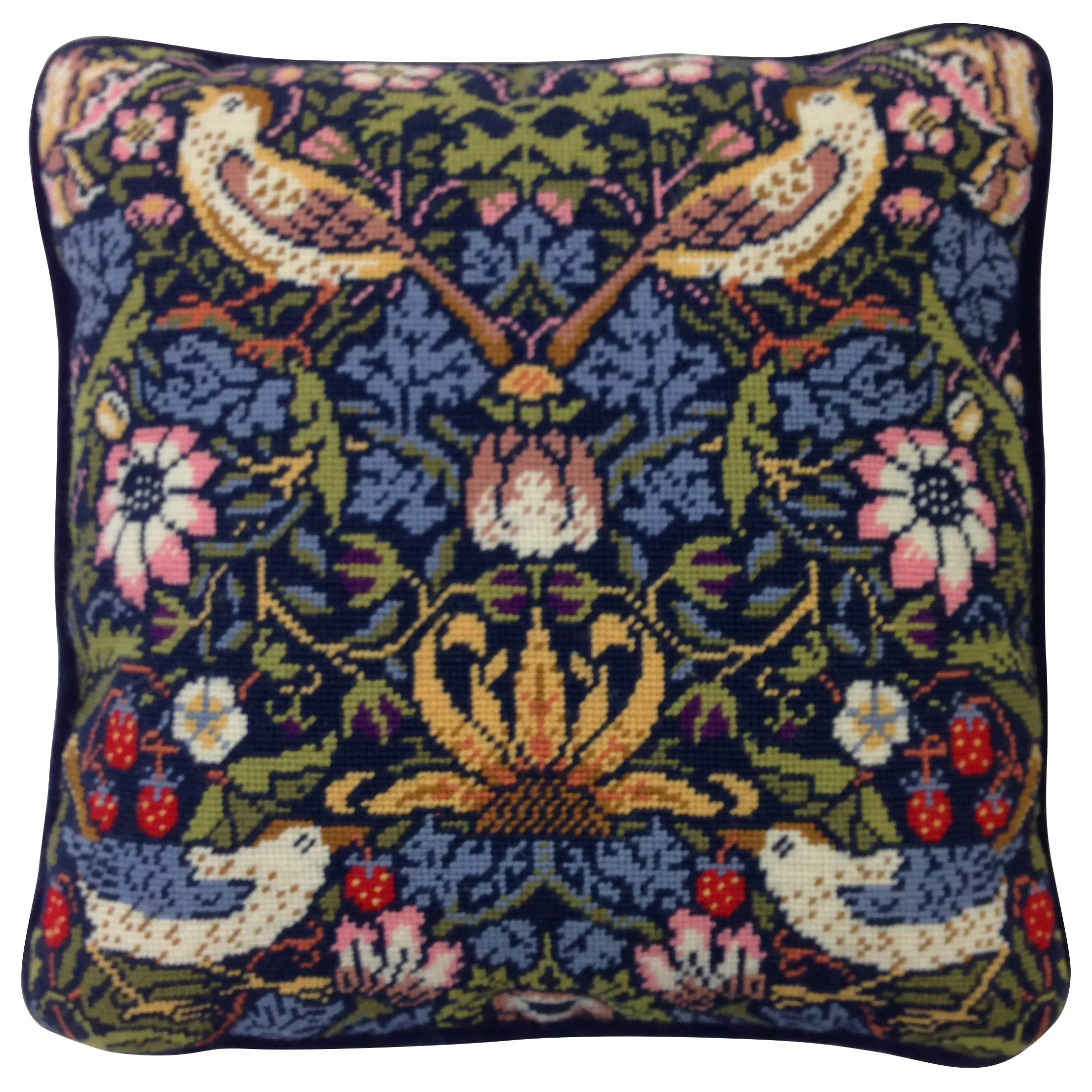 Suitable for those with intermediate skills, this kit contains everything you'll need to recreate The Strawberry Thief by William Morris as a tapestry cushion front including a 12 count full coulour printed interlock canvas, quality Appleton tapestry wools, a tapestry needle, easy to follow diagram and step-by-step instructions to guide you through the process. Please note, the finished size is approximately 14 x 14 inches. This kit does not contain the cushion backing or pad.
