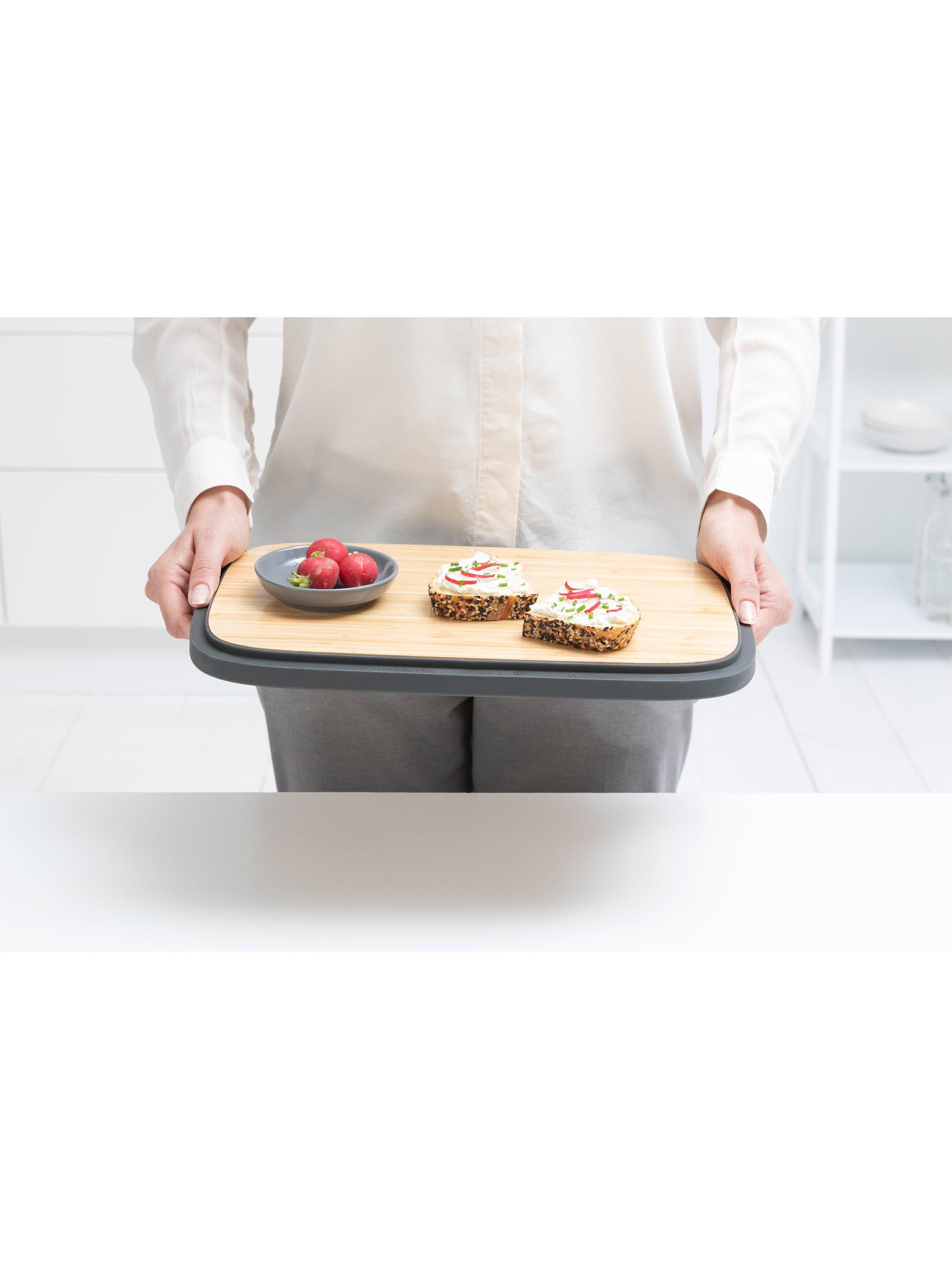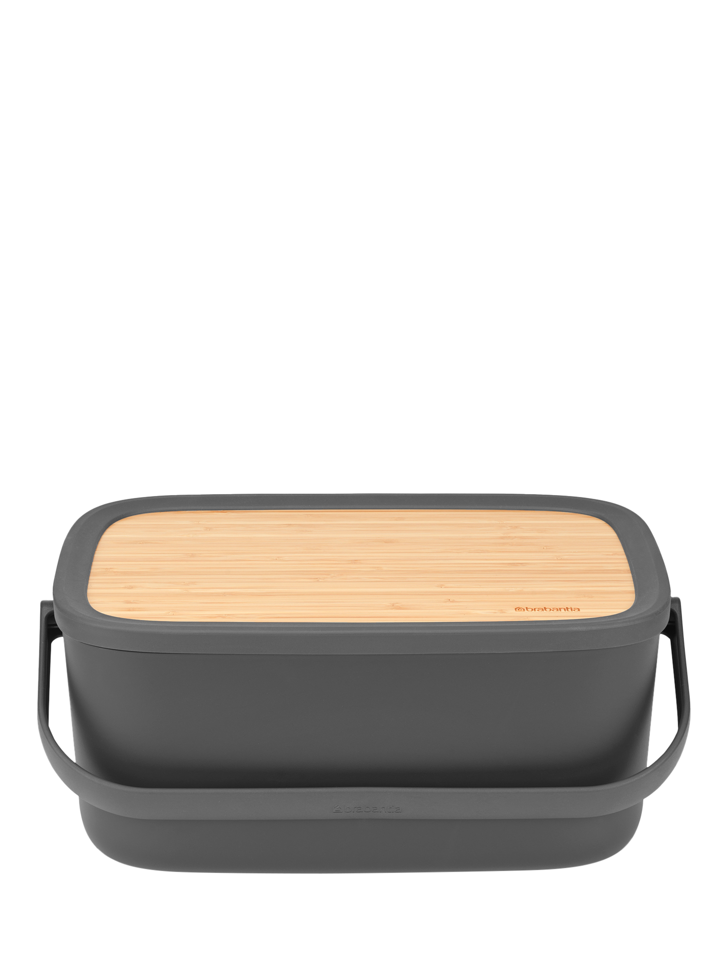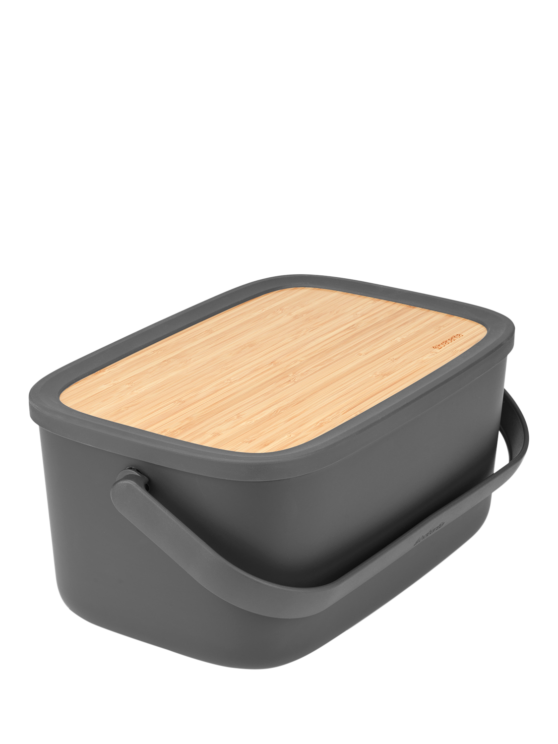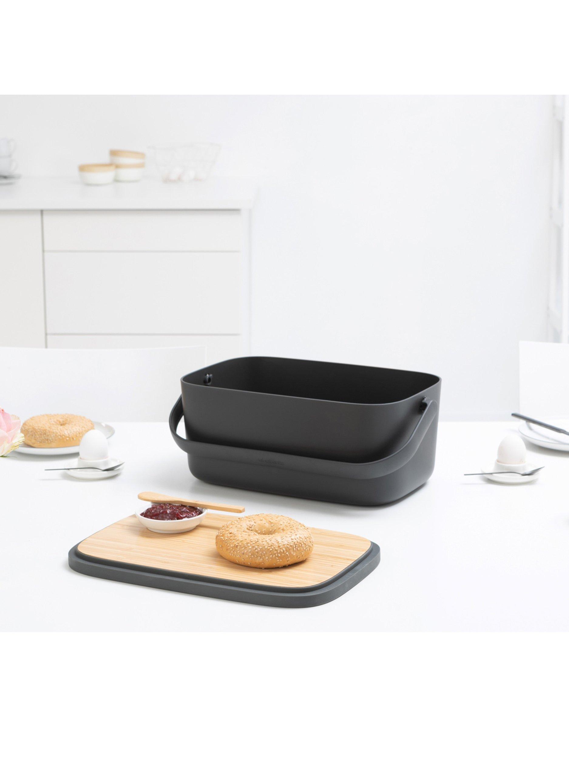 This Brabantia bread bin has a bamboo lid that doubles as a breadboard or serving board. Compact and easy to store on a countertop, it also has a handle to carry to and from the kitchen to the table, when dining indoors or outdoors.