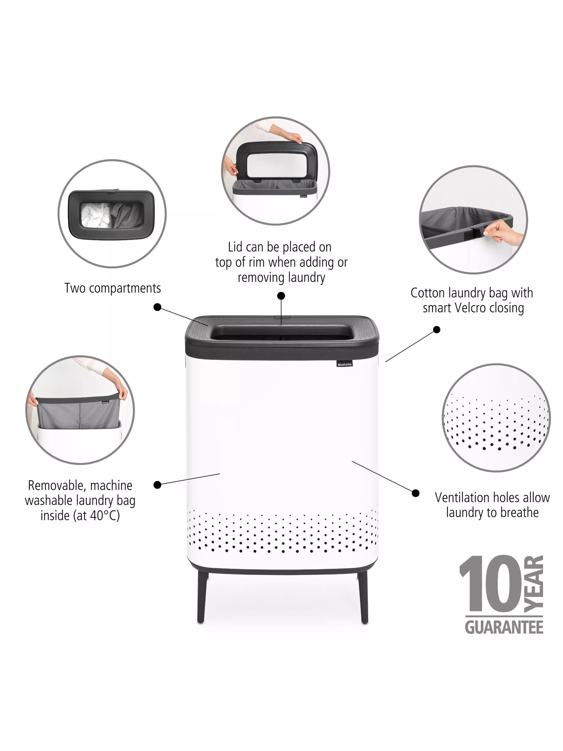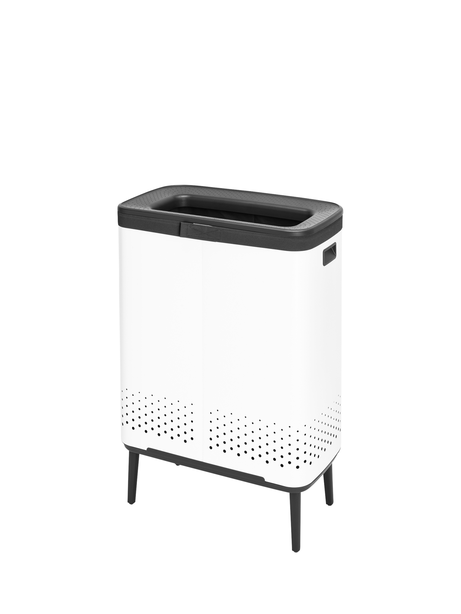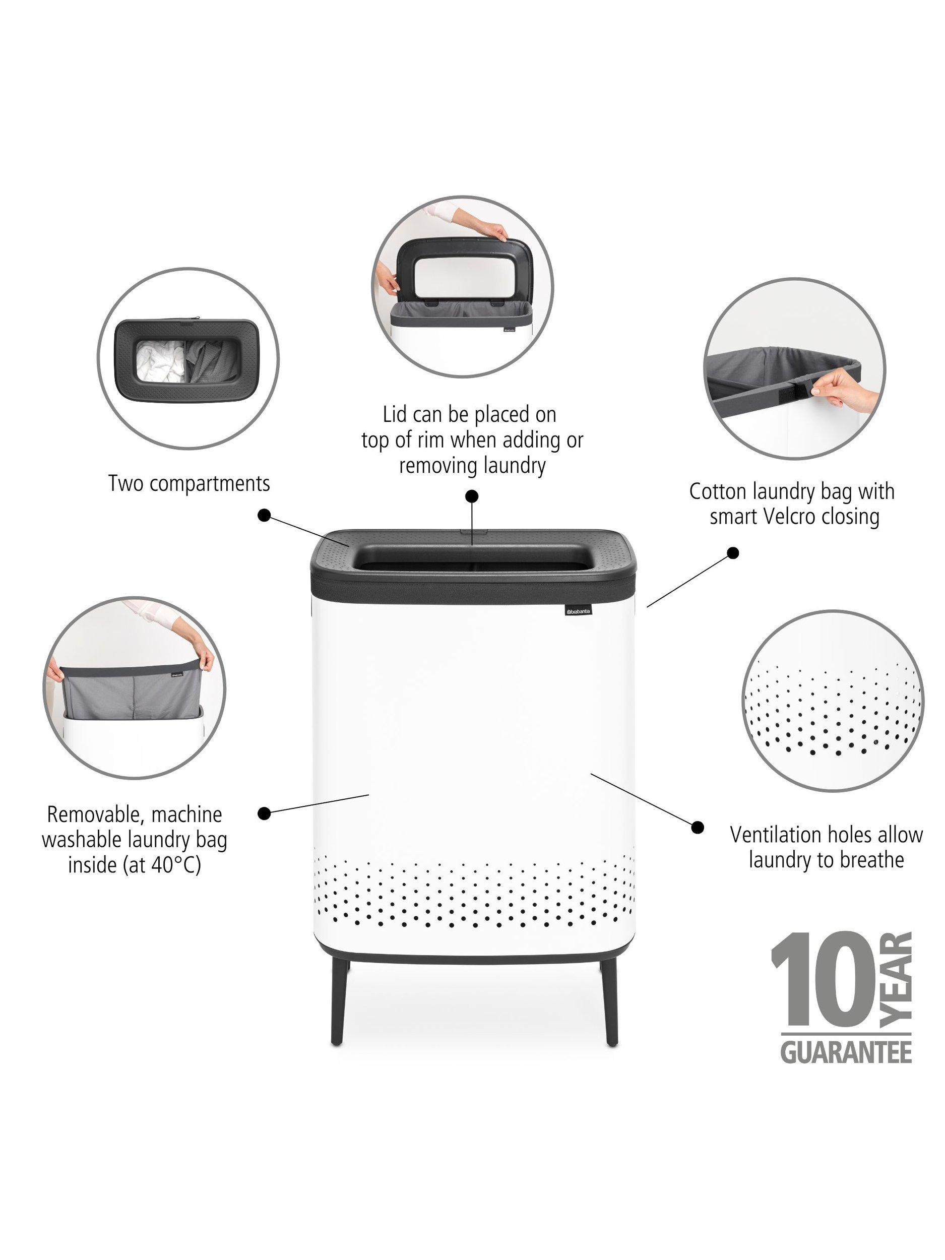 With two 45L compartments the Brabantia Bo Hi laundry bin has capacity for large households to separate their light and dark loads. The sleek design fits with a modern interior style and clever features make doing the laundry that little bit easier.