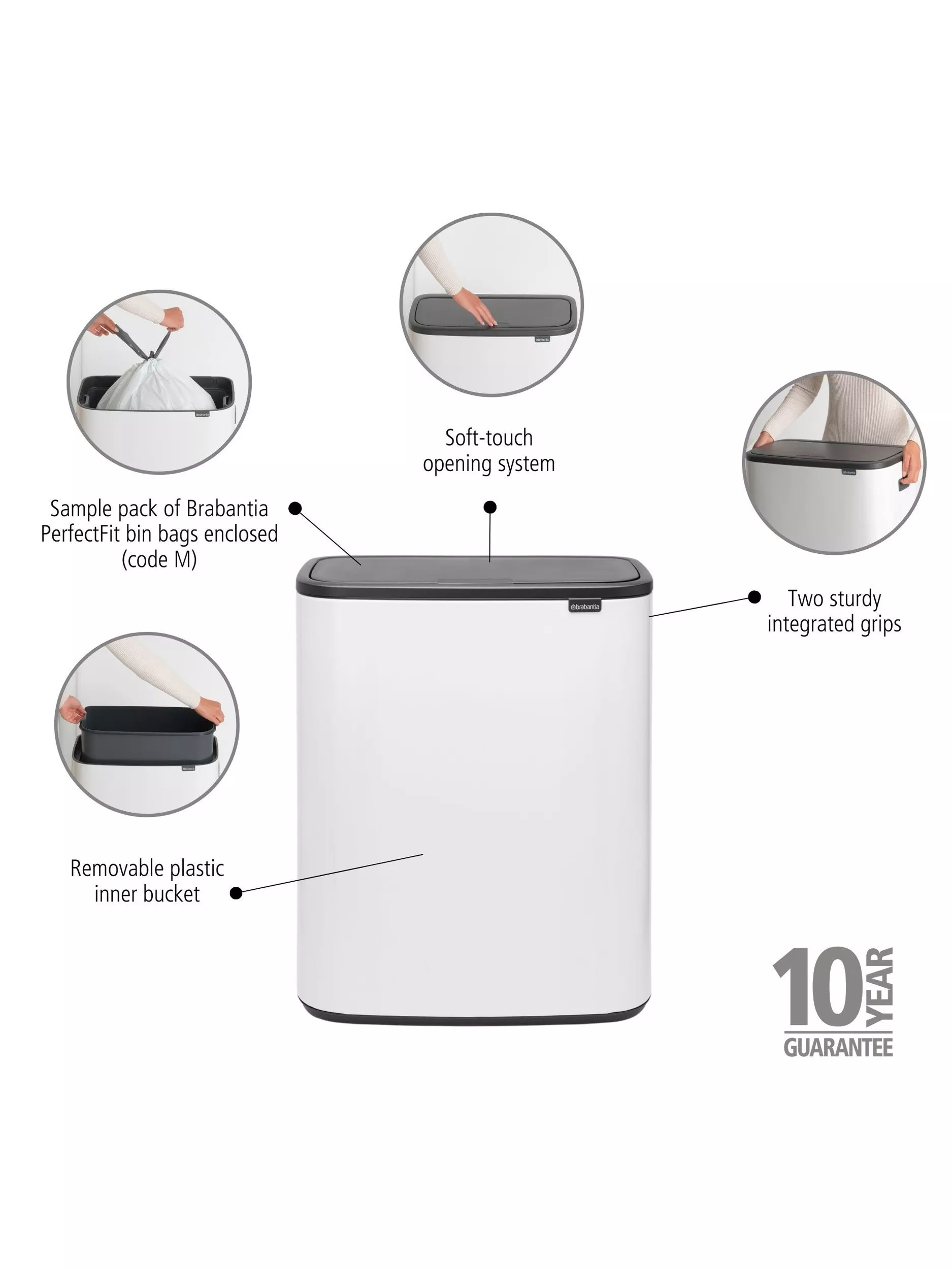Uses Brabantia PerfectFit bin liners, size code M.