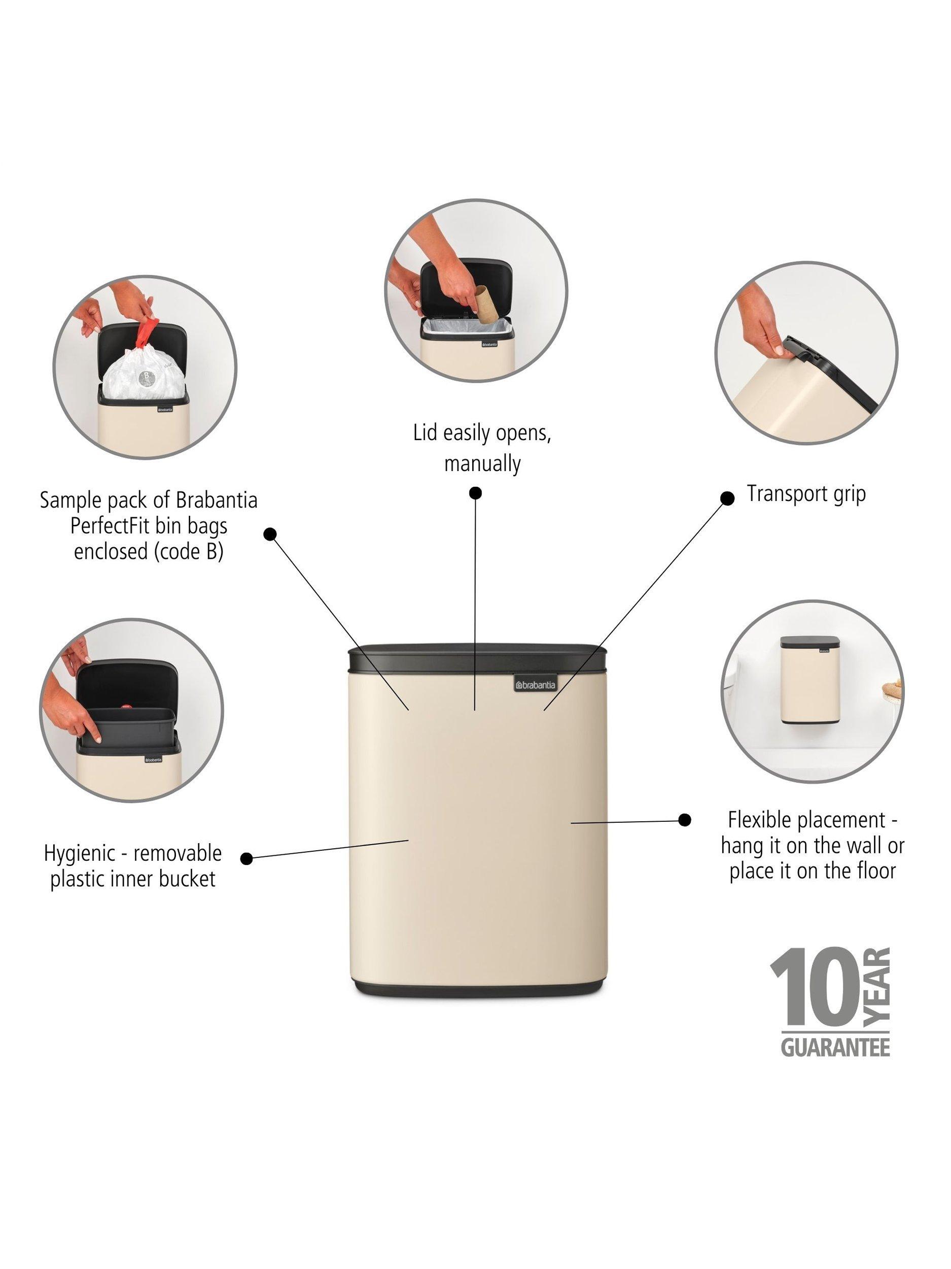 Not too big, not too small, but just right, that's the Bo Waste Bin 7 litre for you! Put it in a corner, or hang it on the wall, you can place it wherever you like, thanks to the lid which lifts easily from the left, right and front of the bin.