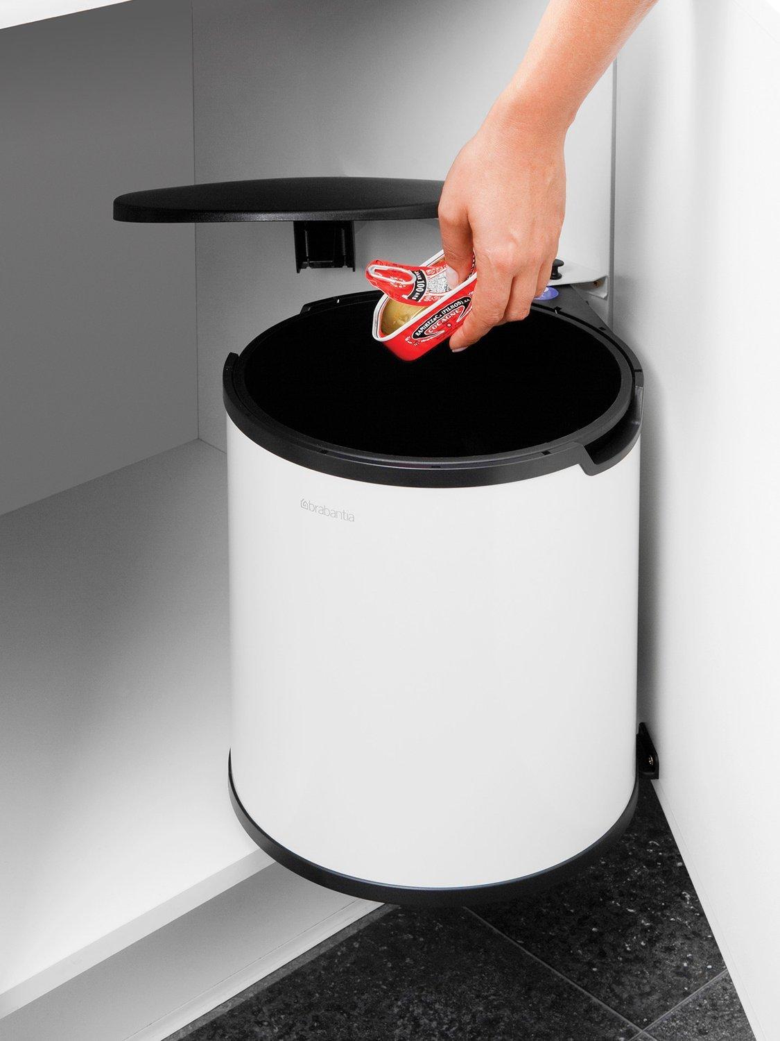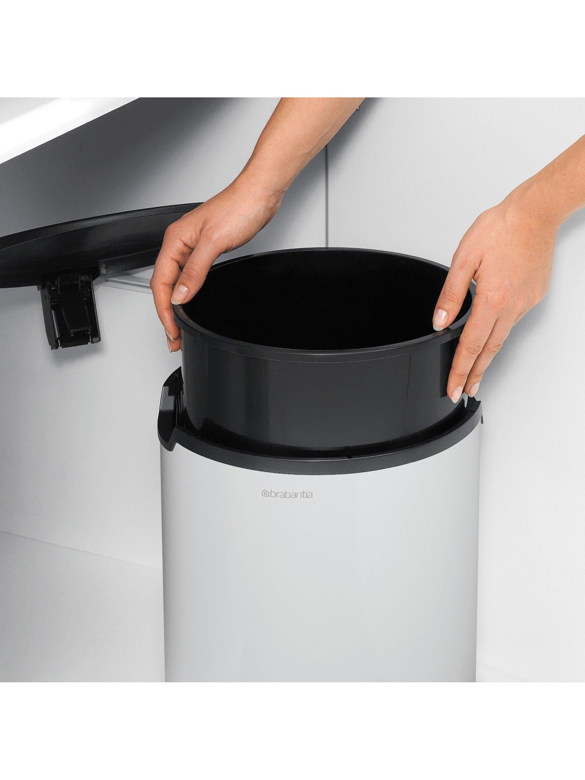 Fitting perfectly, whether doors open left or right, it's easy to empty and clean by hand with a removable plastic inner bucket. The top rim hides the bin bag when the lid is closed with no ugly overwrap.