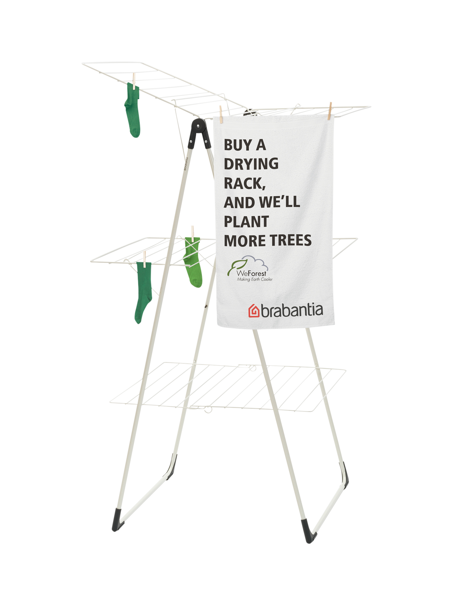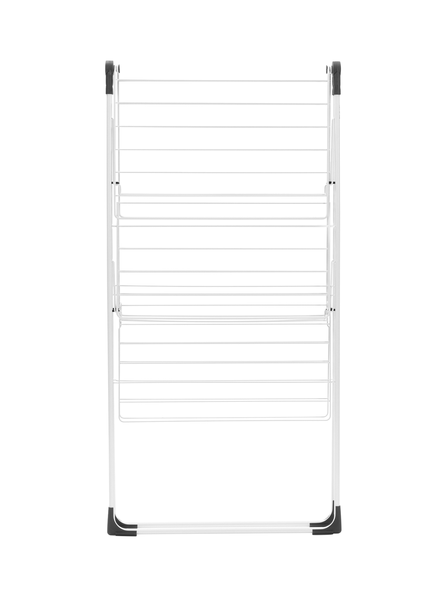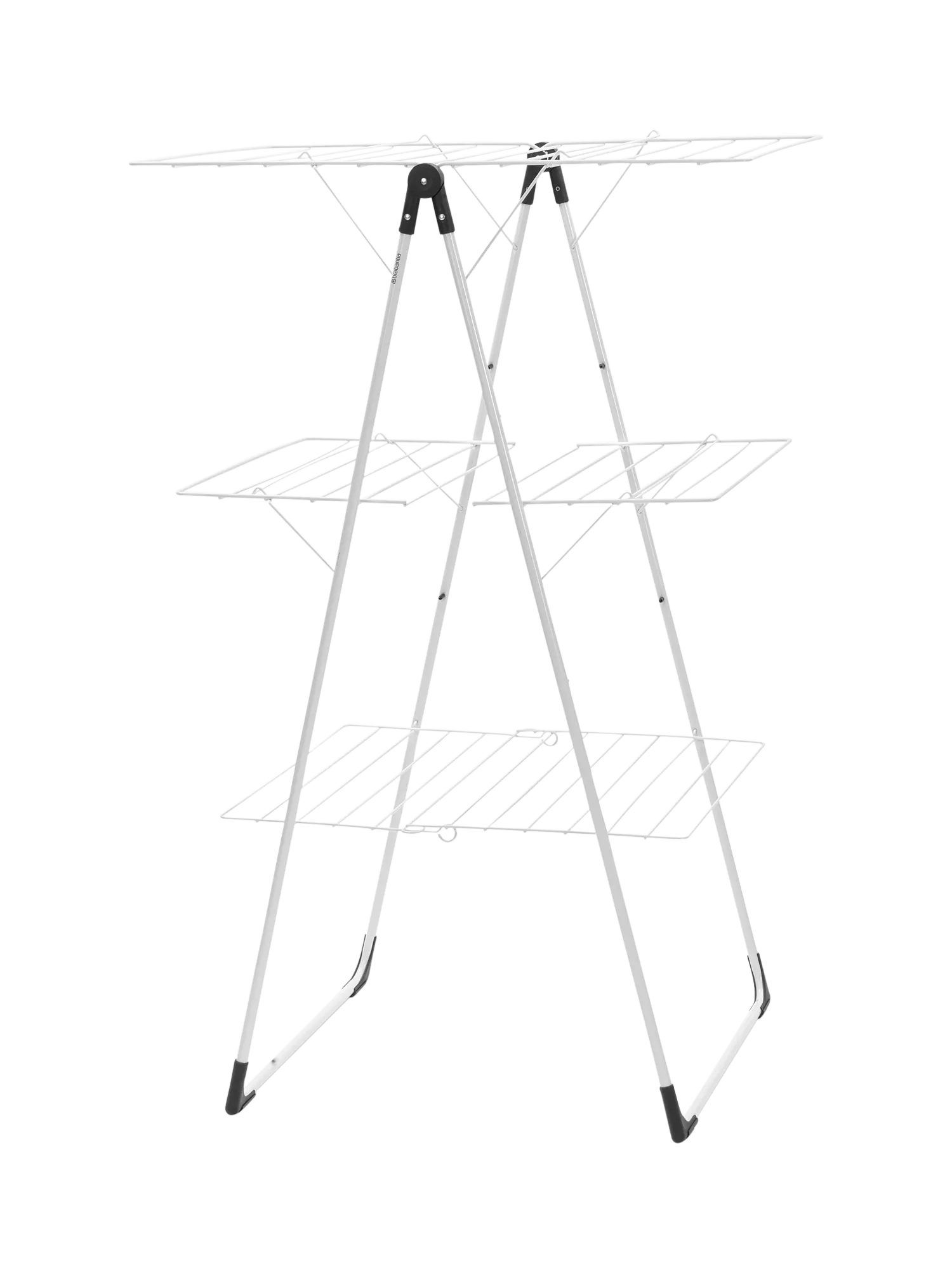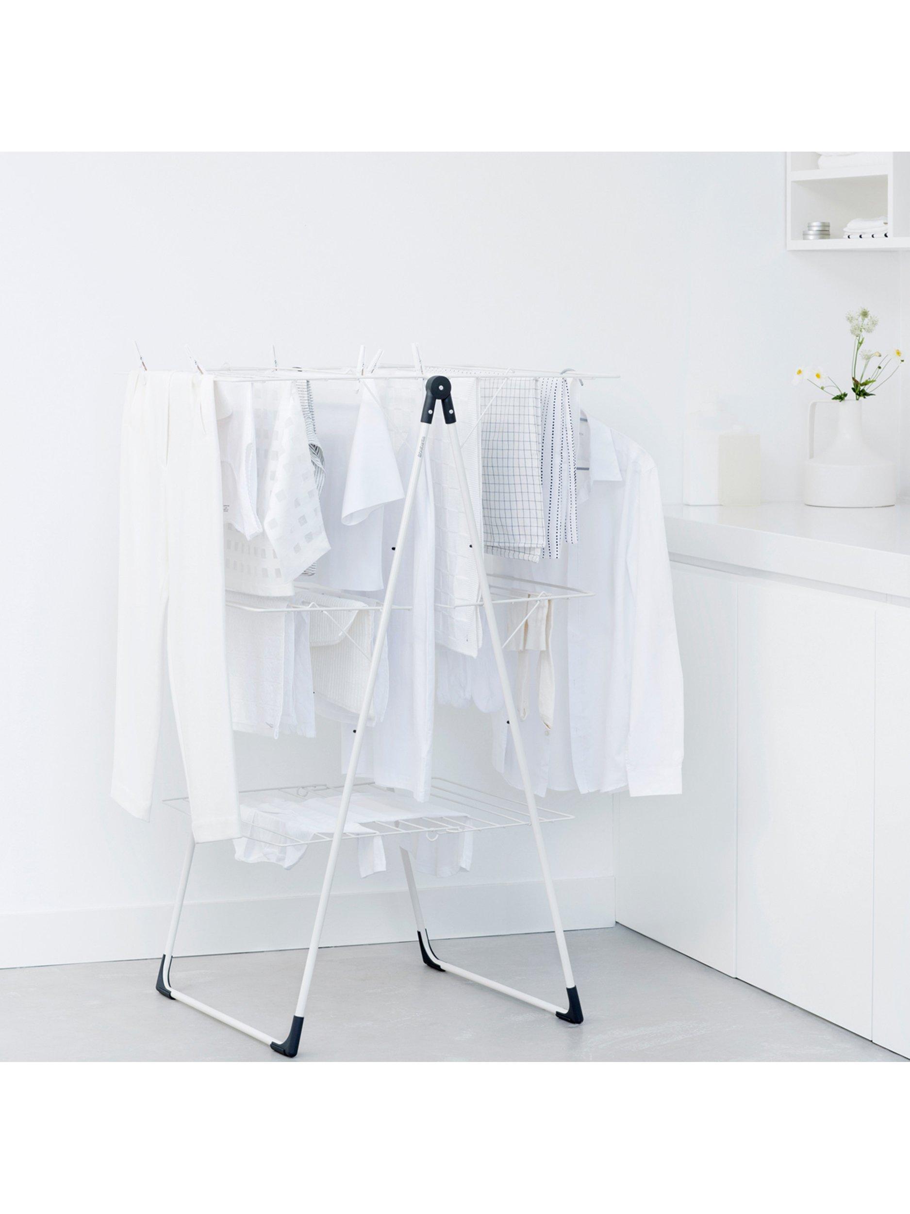 It can hold two full machine loads of laundry, including long laundry items like trousers, just fold it out and adjust the wings. You can even dry delicate laundry flat on its platforms. It's easy to move, even when fully loaded. When everything's dry, fold it for compact storage.