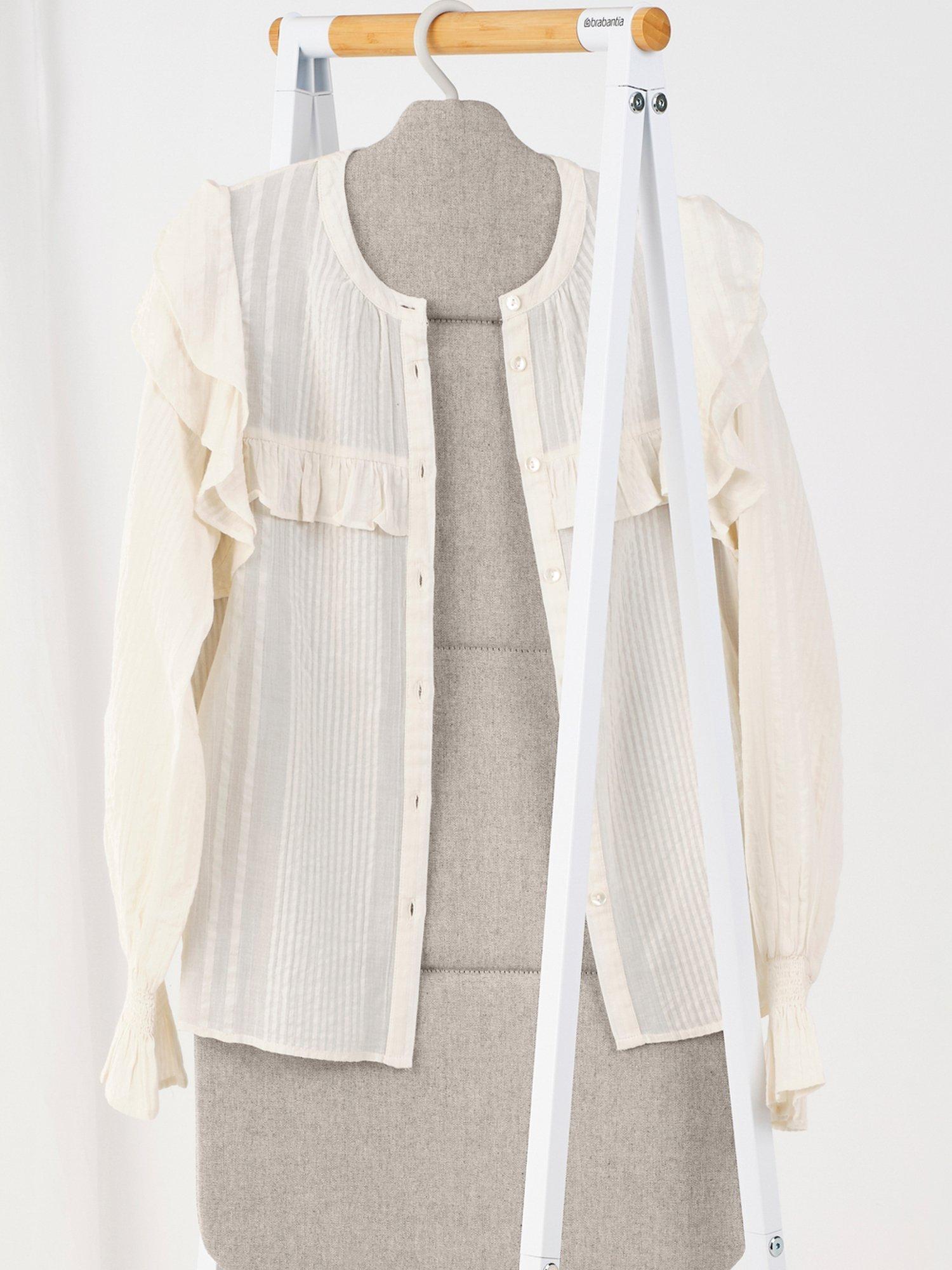 The solid surface allows you to use pressure for faster steaming and has a shoulder shape for easy steaming of collars and shoulders. Hang your garment over the board to steam the front and back sides separately for better results. Fits most clothes.
