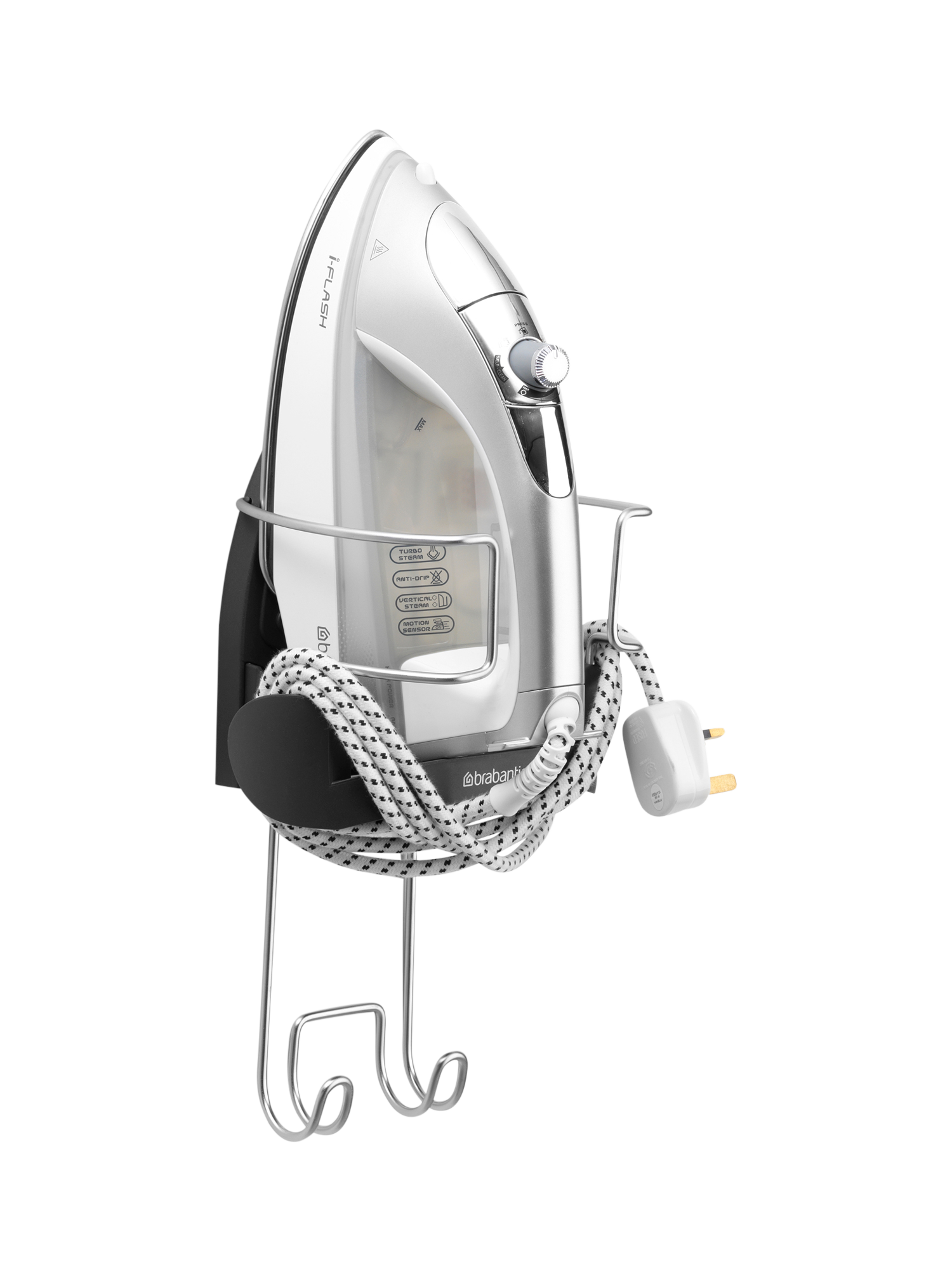 This heat resistant iron holder will fit all Brabantia ironing boards. The frame will hold all popular steam irons and is safe to use with a warm iron.
