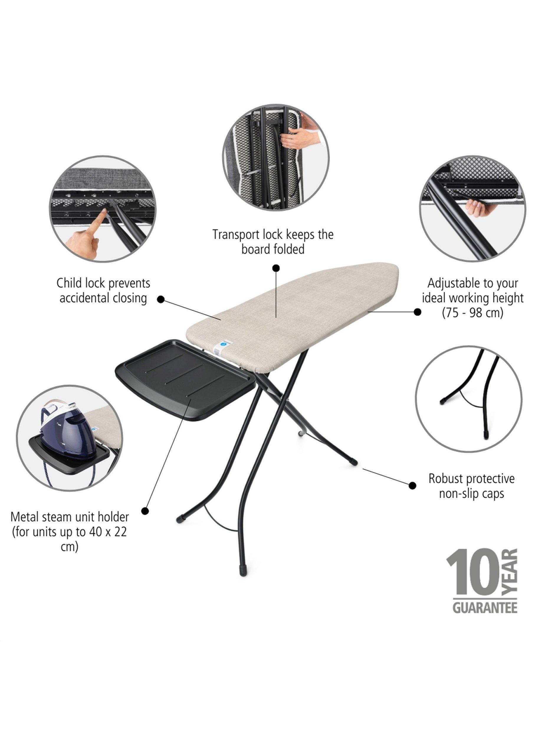 Those who iron a lot, deserve a lot of ironing board - like this XL Brabantia Ironing Board C offering a generous 124 x 45cm of ironing space. With a metal holder that is strong enough to hold your steam unit, and an adjustable working height. Ironing with this board is smooth and easy.