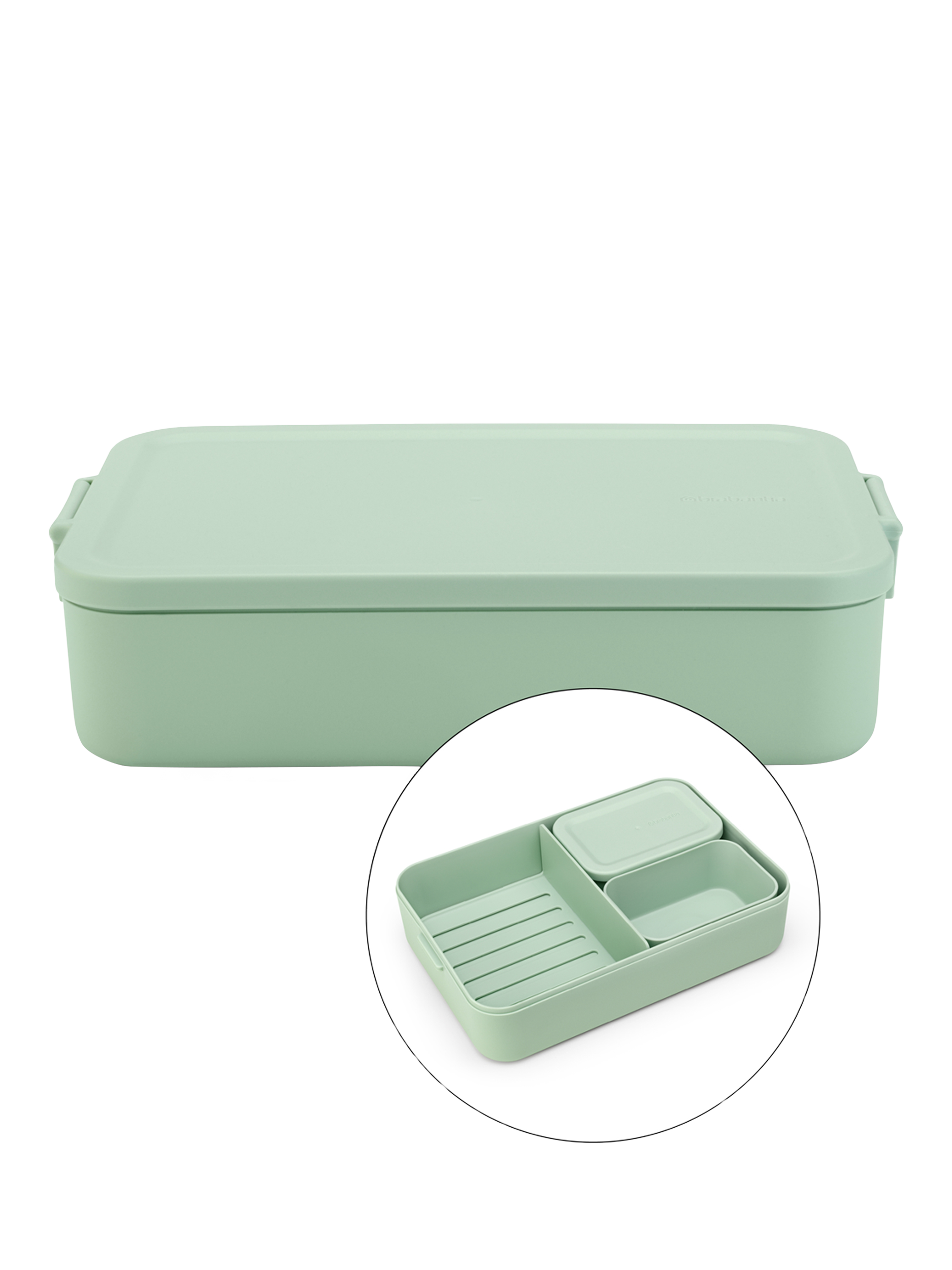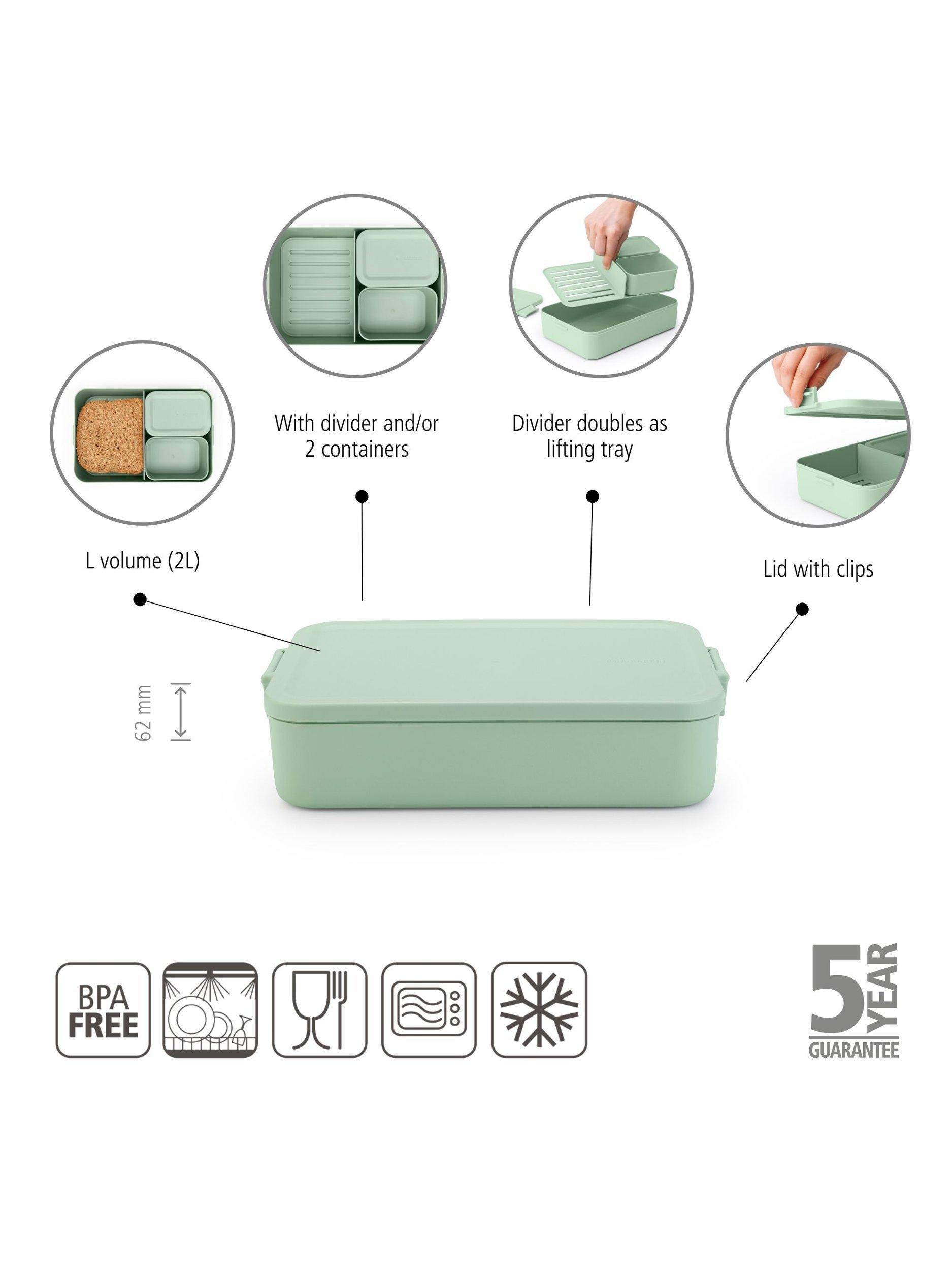 Large Bento lunch box from Brabantia's Make & Take range. Pack your sandwiches, wraps or bread rolls with ease or add the two separate containers for fruit, nuts or veggies.