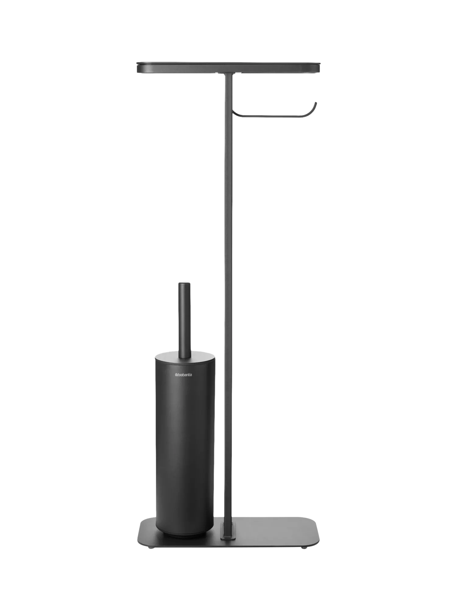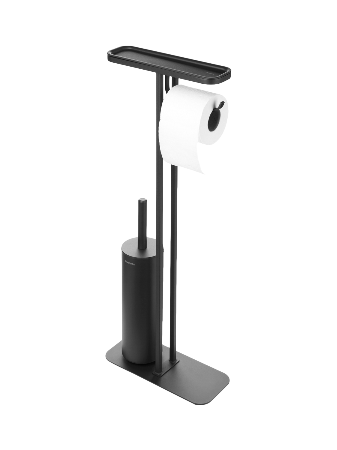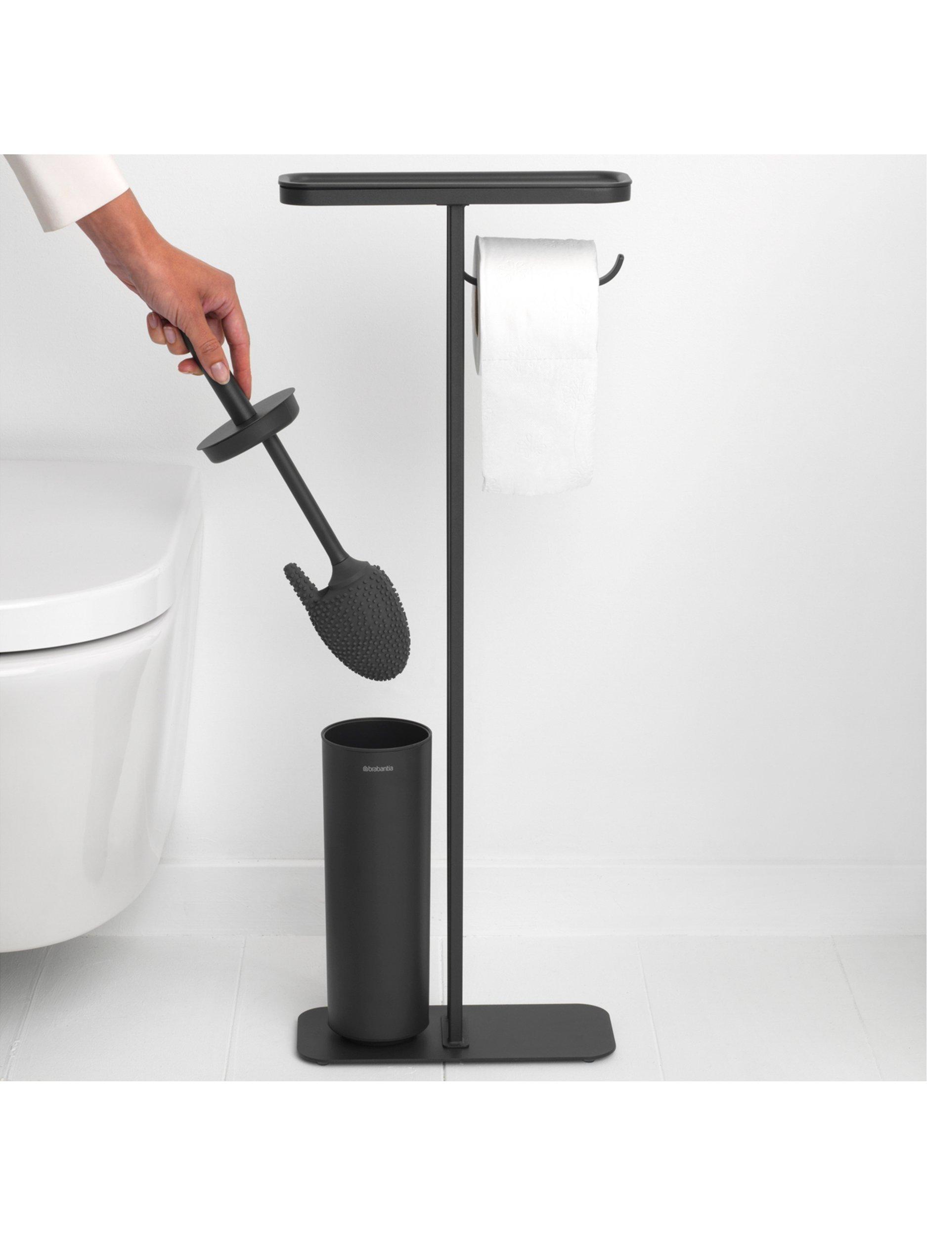Brabantia's MindSet bathroom accessories all have a mineral coating that gives them a contemporary look and textured feel. This all-in-one toilet butler includes a shelf, integrated roll holder and toilet brush in one stand so you have everything you need within easy reach and without having to mount anything to your wall.