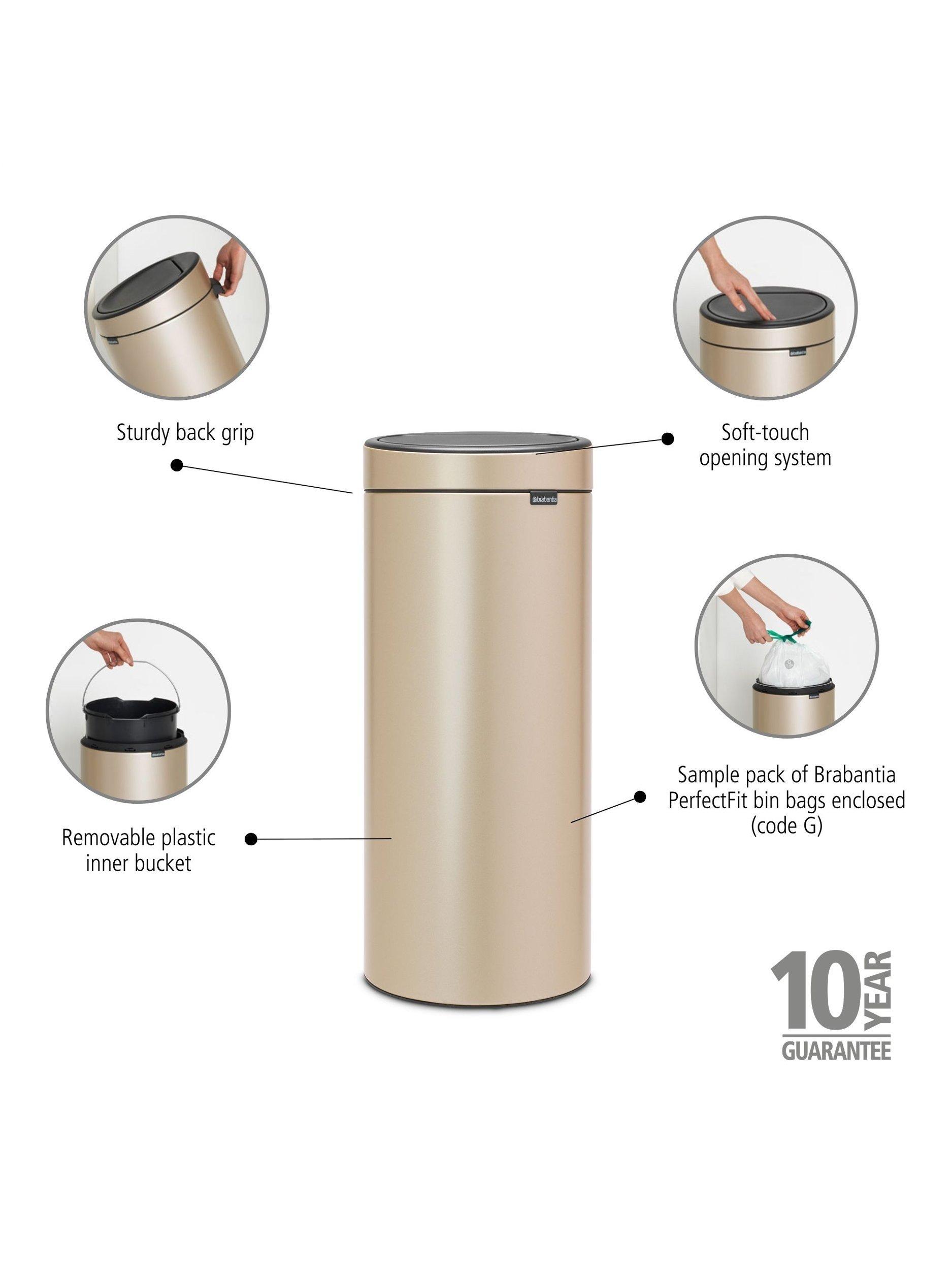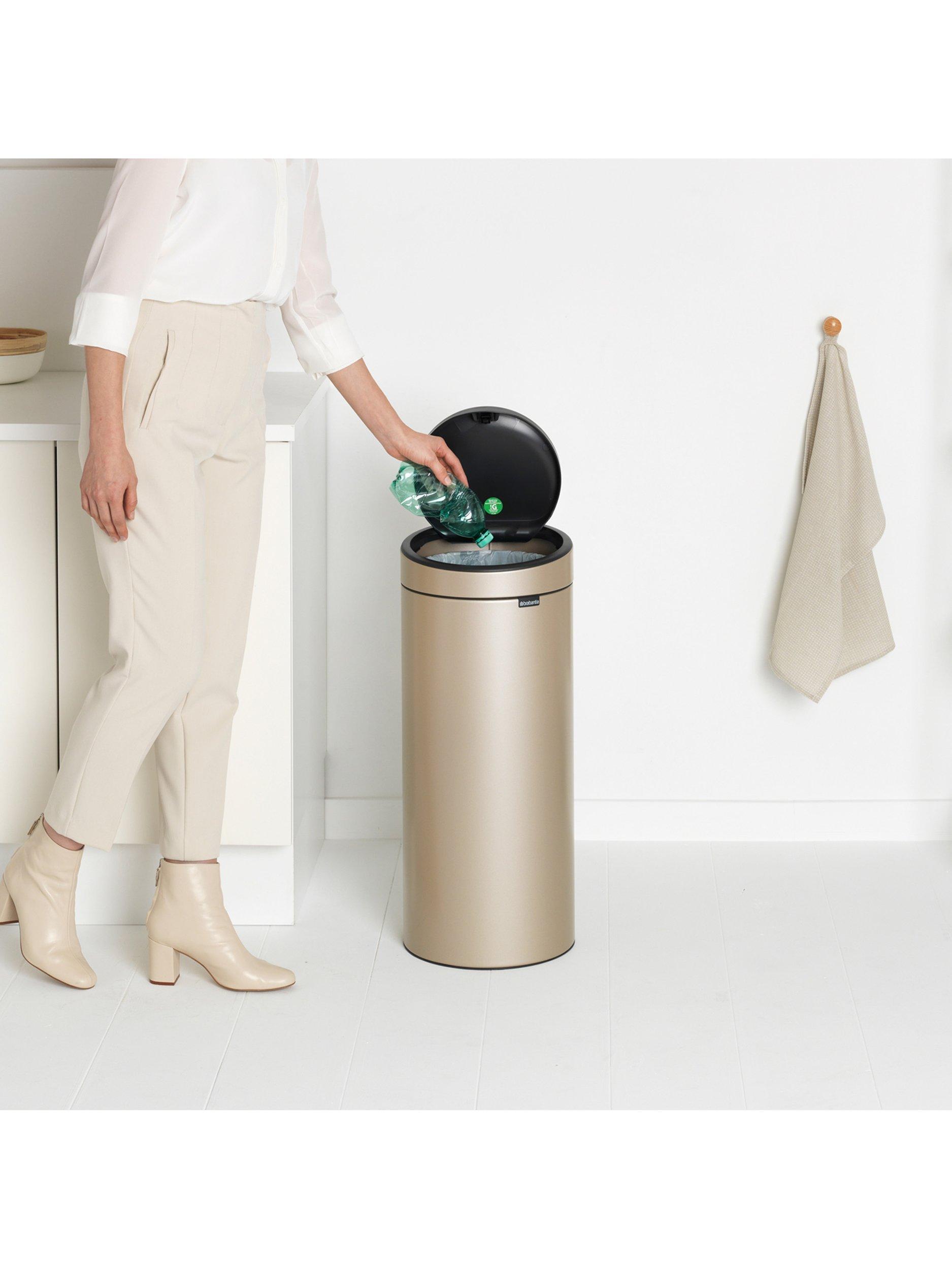 The newly designed lid of Brabantia's touch bin opens at the lightest touch, quietly and smoothly. It features a removable inner bucket that's easy to remove and clean.