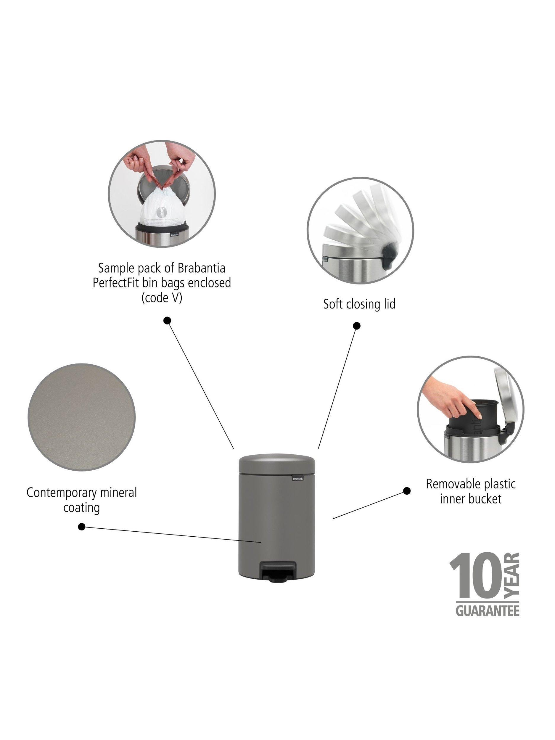 The Brabantia Pedal Bin NewIcon boasts a timeless design. With a removable 3 litre inner plastic bucket and odour-proof soft closing lid that's easy to open and keep clean. With a stable, non-slip base, it's perfect for your bathroom or cloakroom toilet. Made of corrosion resistant materials.