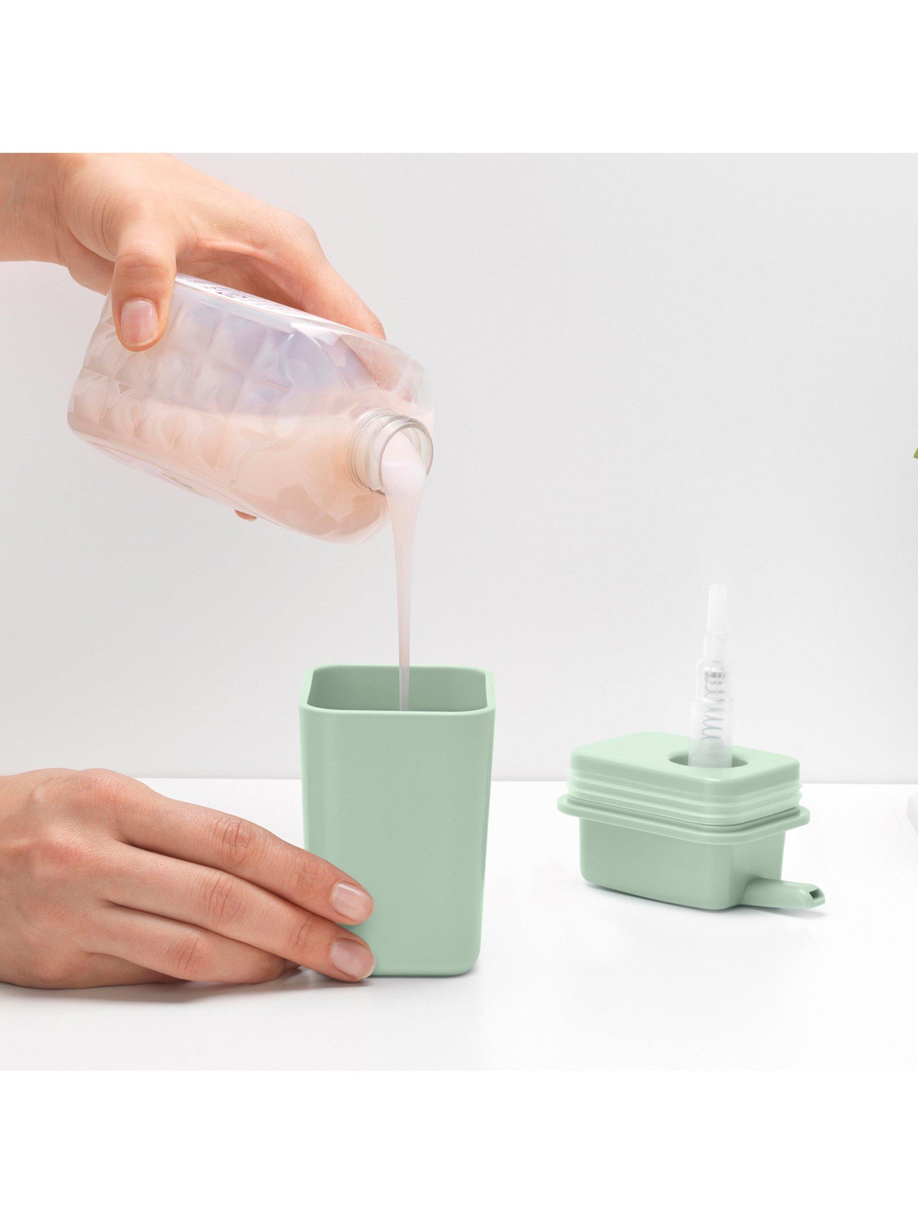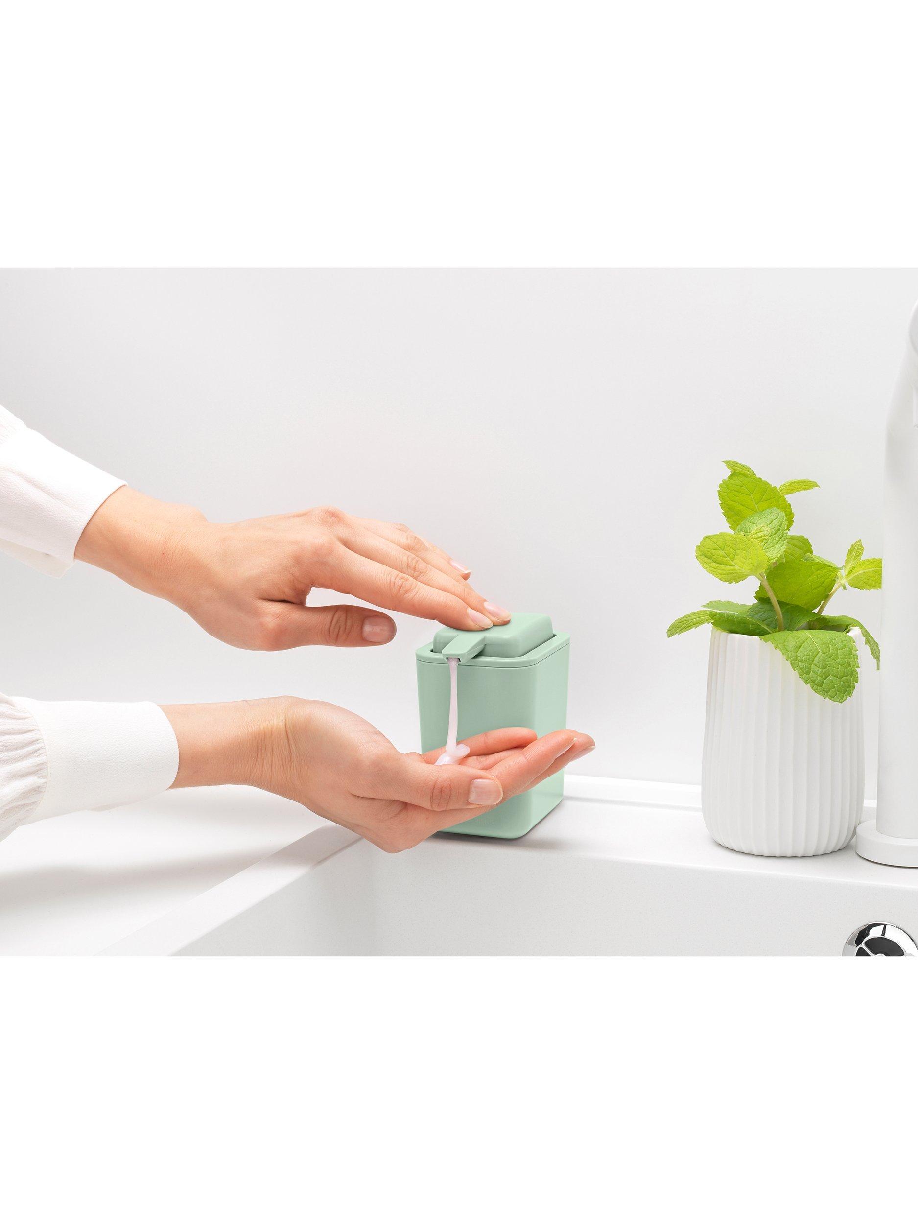 This soap dispenser has a large refill-opening that holds up to 200ml of hand soap or dishwashing liquid and fits the Brabantia Sink Organiser.