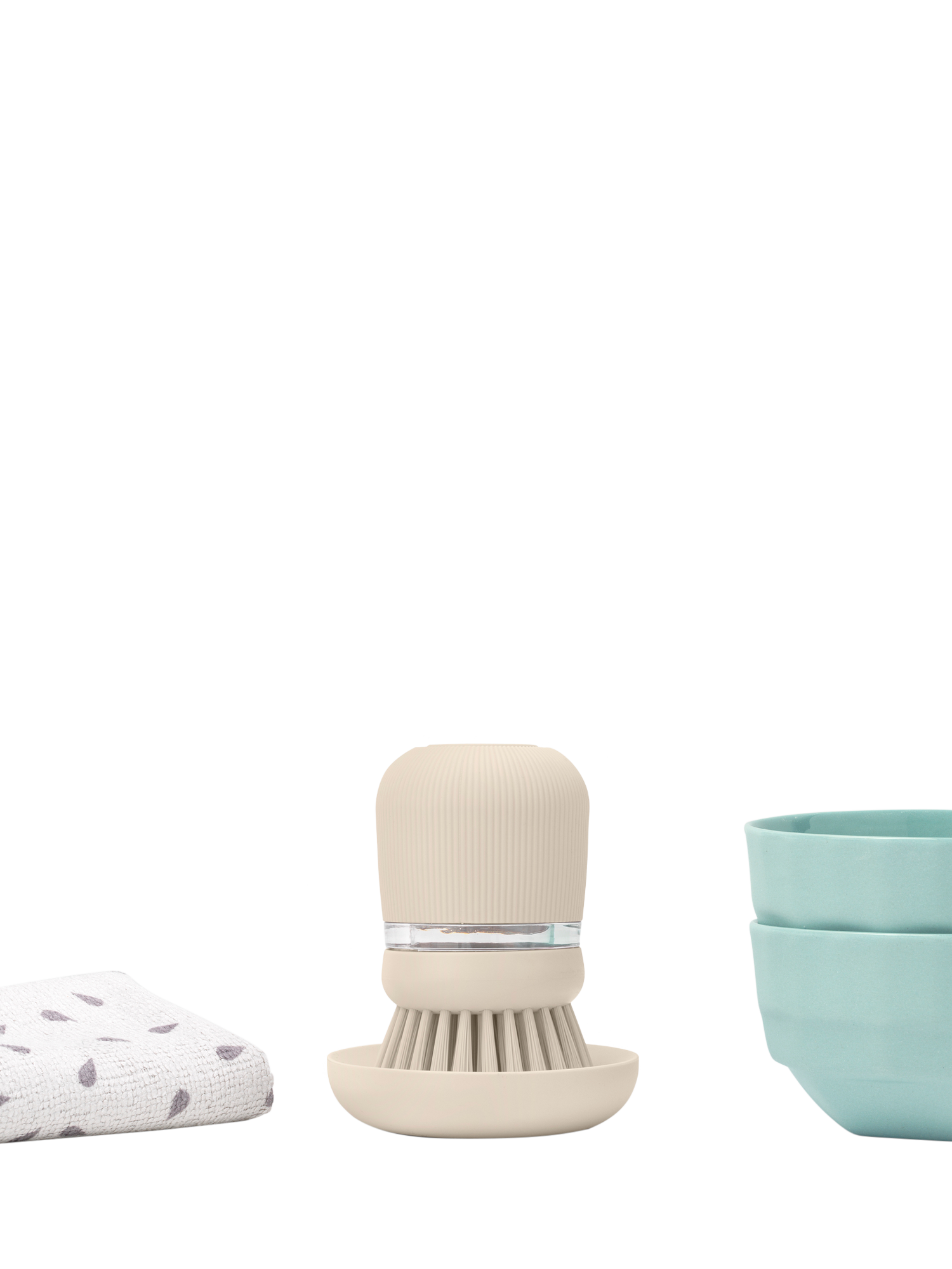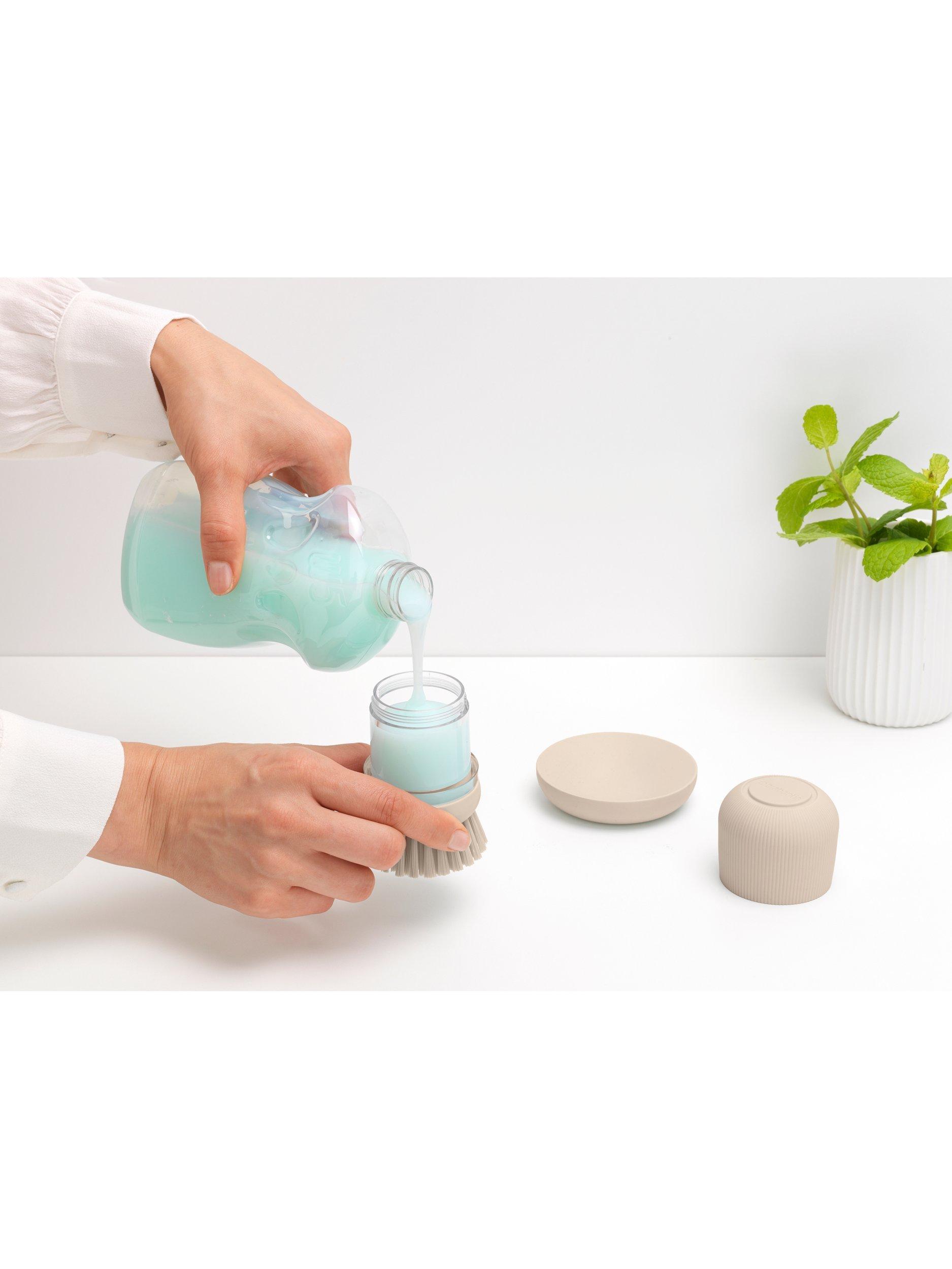 Easy to hold, the ergonomic palm brush gives you a secure grip, even when wet and there's always enough soap thanks to the transparent, easily refillable washing-up liquid reservoir.