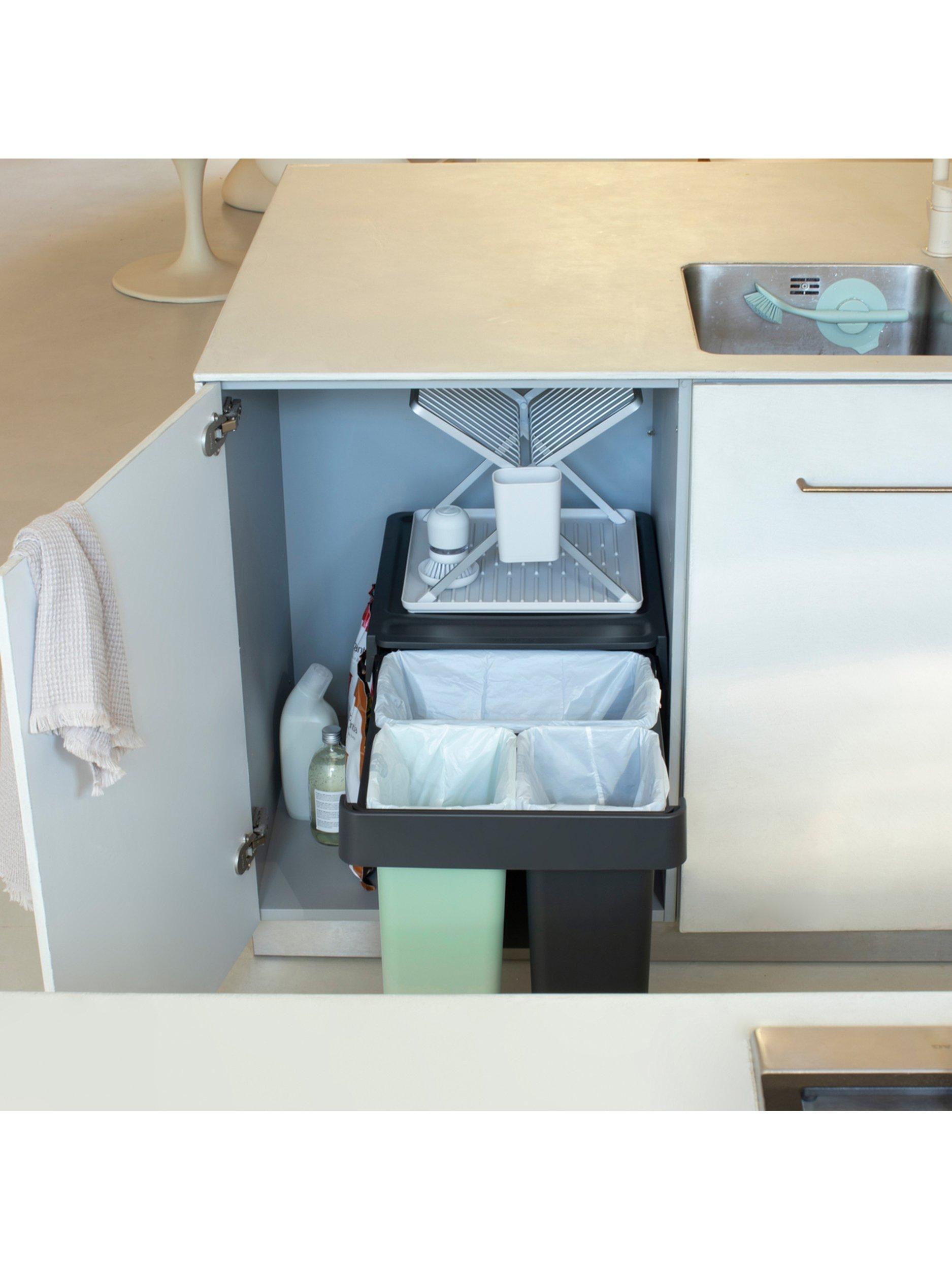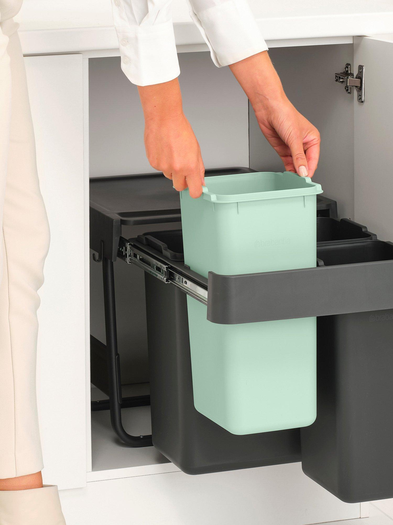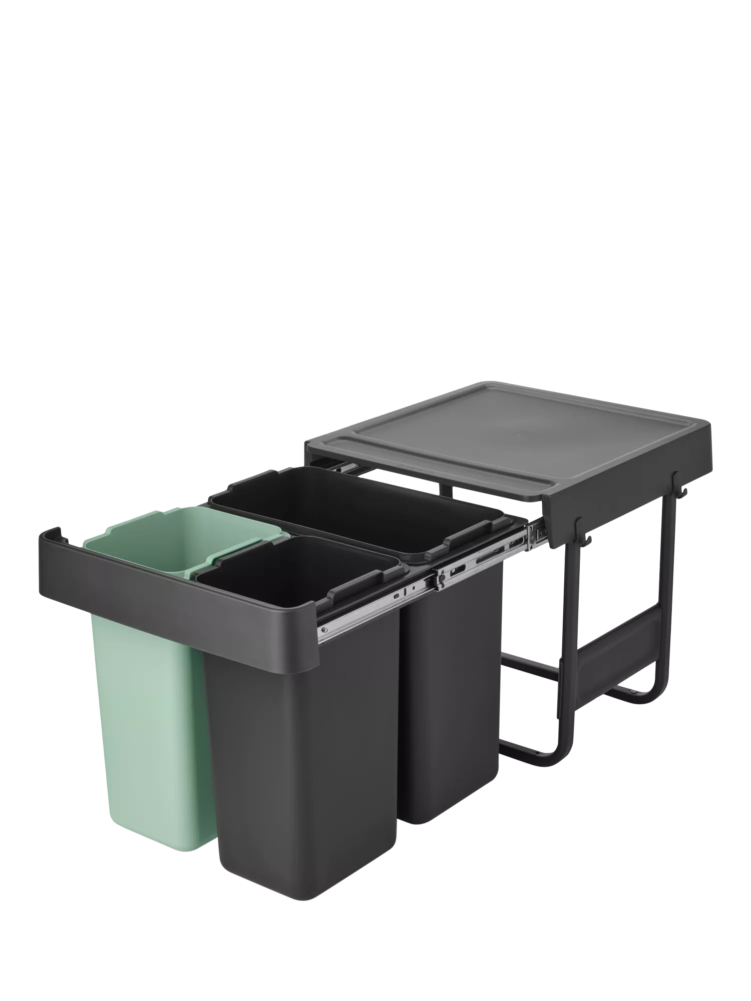 Triple your waste-separating power, without losing any floor space. Made to hide in the cupboard, these discreet bins fit in most kitchen cupboards, whether the doors open to the left or right.
