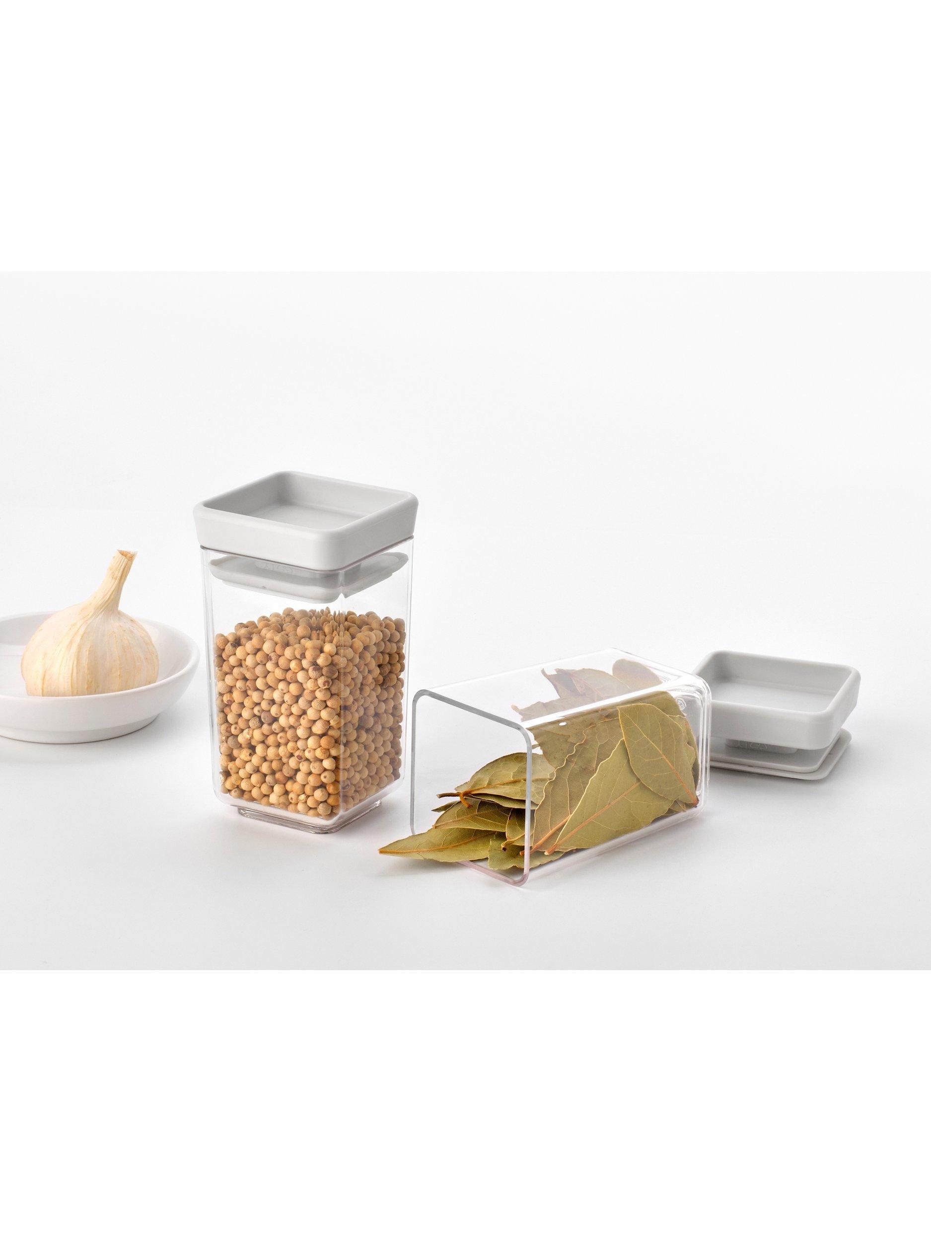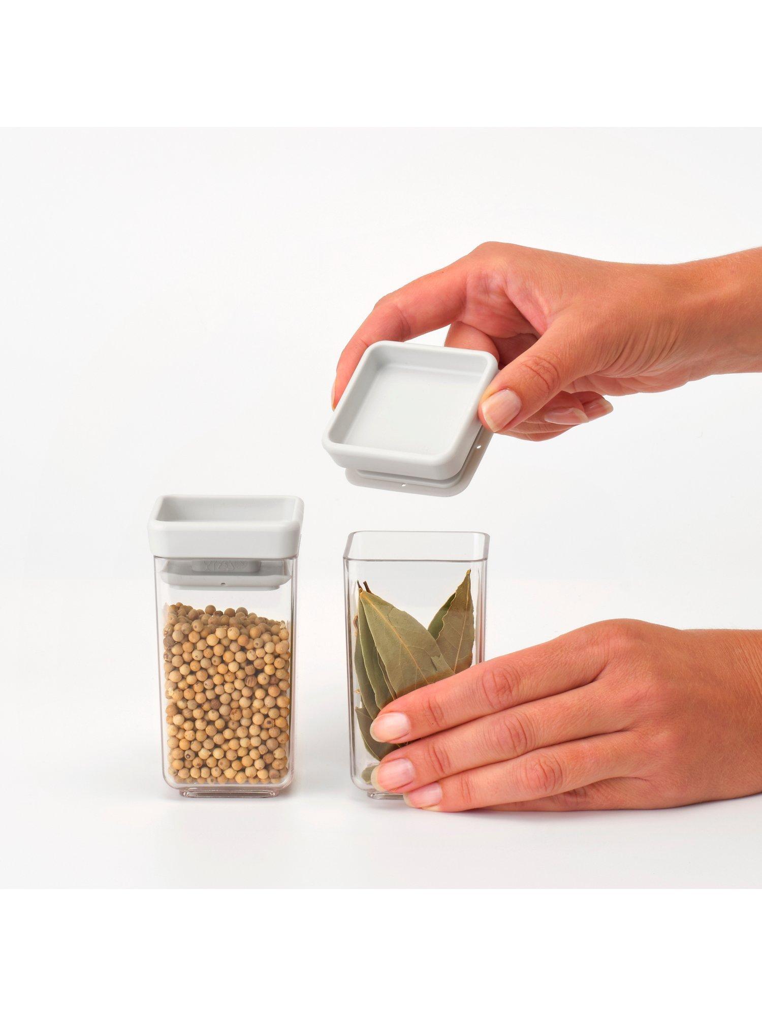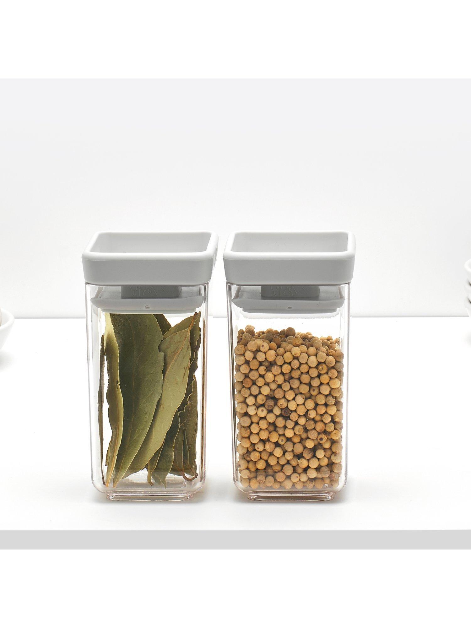 Pair of storage containers in a strong and space-efficient design that shows contents at a glance. Ideal for keeping stock in sight and food fresh for longer. Part of the Brabantia Tasty+ kitchen collection.