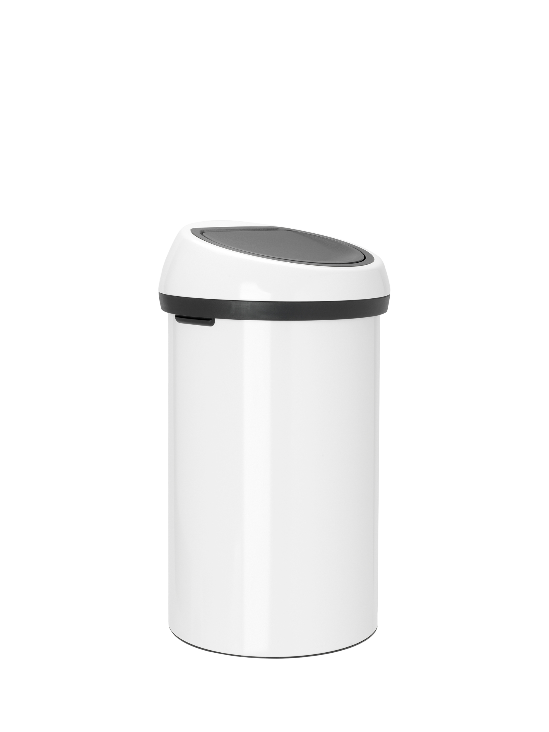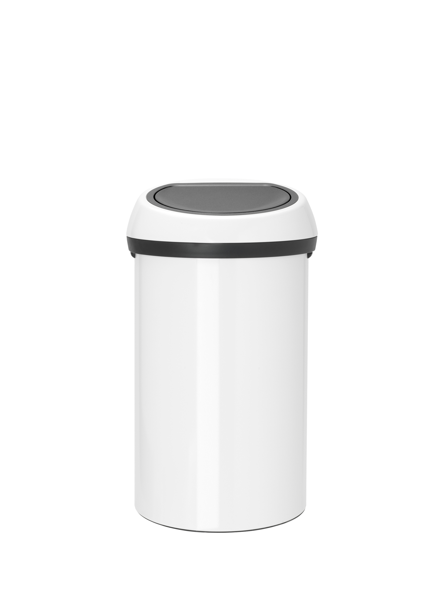 - Plastic and lacquered parts are best cleaned with a damp cloth and an all-purpose cleaning agent. Do not use aggressive or abrasive products. Never use products containing chloride or hydrochloric solutions.Brabantia Touch Bin 60 litre White with White lid. Easy and light operation, Brabantia's 'soft-touch' closure. Extra large opening, prevents spills. Large 60 ltr capacity. Removable lid unit and sturdy carrying handles. Matching Brabantia Bin Liners available, size H. Protective base rim pr