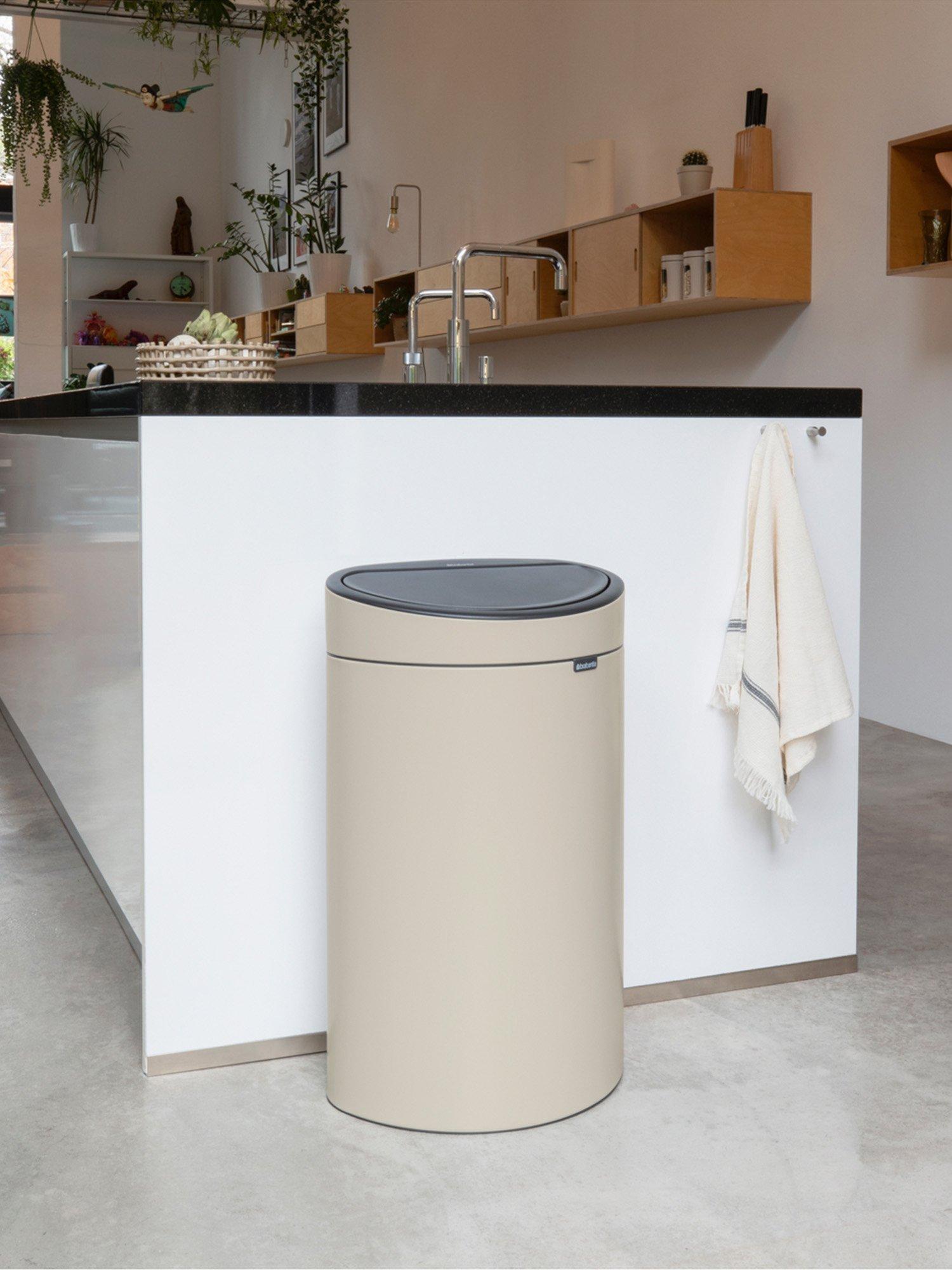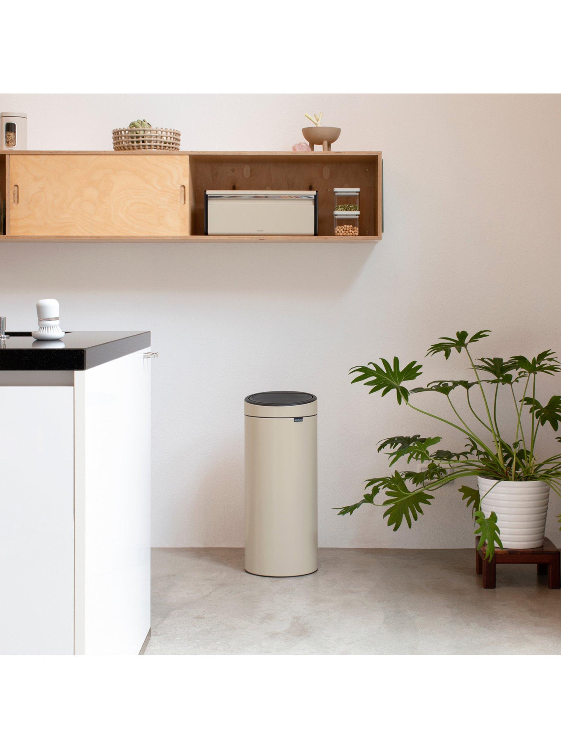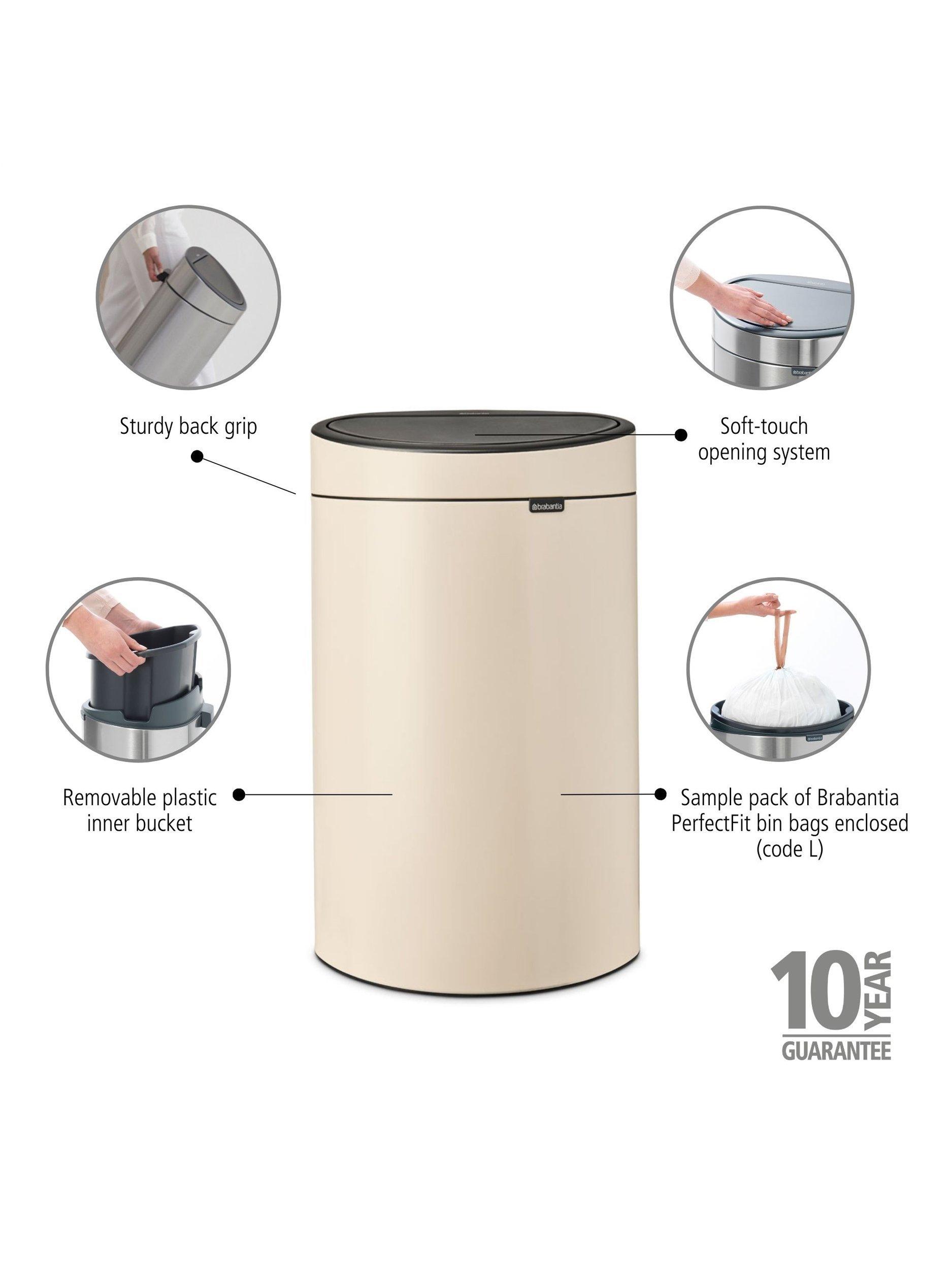 - Chrome plated, plastic and lacquered parts can be cleaned with a damp cloth and an all-purpose cleaning agent. Clean stainless steel with a micro-fibre cloth and glass cleaner. Do not use aggressive or abrasive products or products containing chloride.Brabantia Touch Bin 30 litre with plastic bucket, White with white lid. Easy and light operation, Brabantia's unique 'soft-touch' closure. Easy to empty the bin, removable lid unit. Easy to empty and clean, removable plastic inner bucket. Match