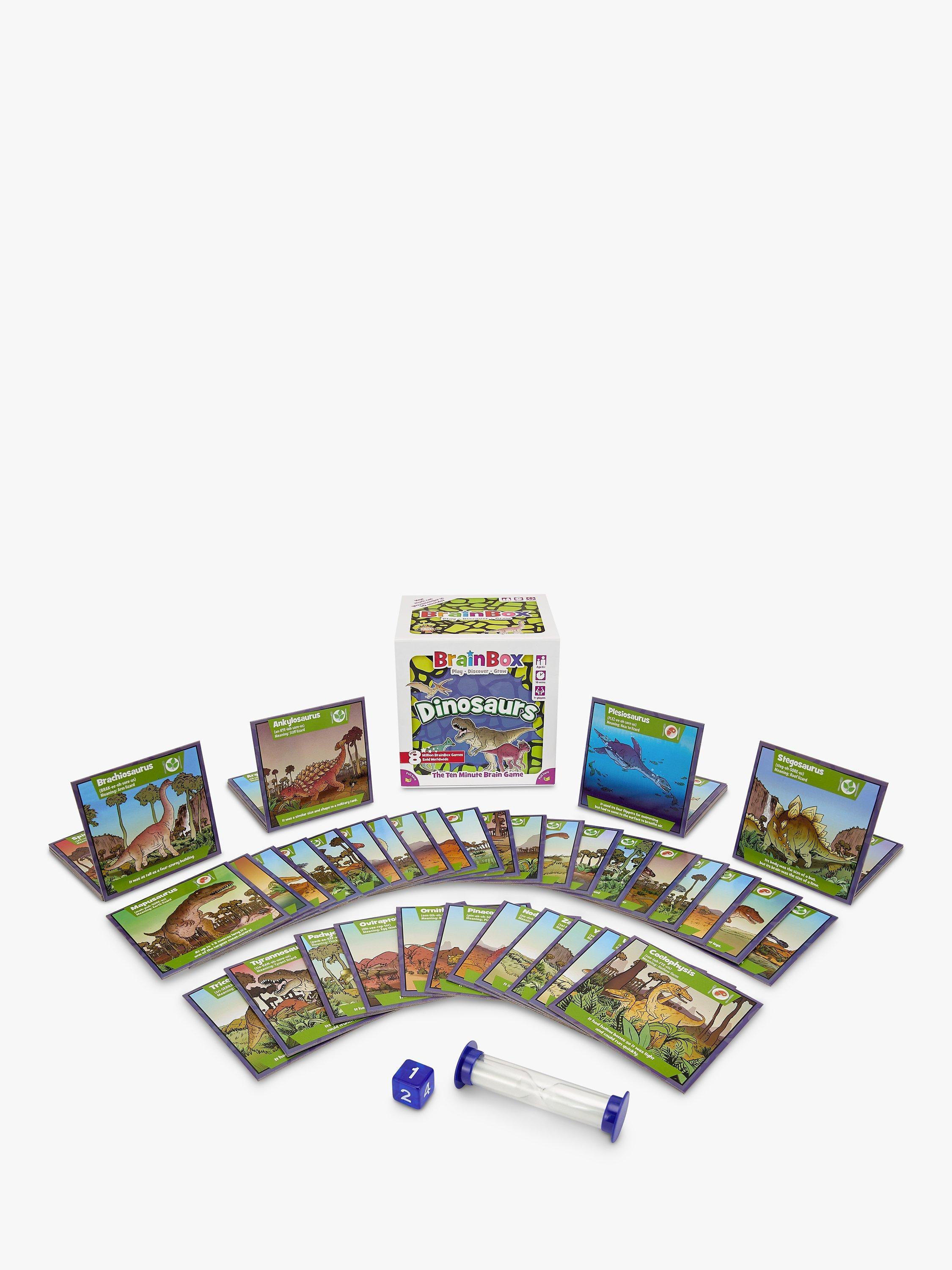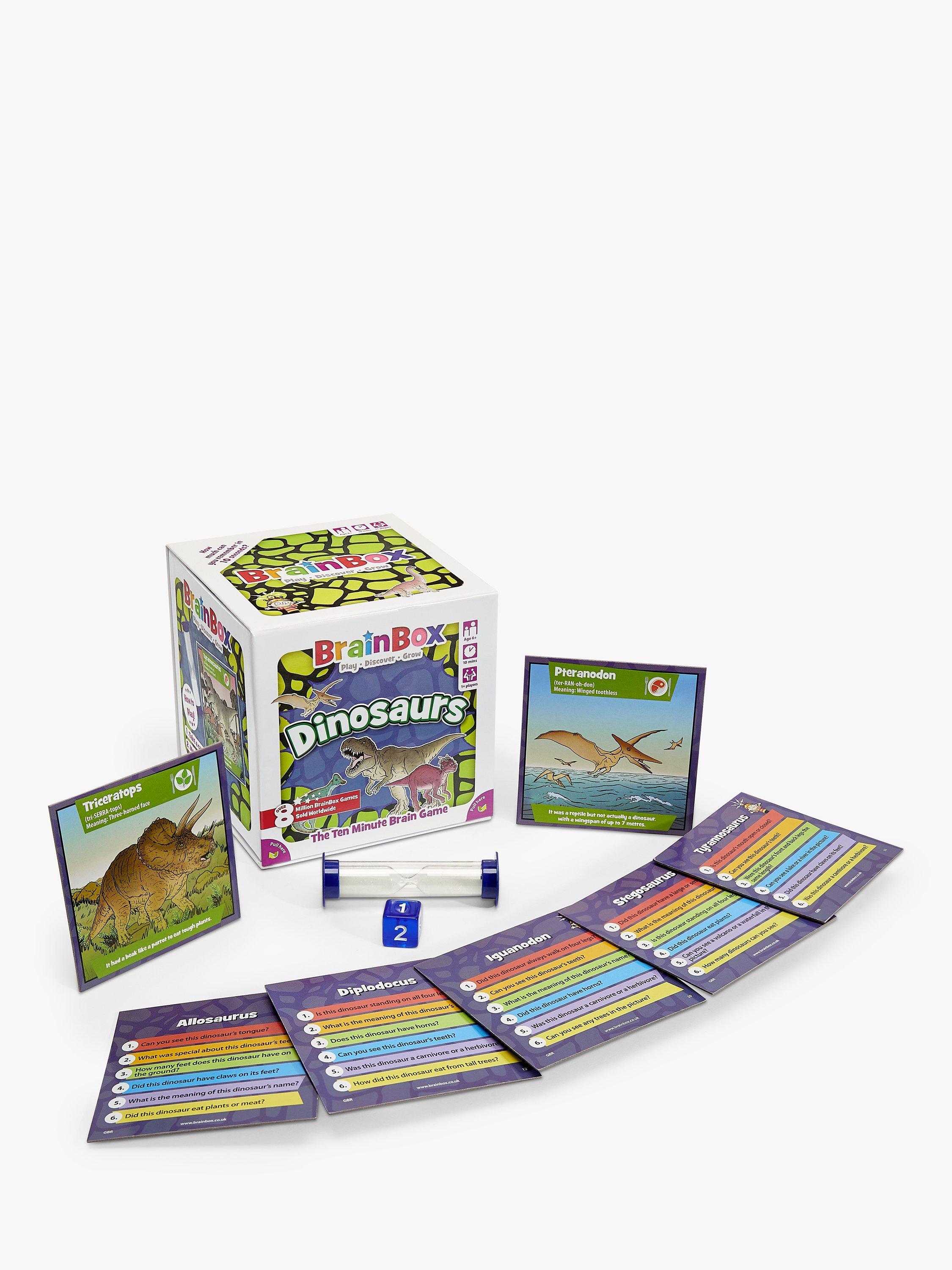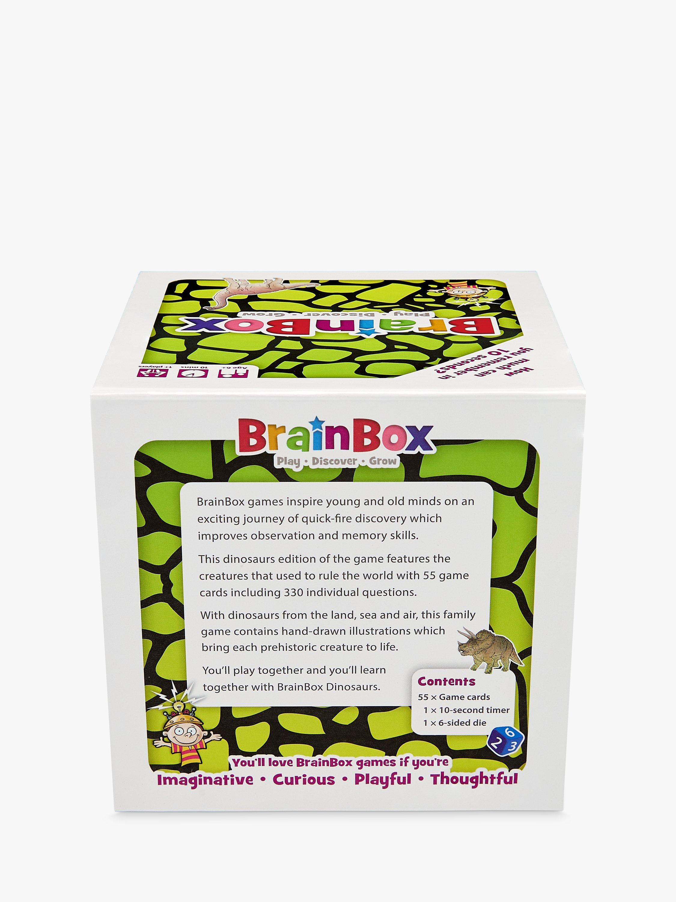 BrainBox is a fun memory and observation card game which tests your eye for detail. What can you remember in just 10 seconds? This dinosaurs edition of the game features creatures from all three prehistoric era: Triassic, Jurassic and Cretaceous.