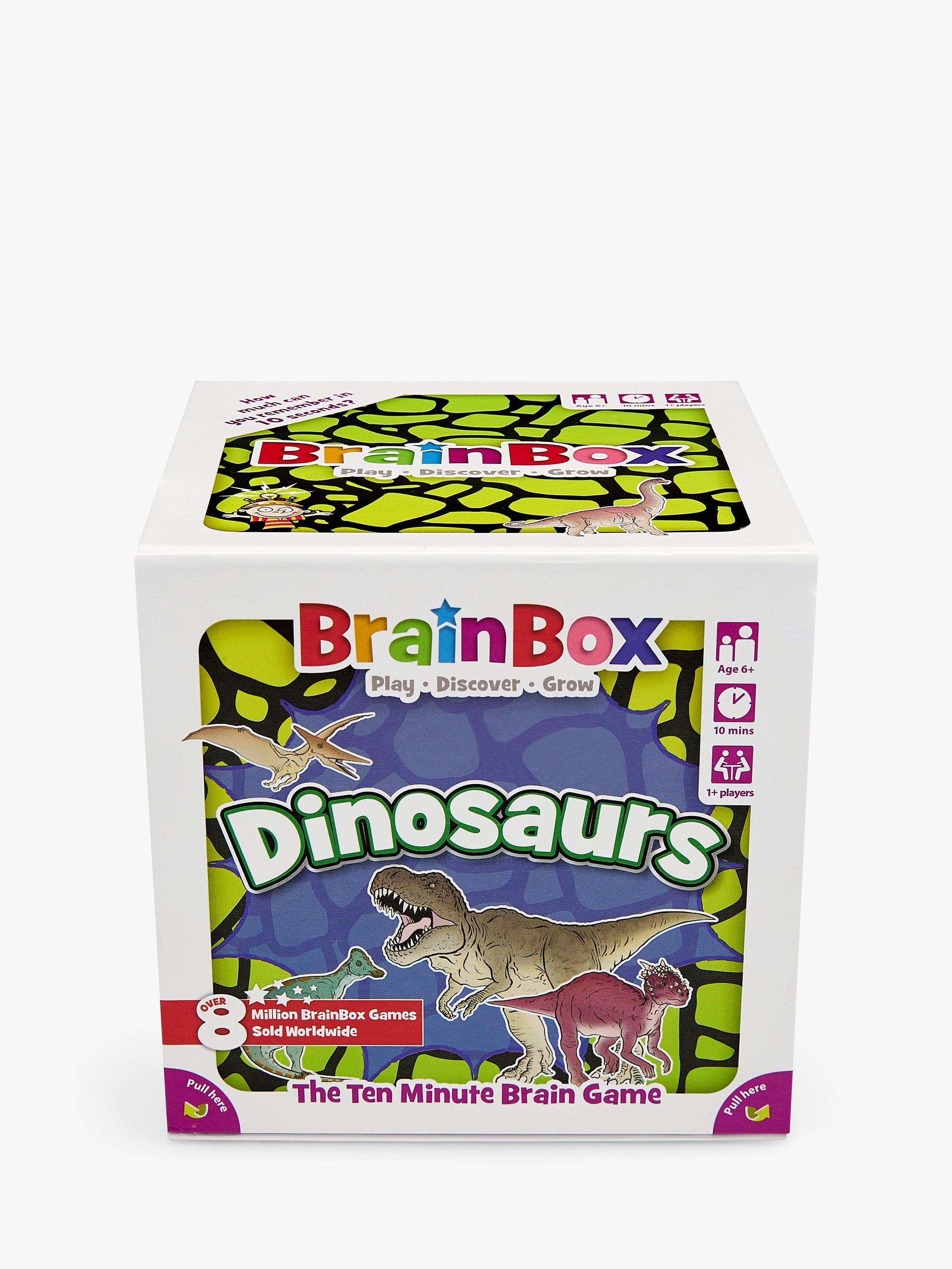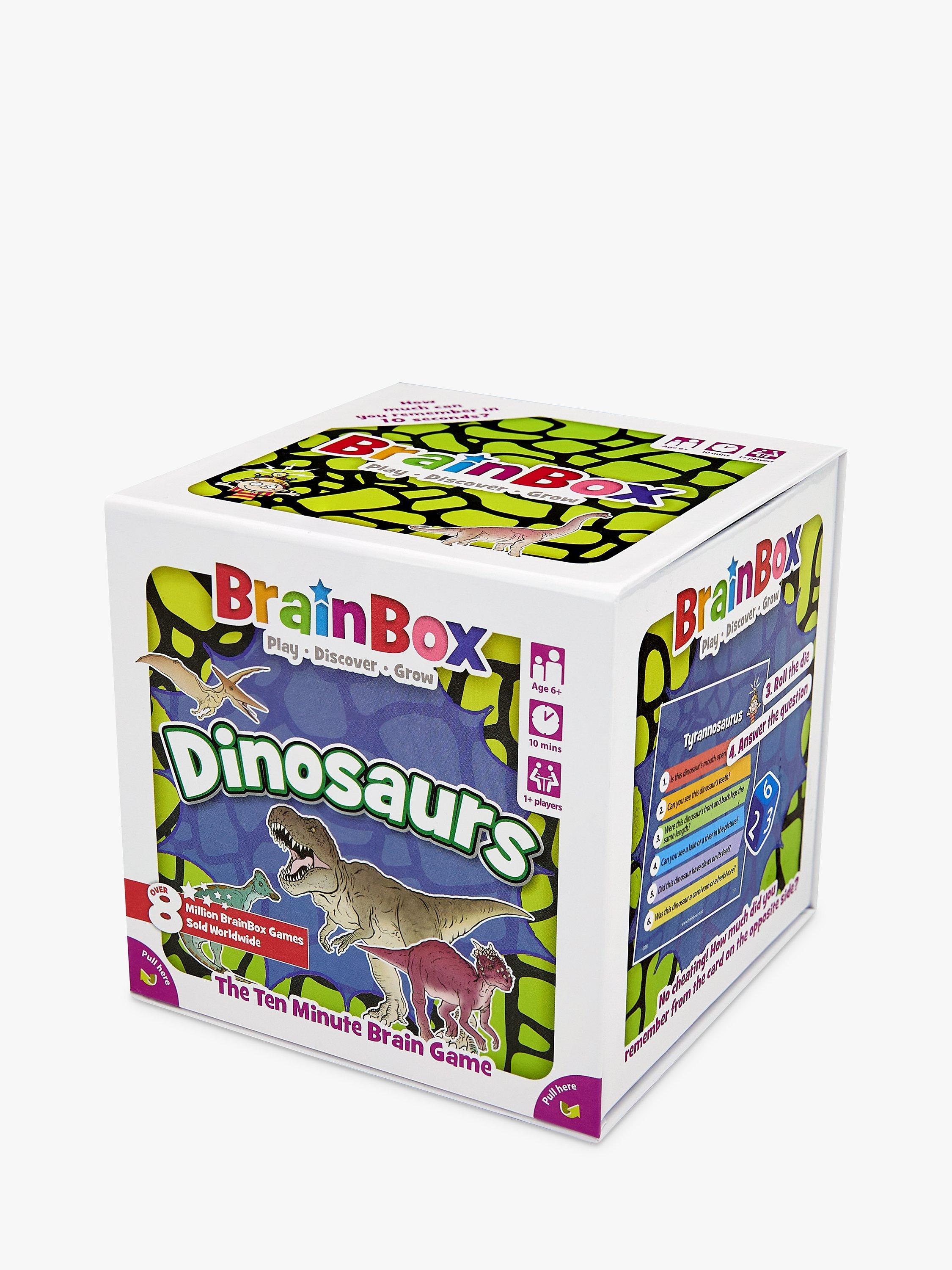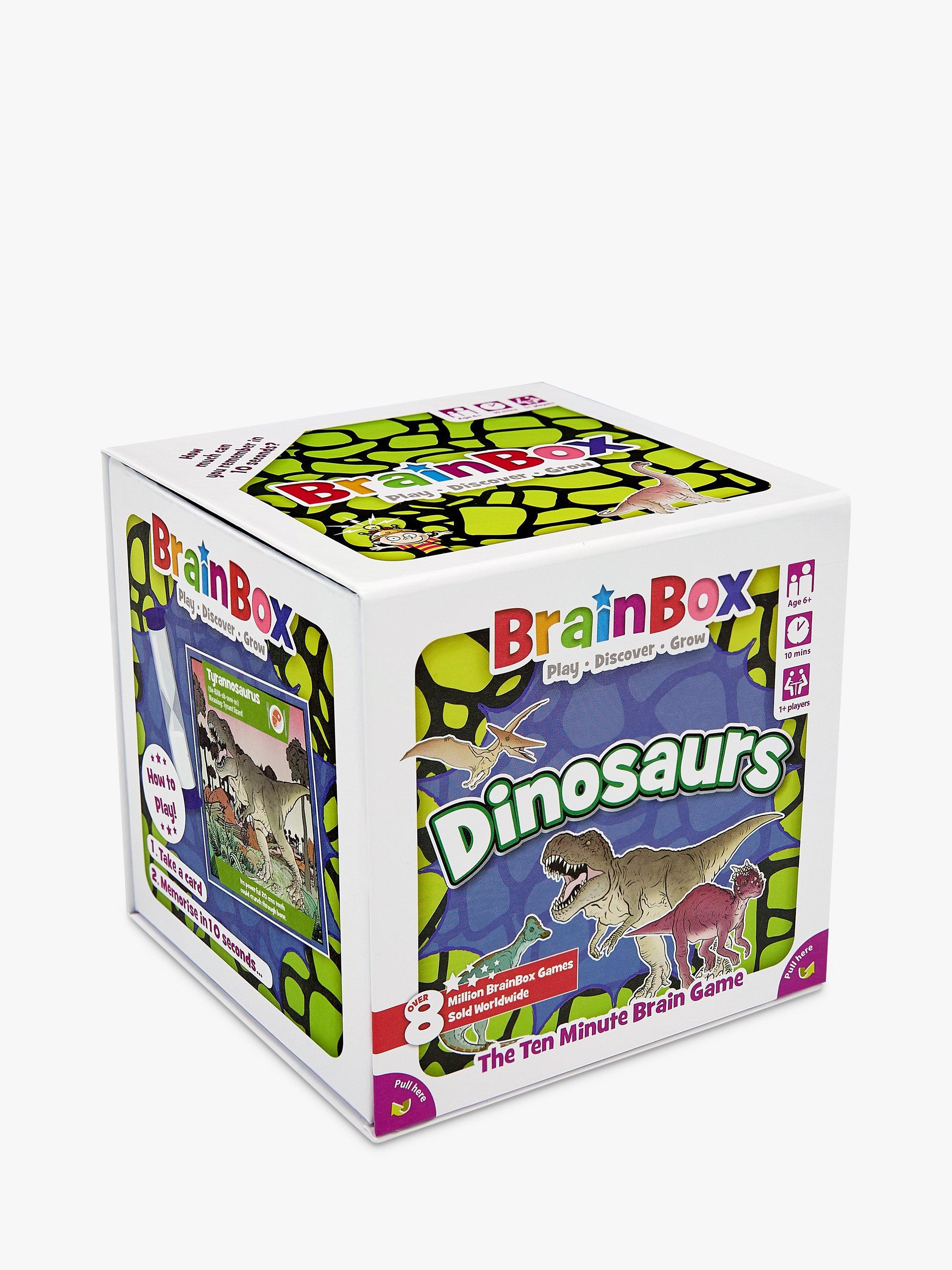 BrainBox is a fun memory and observation card game which tests your eye for detail. What can you remember in just 10 seconds? This dinosaurs edition of the game features creatures from all three prehistoric era: Triassic, Jurassic and Cretaceous.