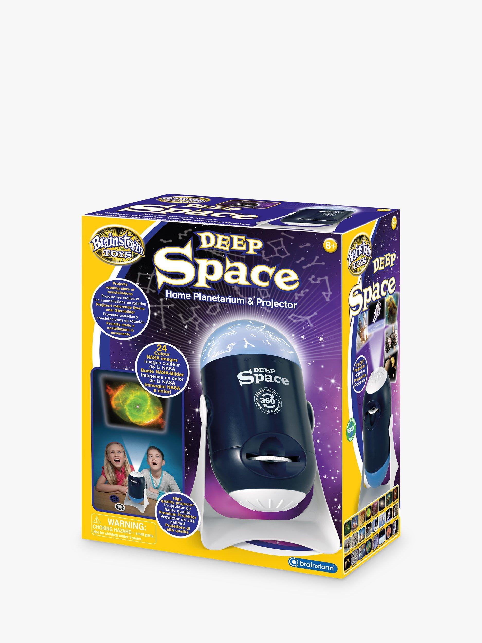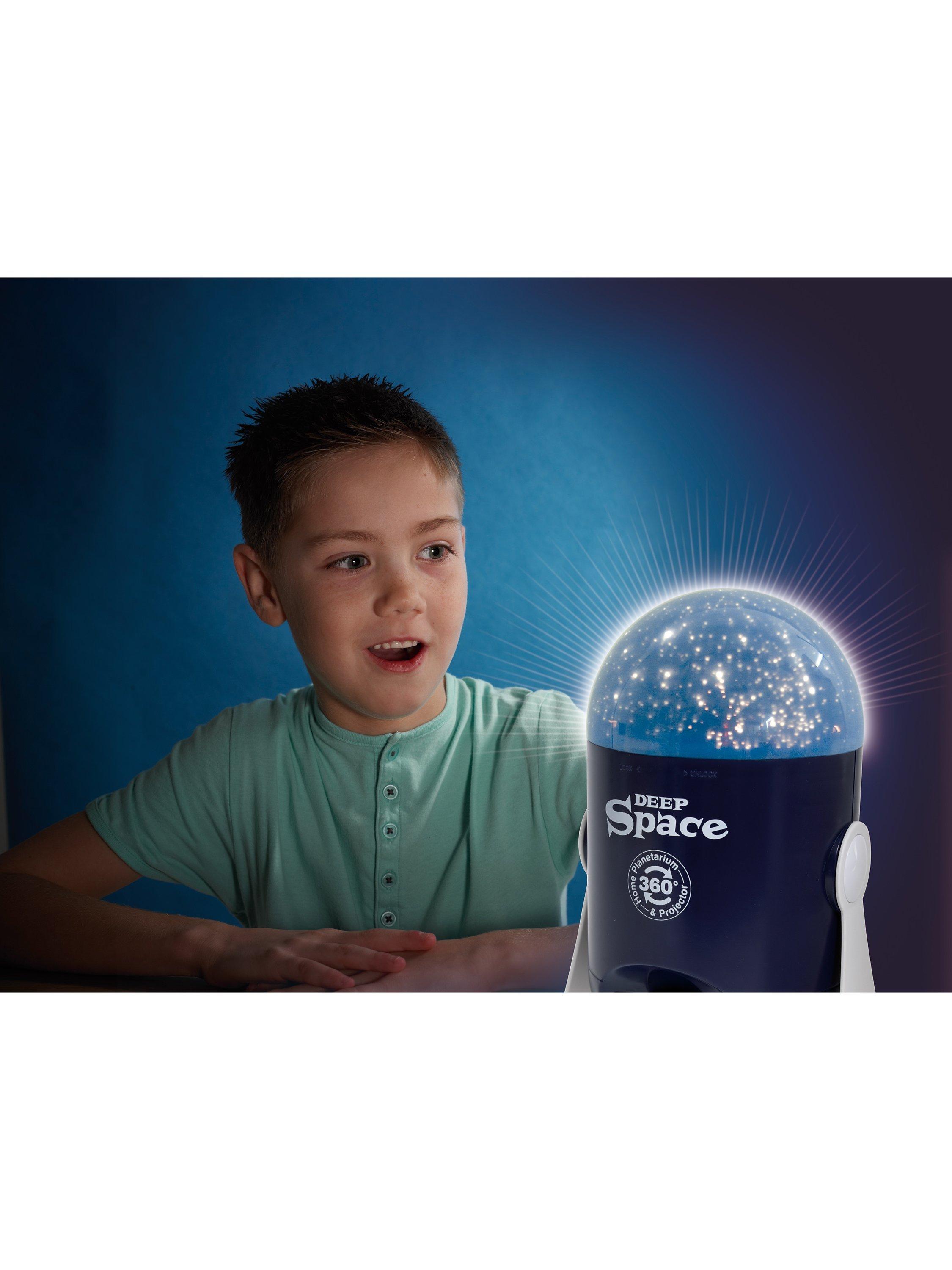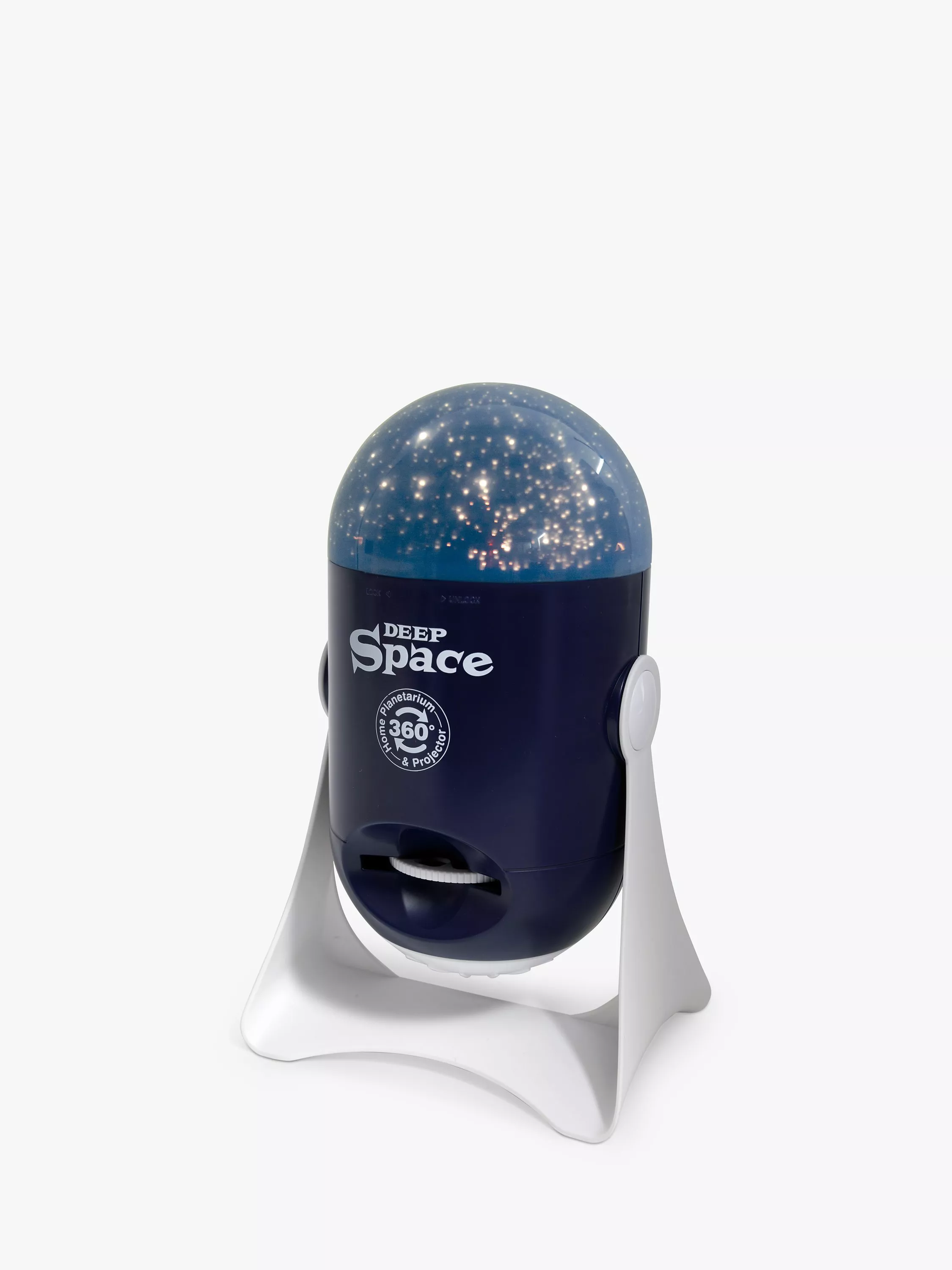 The planetarium has two domes, one projecting star patterns and the other projecting constellations onto ceilings and walls. Place the black star or constellation dome onto the slots on the head of the deep space unit, gently twist to hold the dome in place, turn the switch on to the dome projector setting and watch the images rotate around the room. Untwist the domes to release. Add the night light dome and deep space becomes a cool night light with rotating stars and constellations.