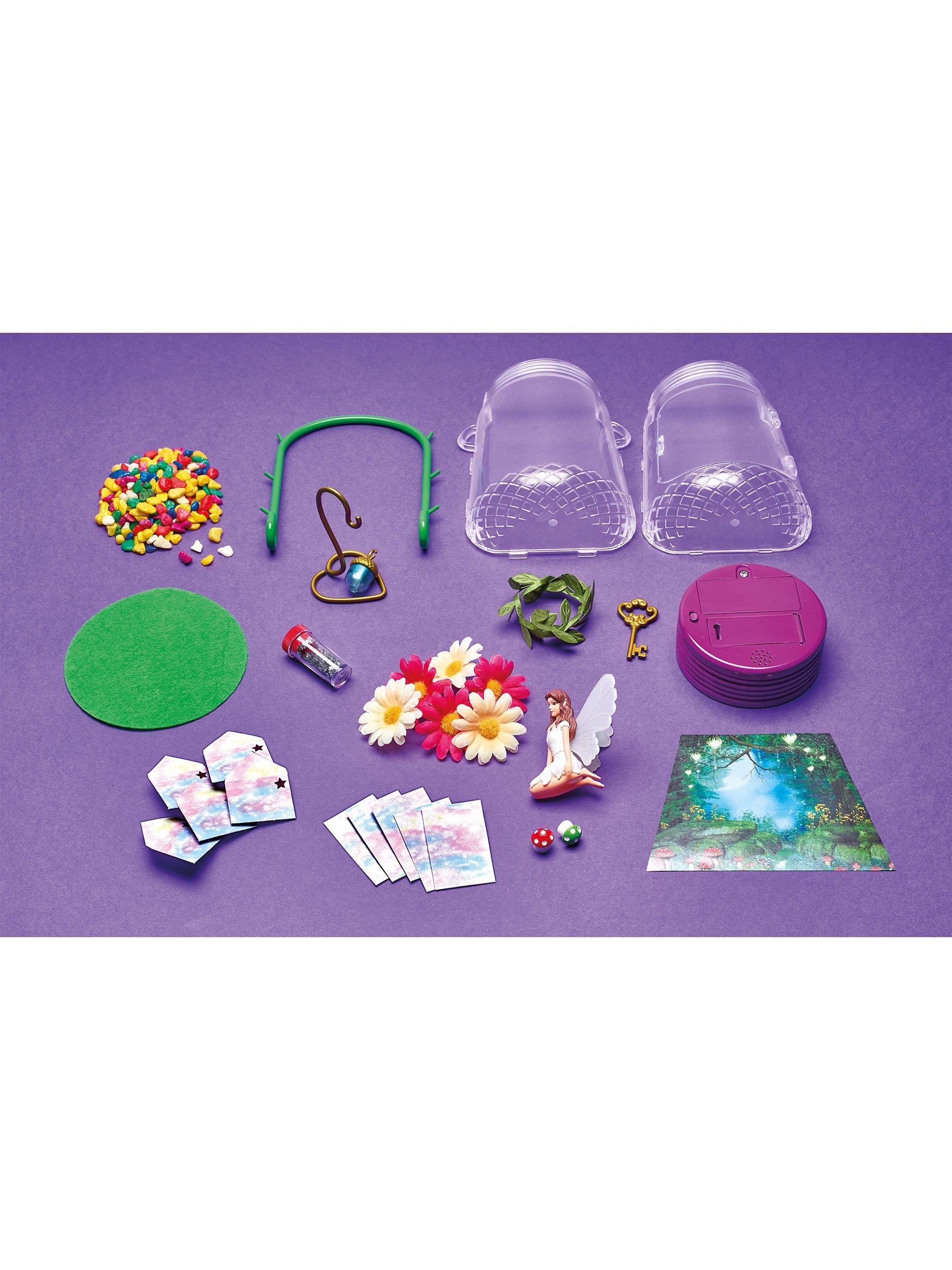 Write a special letter to your favourite fairy, with five charming mini notes and envelopes. At bedtime, or outside in your night-time garden, the colour-changing LED turns your jar into a delightful nightlight. Auto shut off saves battery life. Use the key in the sparkling-sound compartment to unlock a secret code.