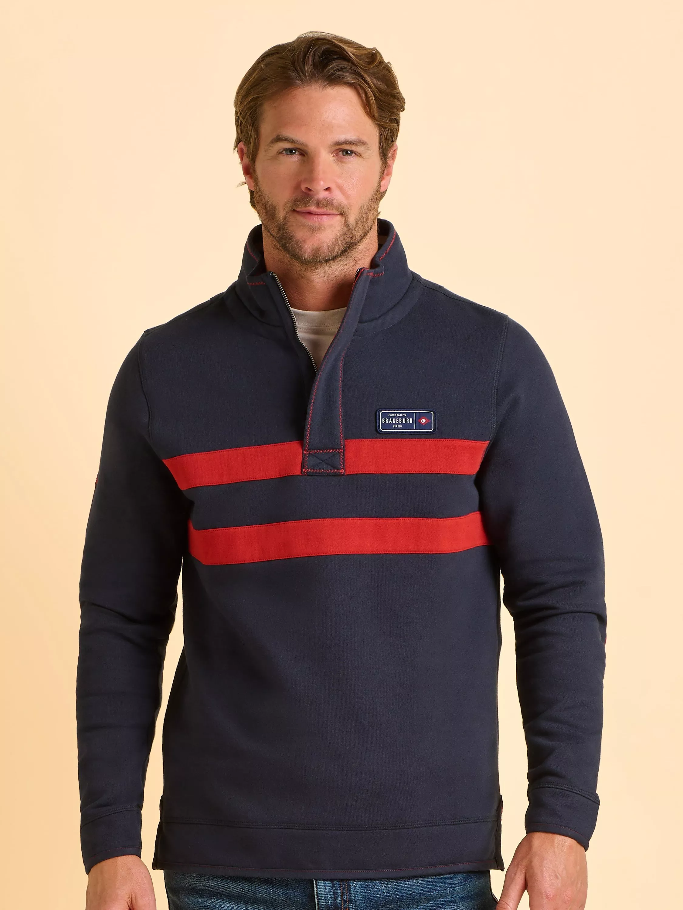 This quarter-zip neck striped sweatshirt keeps you comfortable and warm, whether you are out exploring or relaxing indoors. Its flexible cotton blend fits easily into your day, making it simple to style and ready for any adventure.