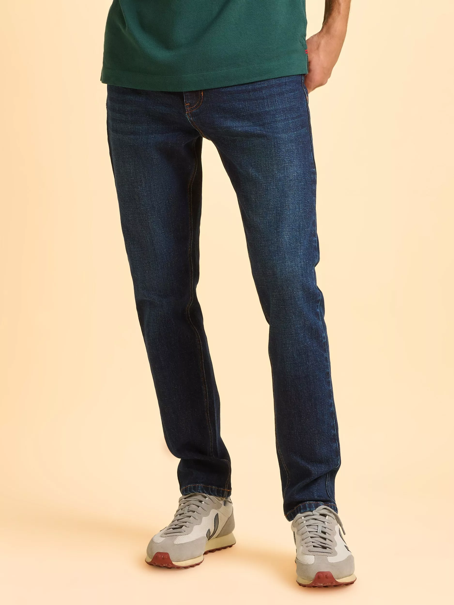 Meet your new go-to jeans. Cut in a straight leg from deep blue denim, they’re finished with contrast stitching and subtle branded touches for a clean, classic look. Style with absolutely anything - graphic tee, shacket, or patterned shirt.