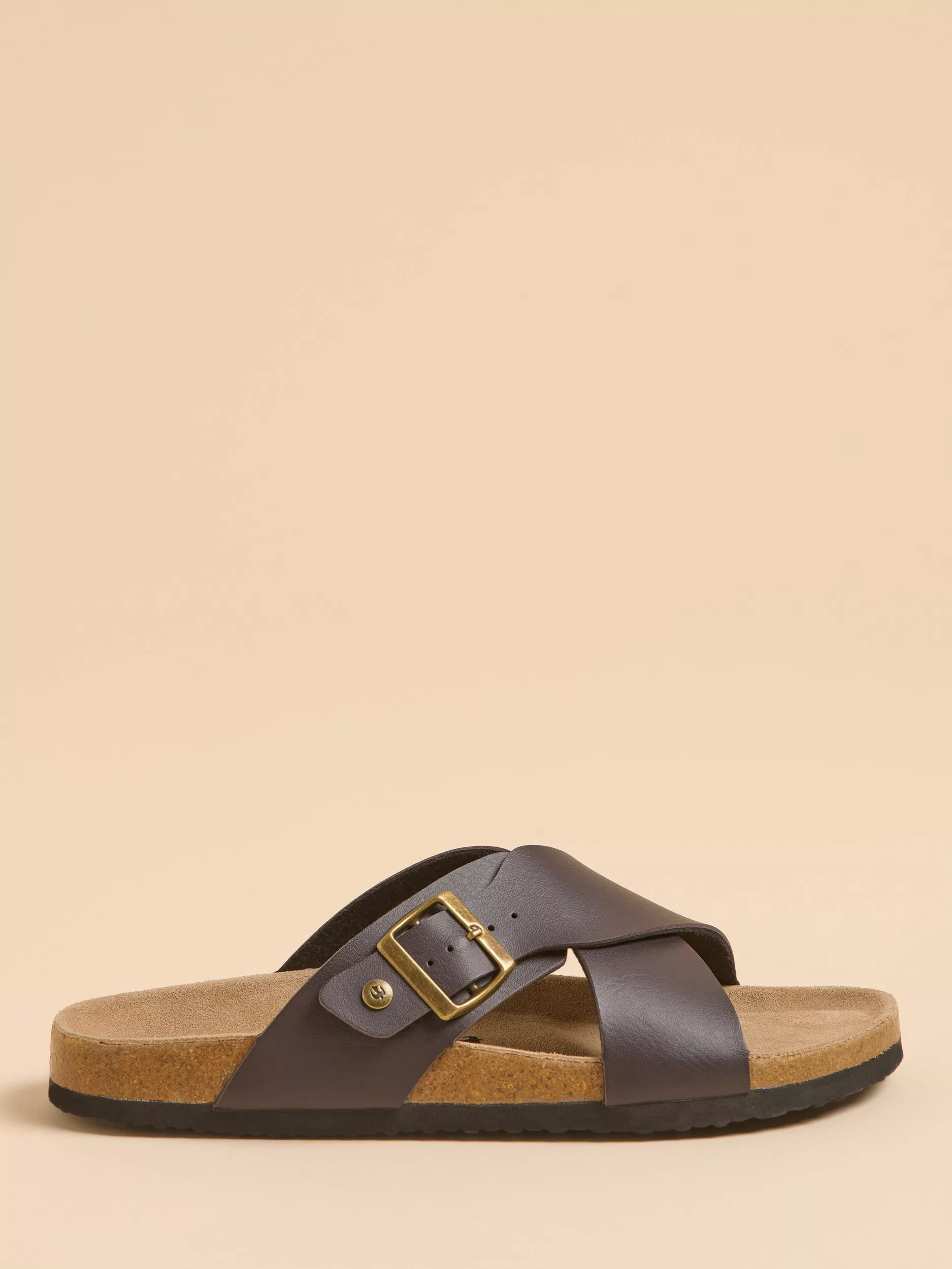 These crossover mules add something different for your footwear this summer. With a gold buckle and matching logo complimenting the faux leather earthy tone, these cork-footed sandals bring together easy-going style and all-day comfort. Pair them with cargo shorts and a graphic tee for a weekend on the move.