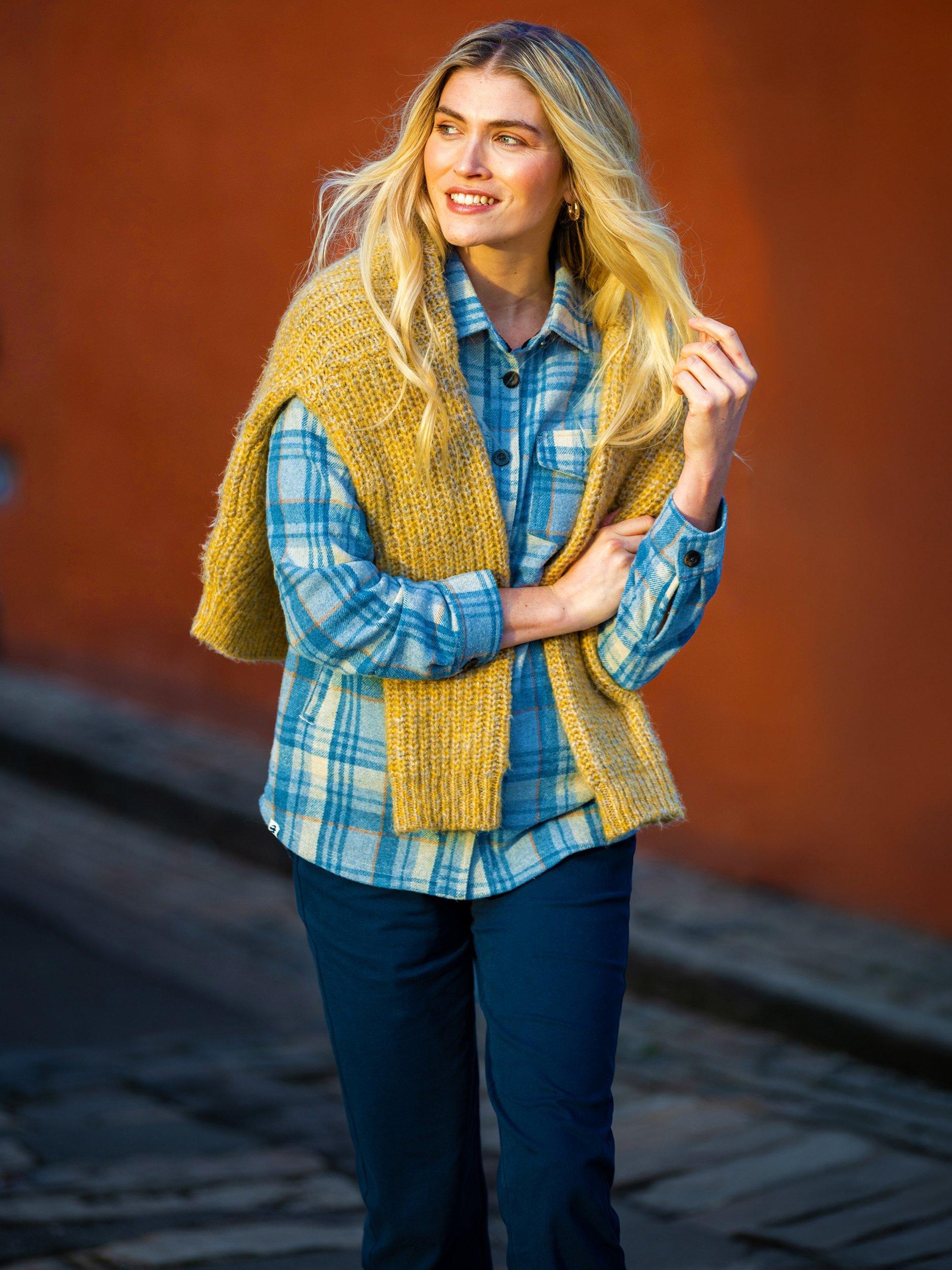Meet your new effortless coastal shacket, the transitional perfect piece to throw on and go. With a brushed finish and featuring two chest pockets and tortoise shell buttons, the Eira is a layering essential. Style open, over your favourite top and ankle boots.