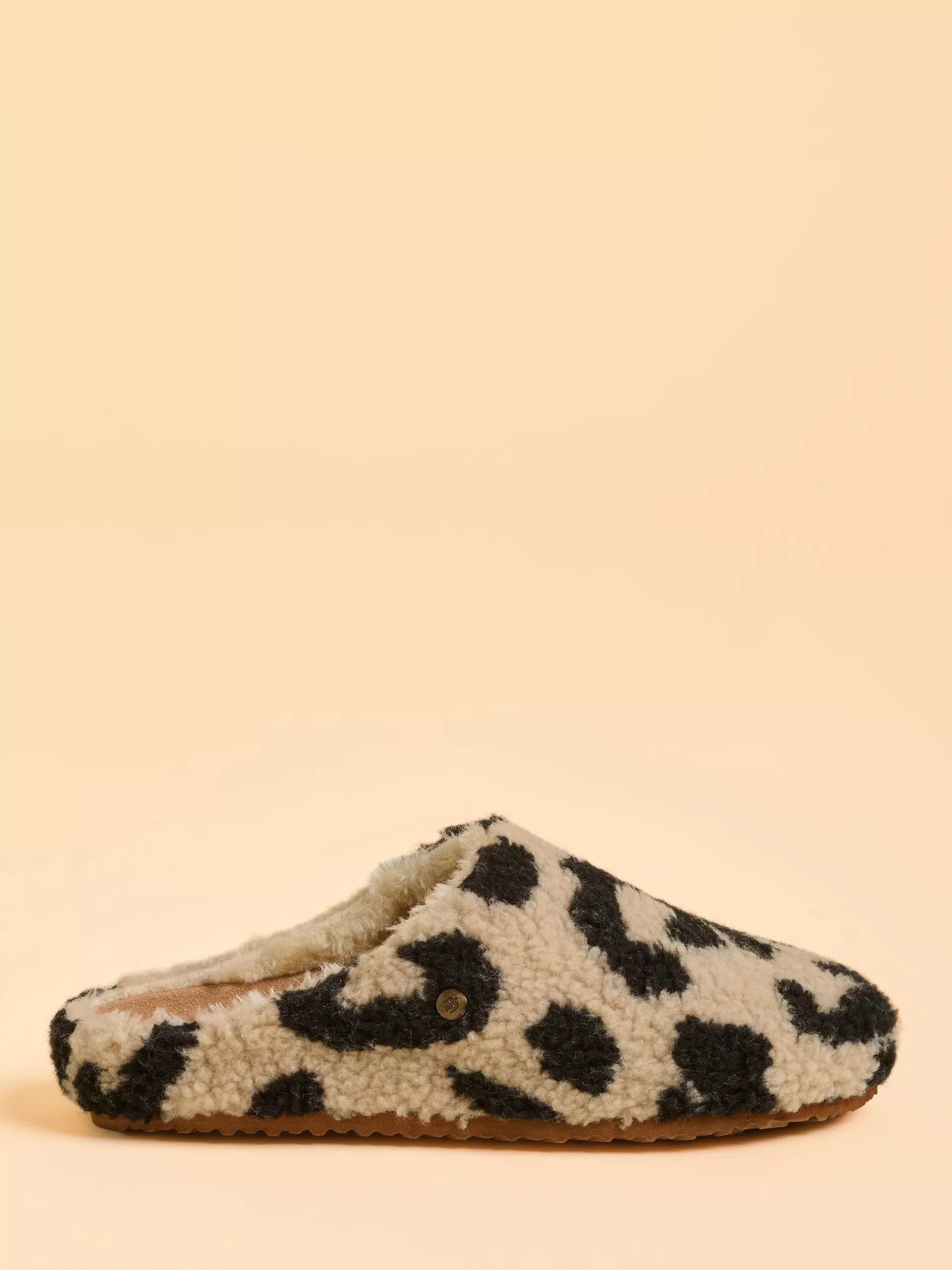 Slide your feet into luxury with the Fireside Slipper. Featuring a soft teddybear fleece outer with animal print and a plush 100% cow suede lining, these slip-ons promise easy wear and comfort. Finished with a durable cork footbed, they’re perfect for relaxing round the house.