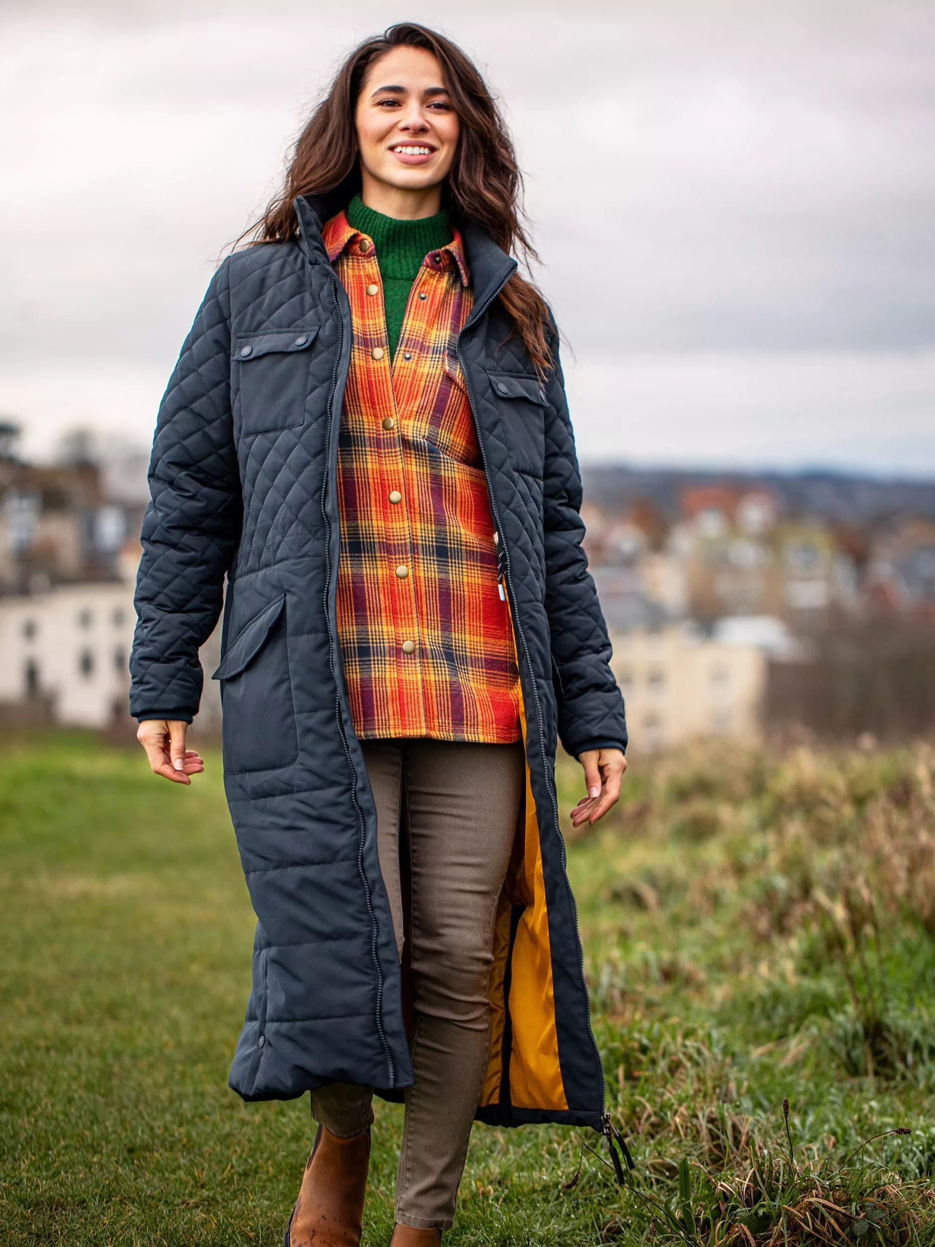 Nothing says cosy like a Long Line Coat. The Matravers winter jacket by Brakeburn is great for the outdoors, whether you're in the forest or at the coast. It's water resistant, with patch pockets at the chest and large pockets at the waist.