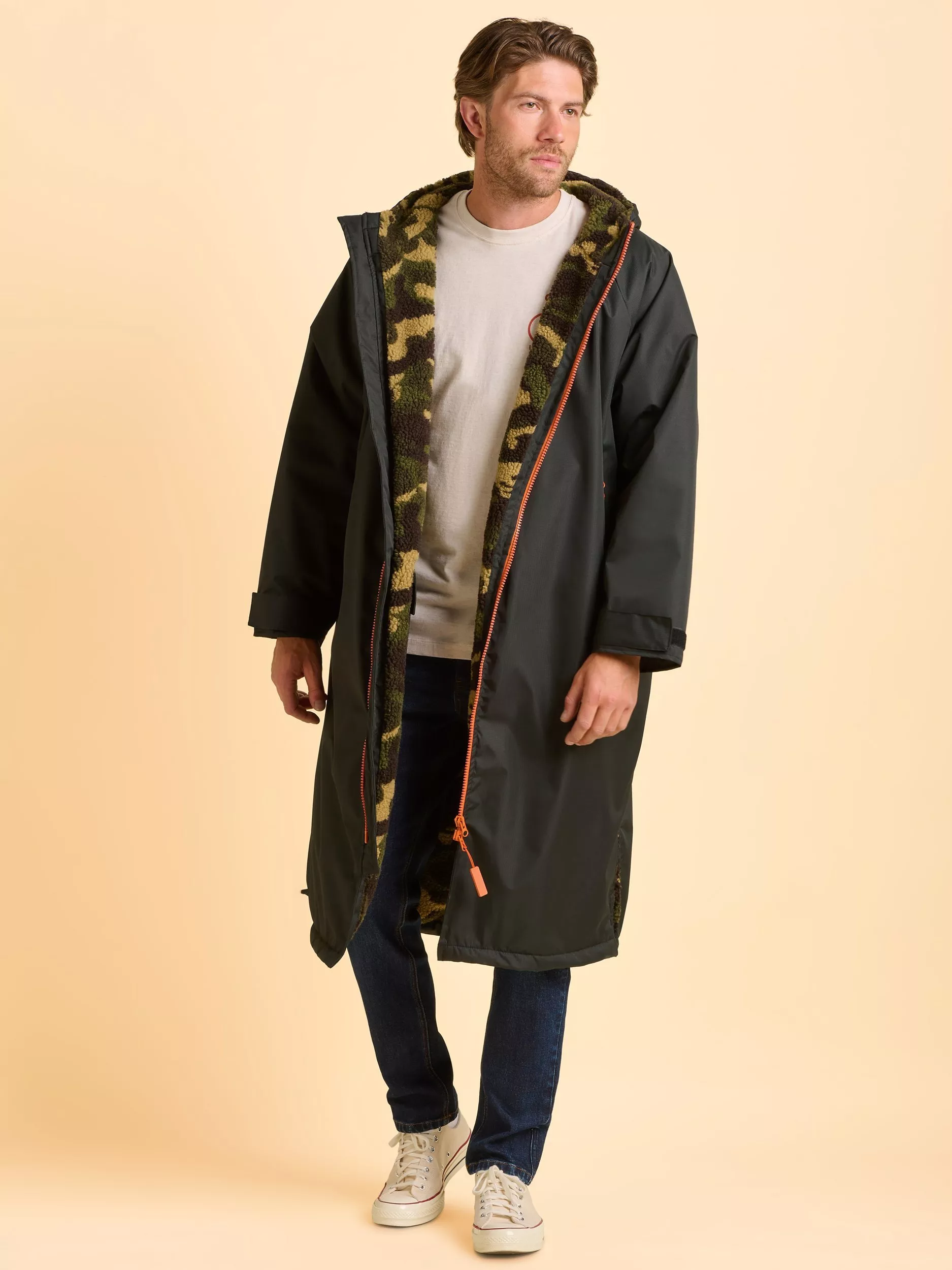 Step out in confidence with our Parley Chinook changing robe, a practical and comfortable essential designed for year-round beach days and beyond. This robe is more than just a cover-up; it’s engineered for warmth and convenience. It features a cosy sherpa lining and a showerproof outer to protect you from the elements. Thoughtful details include outer and inner pockets for your essentials, a dual zip for ease of movement, and adjustable sleeves for a customisable fit. The generous hood provides extra warmth when you need it most, while contrast logos and padded edging add a refined finish. It’s the ultimate companion for staying snug and ready for anything.